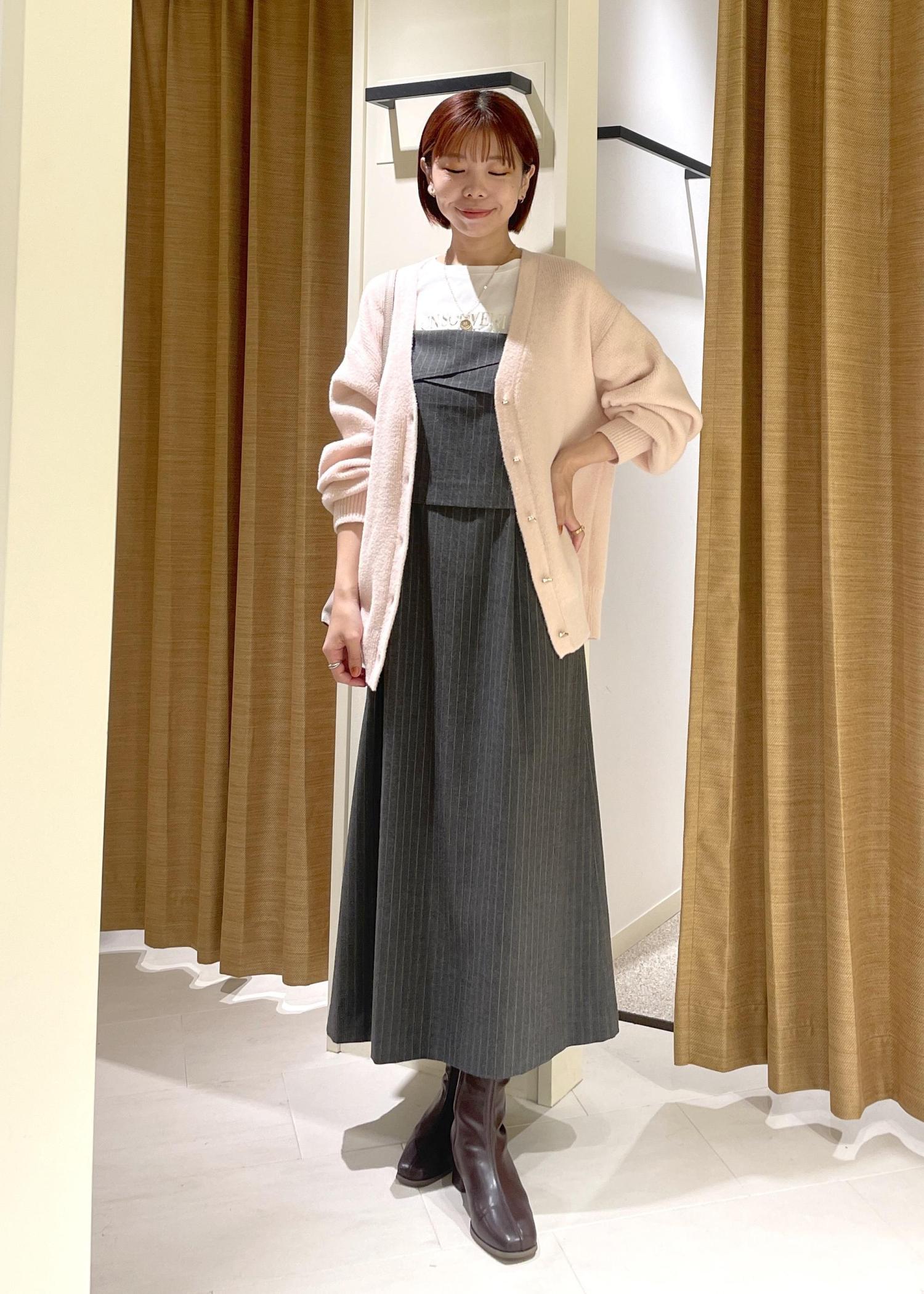 セットアップ見えするキャミワンピースを合わせて、女性らしい着こなしに◎