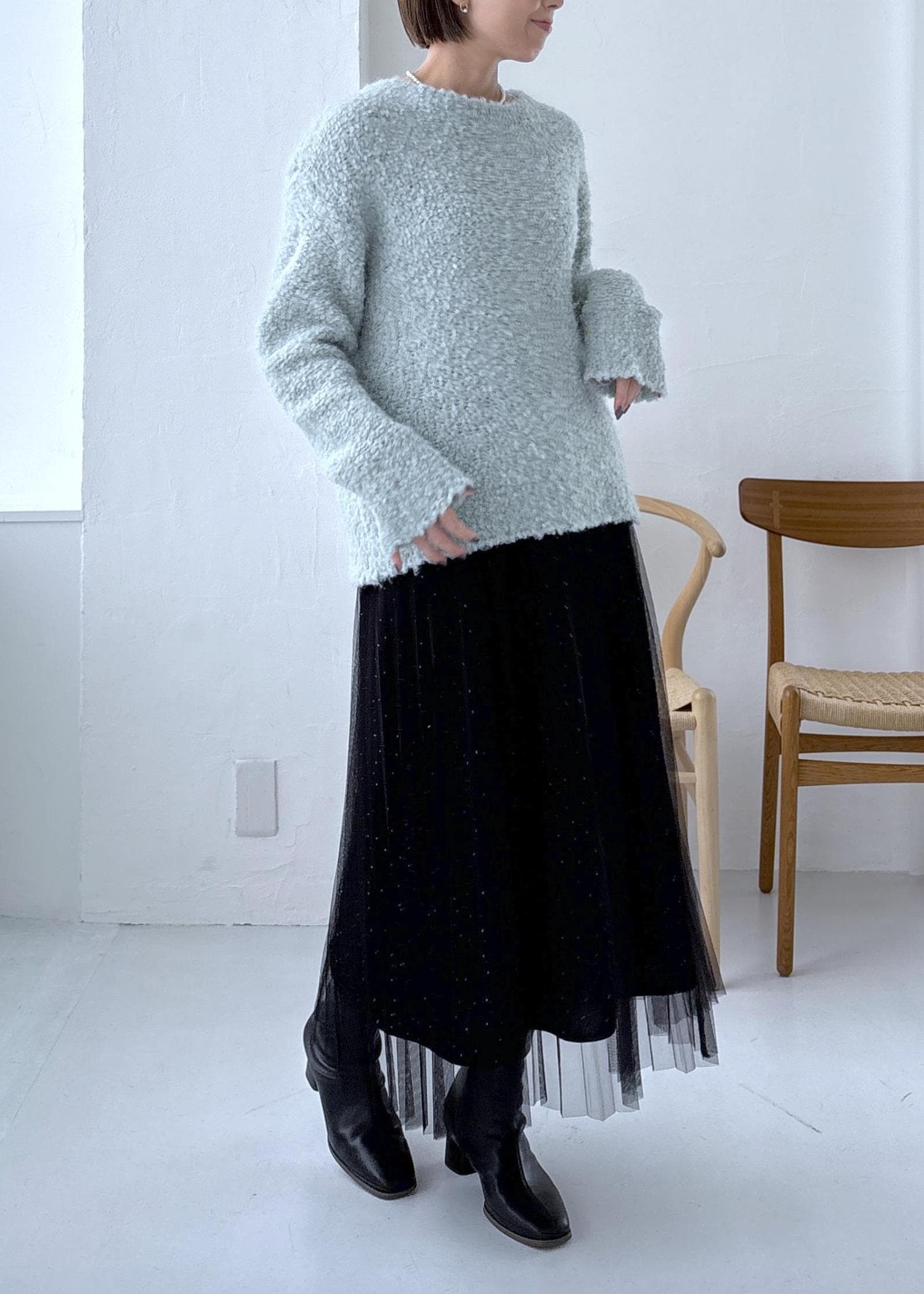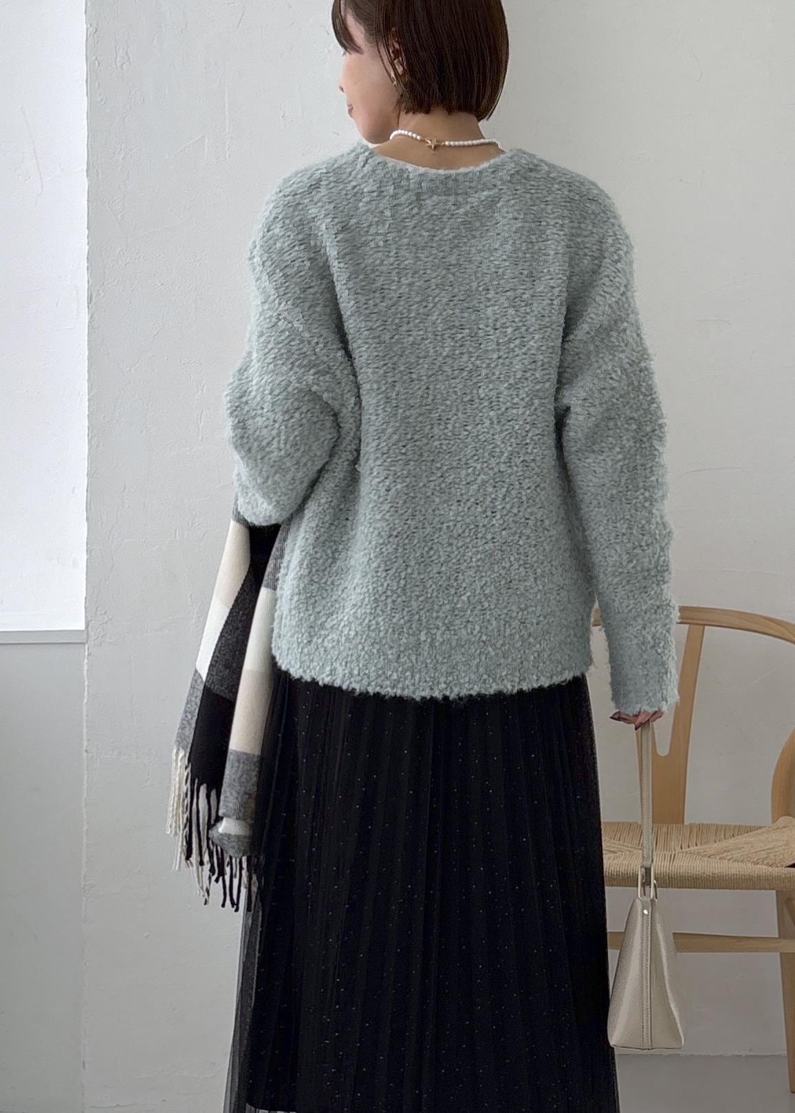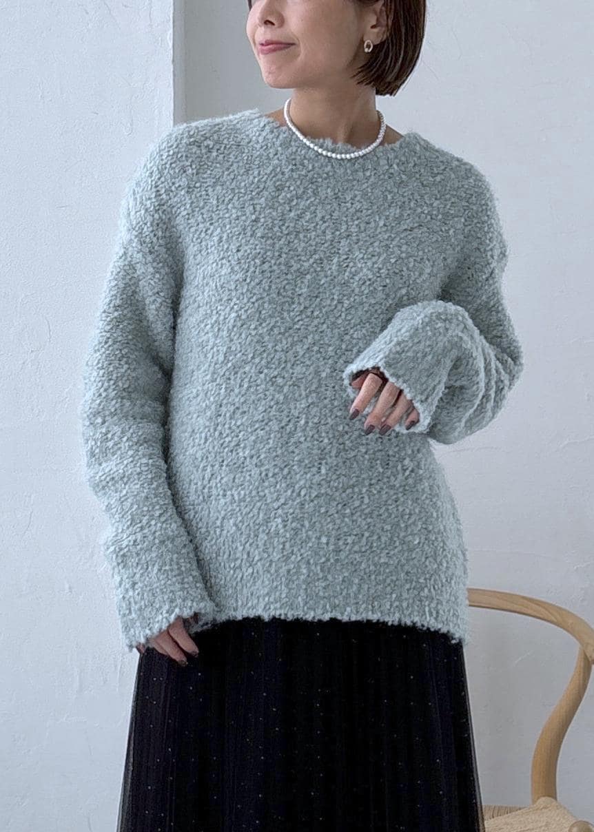 ROPÉ PICNICブークレカラーニットライトグリーン / F¥5,489レビューふわっと柔らかな肌触りでチクチク感なく着用できました。着丈は腰が隠れるほどの長さです。袖丈は手の甲にかかるほどの長さでした。