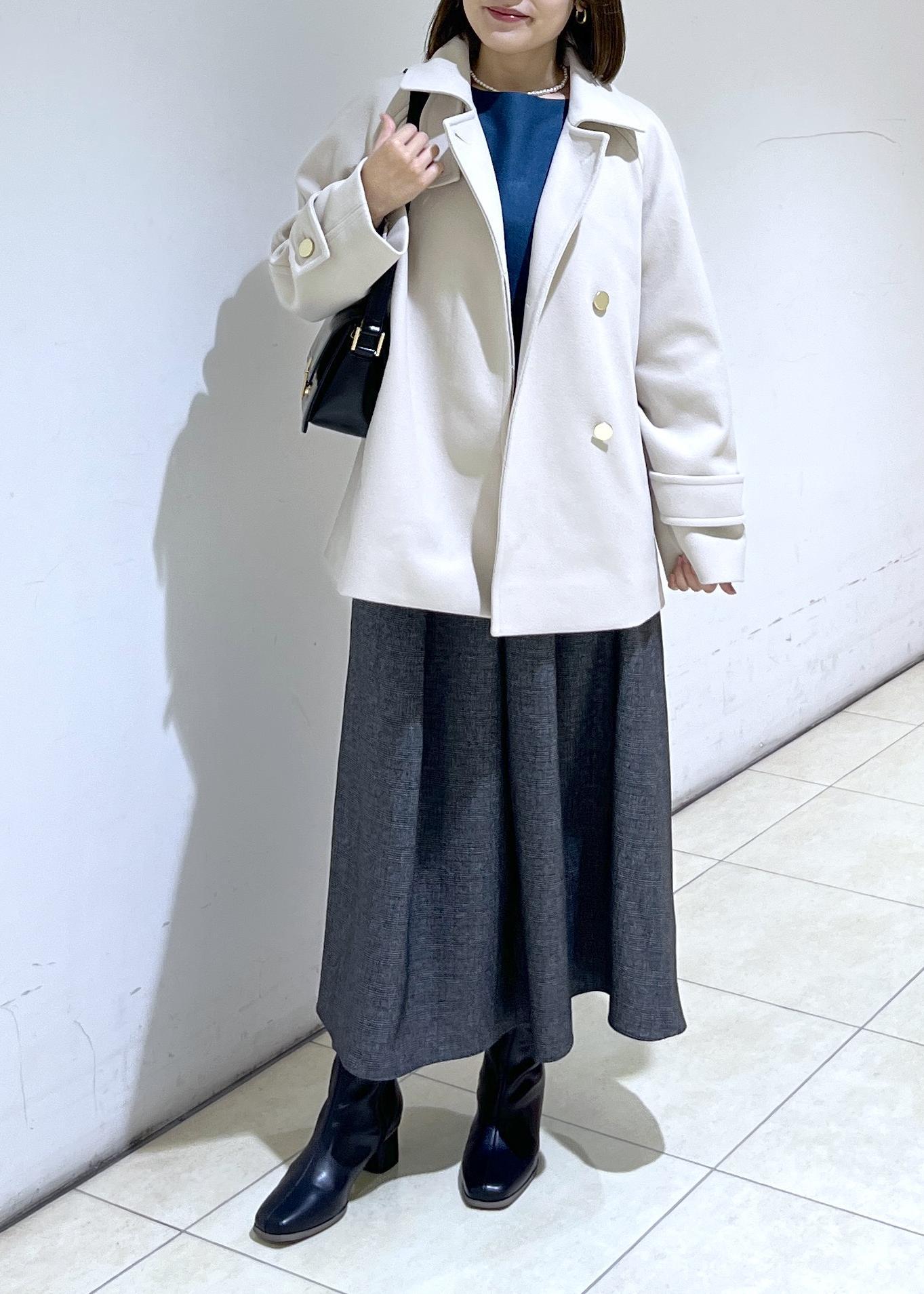 ROPÉ PICNICジャージーメルトンシリーズ 金ボタンミドル丈コート/リンクコーデベージュ / F¥7,692レビュー柔らかい生地感で羽織りやすいです。