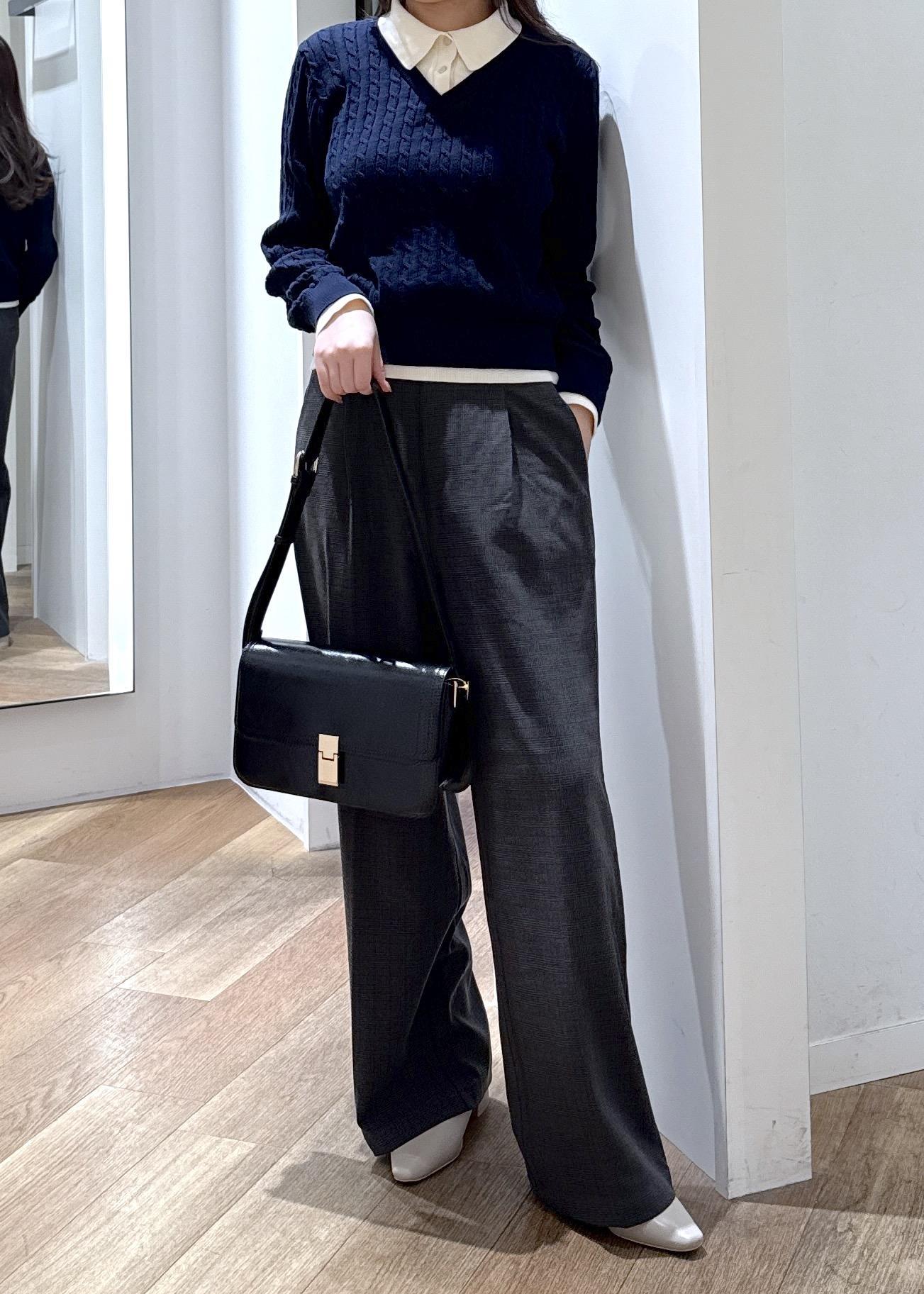 秋冬に最適な素材で、合わせるトップスによってオンオフ使えるのが嬉しいポイント◎