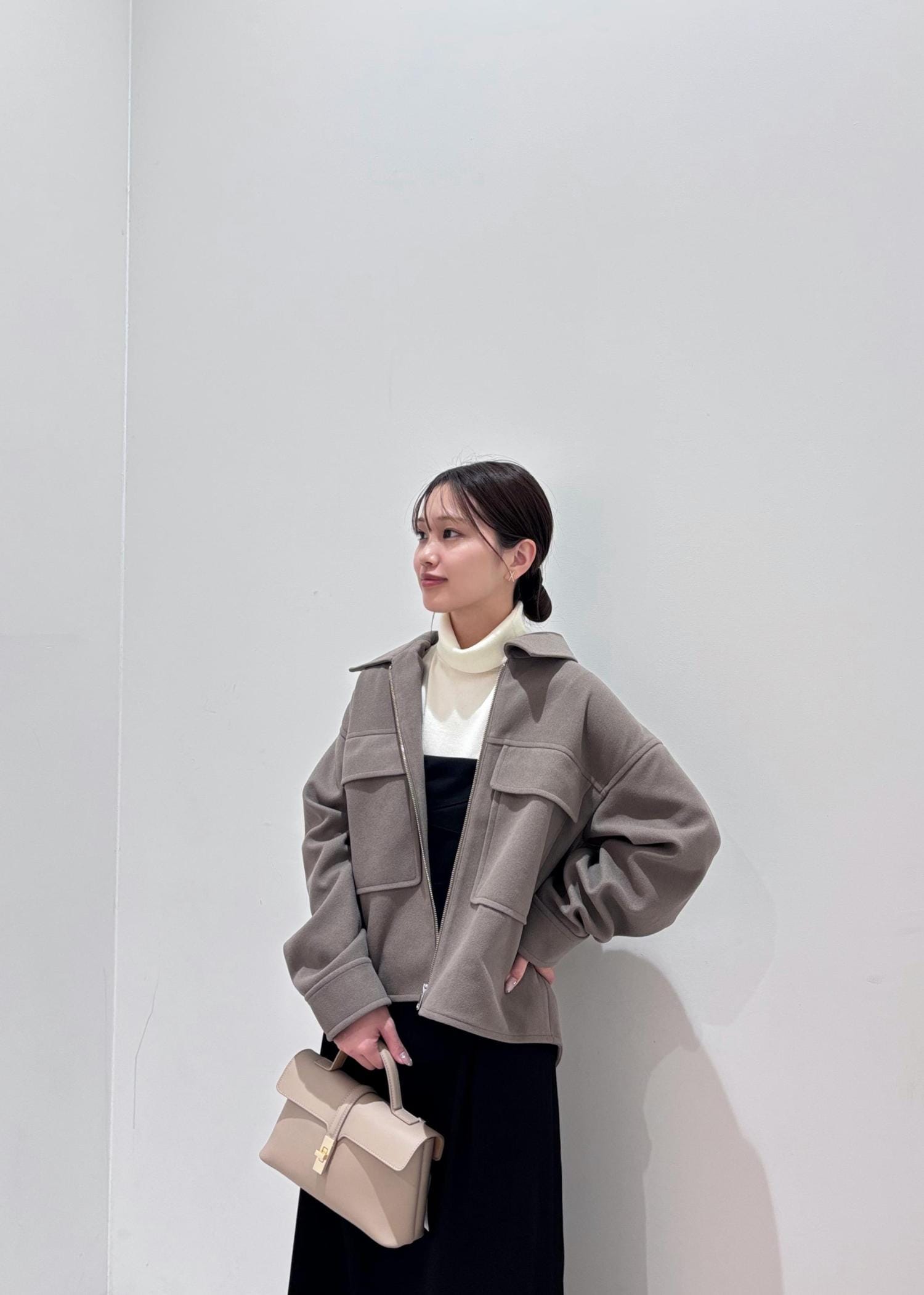 ROPÉ PICNICジャージーメルトンシリーズ ポケット付きジップブルゾン/リンクコーデブラウン系 / F¥9,999レビュー154cmで丈感は長すぎず、腰が隠れる程の長さでした。袖周りはゆとりのある幅感なので、肉厚なニットなども着込めます◎柔らかさと温かみのある生地感で、着るだけで柔らかな印象のアウターです♪ とっても軽いのも推しポイント◎
