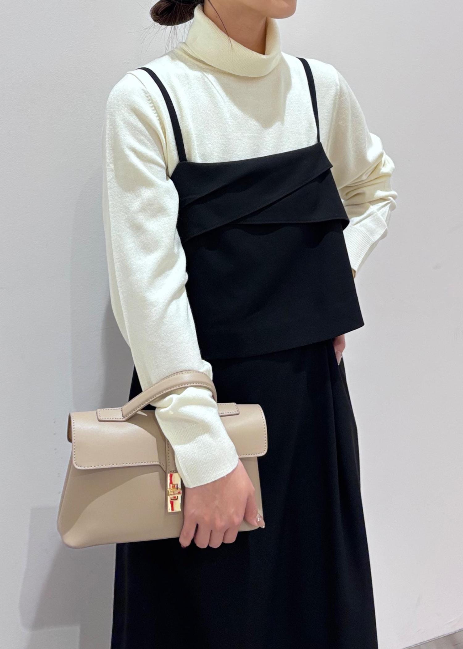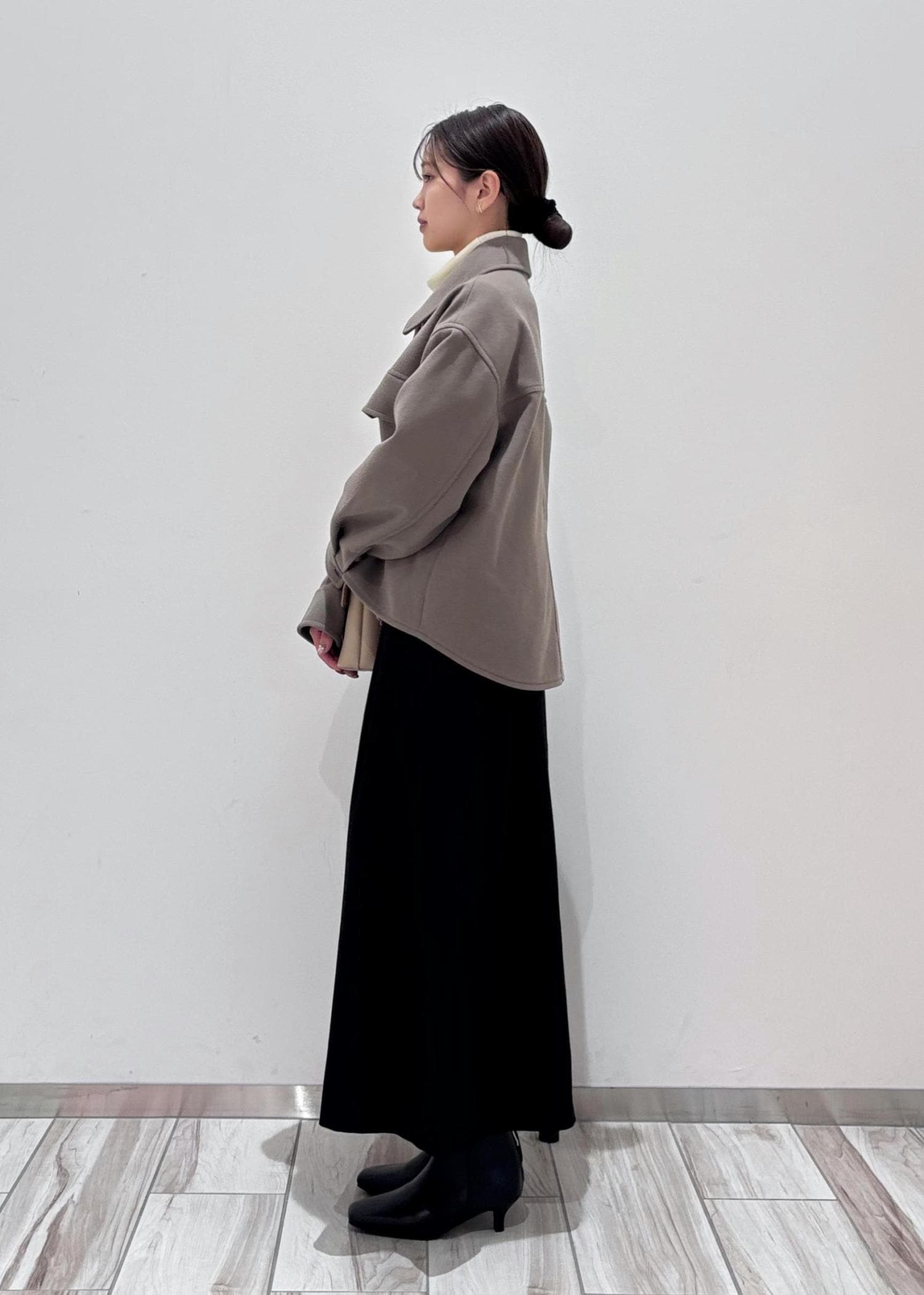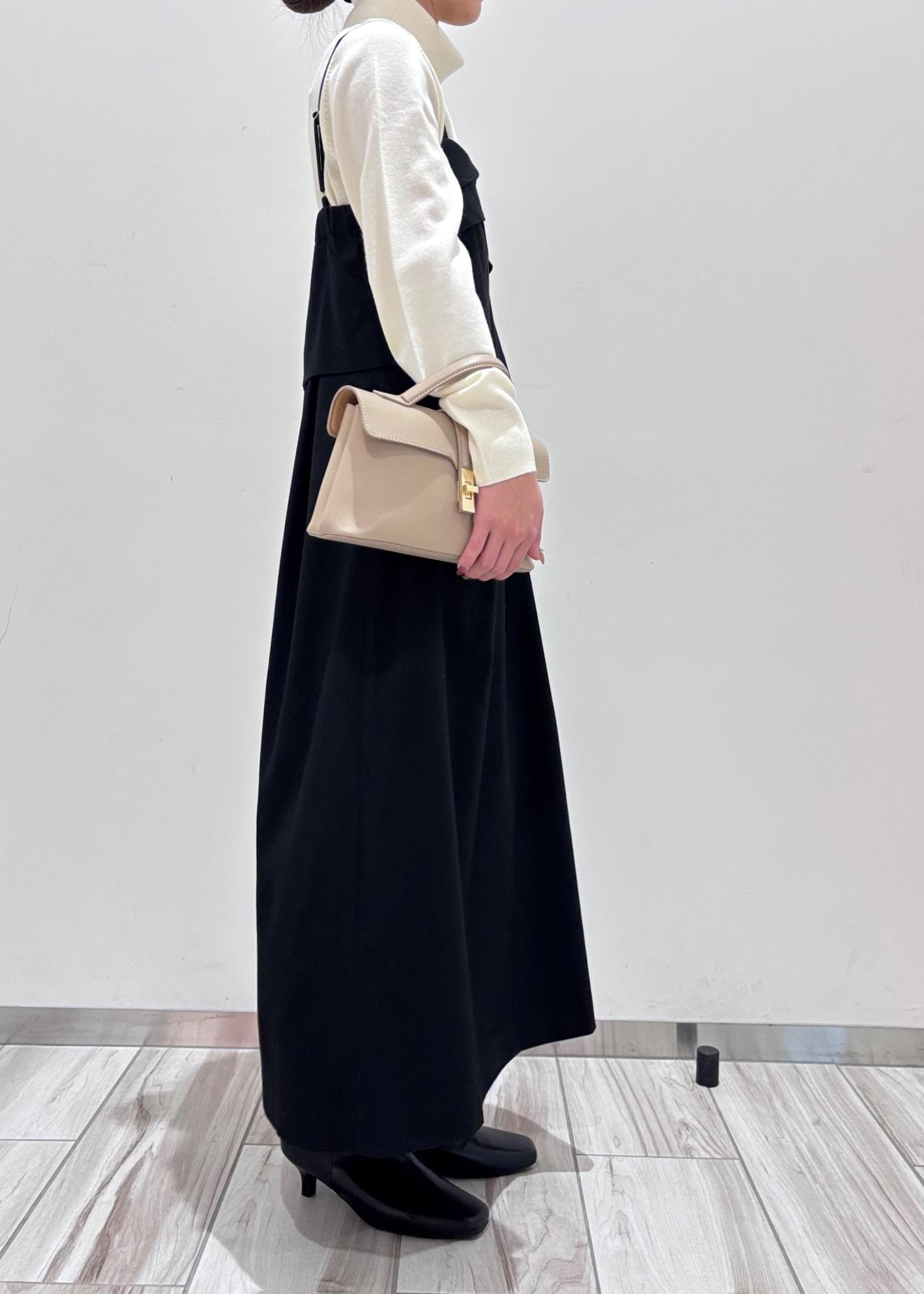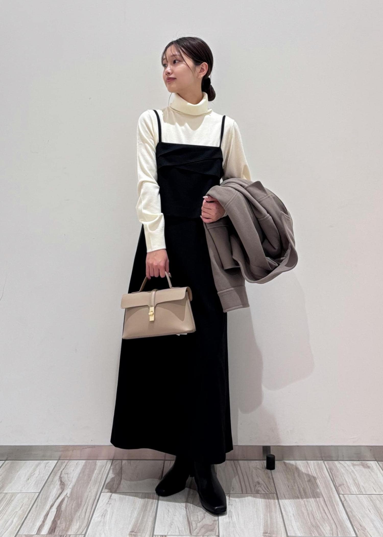セットアップ風なワンピースは、アウターを脱いだ時も着映えするアイテムなので、室内で過ごす時も抜かりなくお洒落に♪