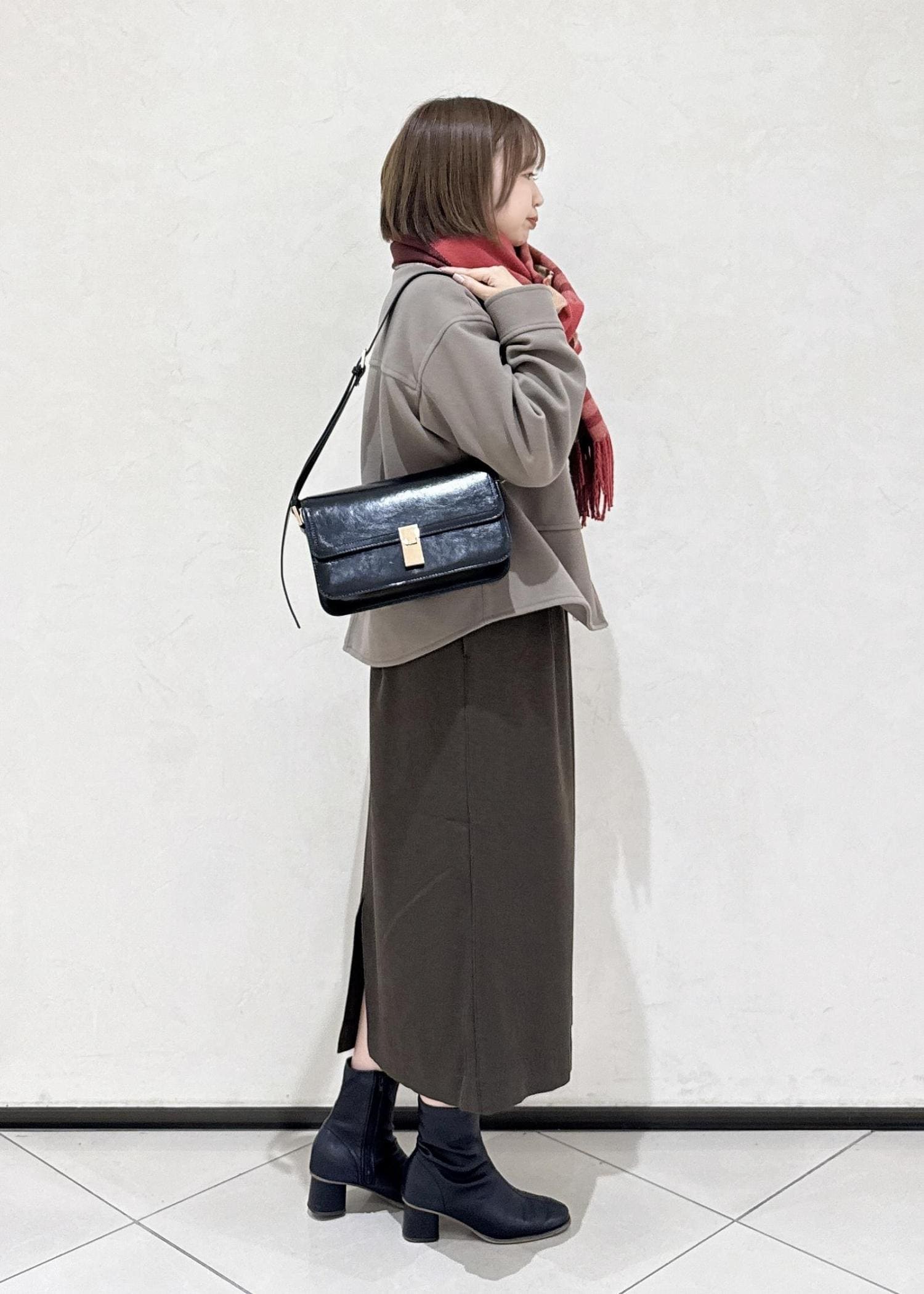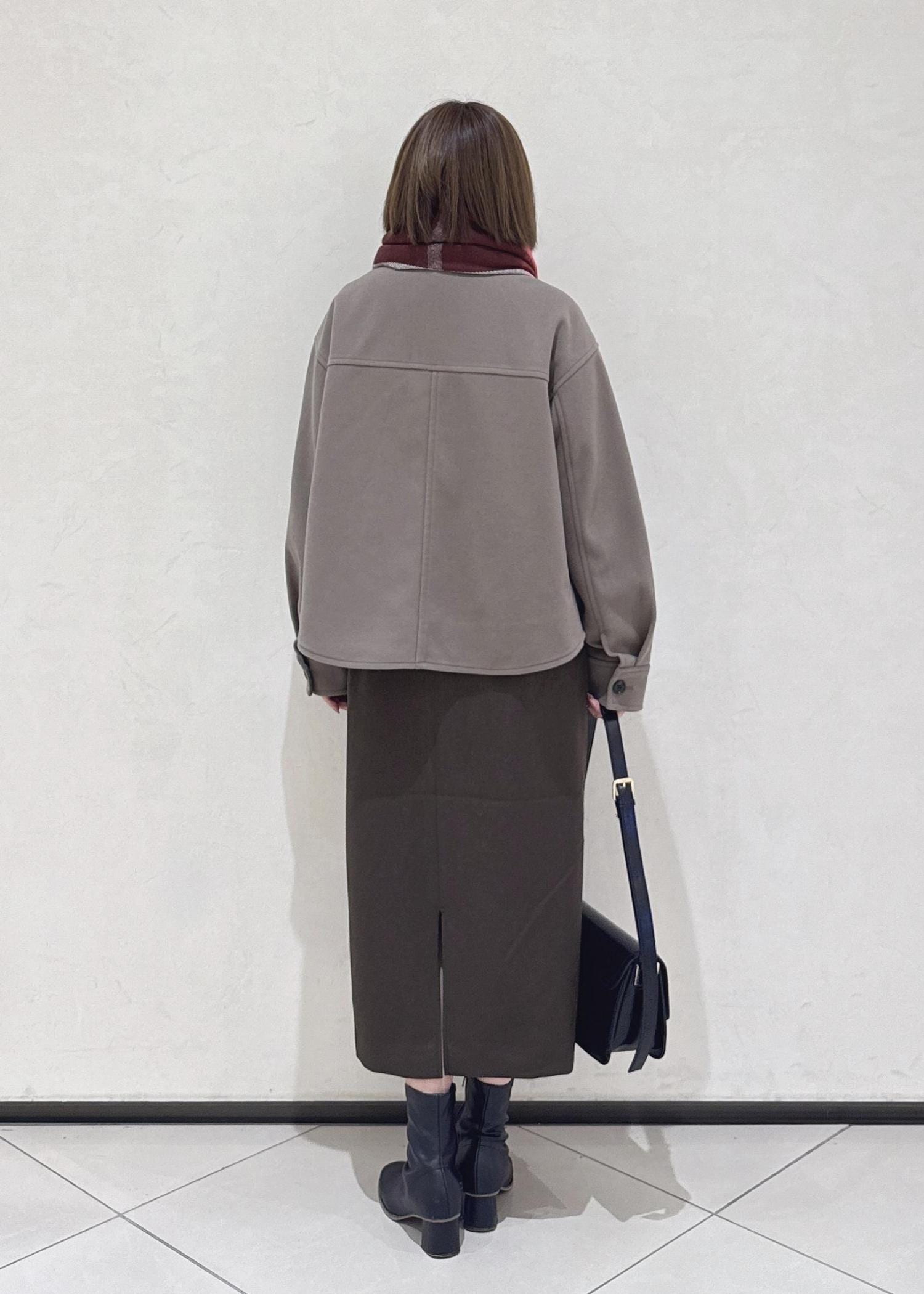 ジャンスカにショート丈アウターを合わせてバランスをとりました。