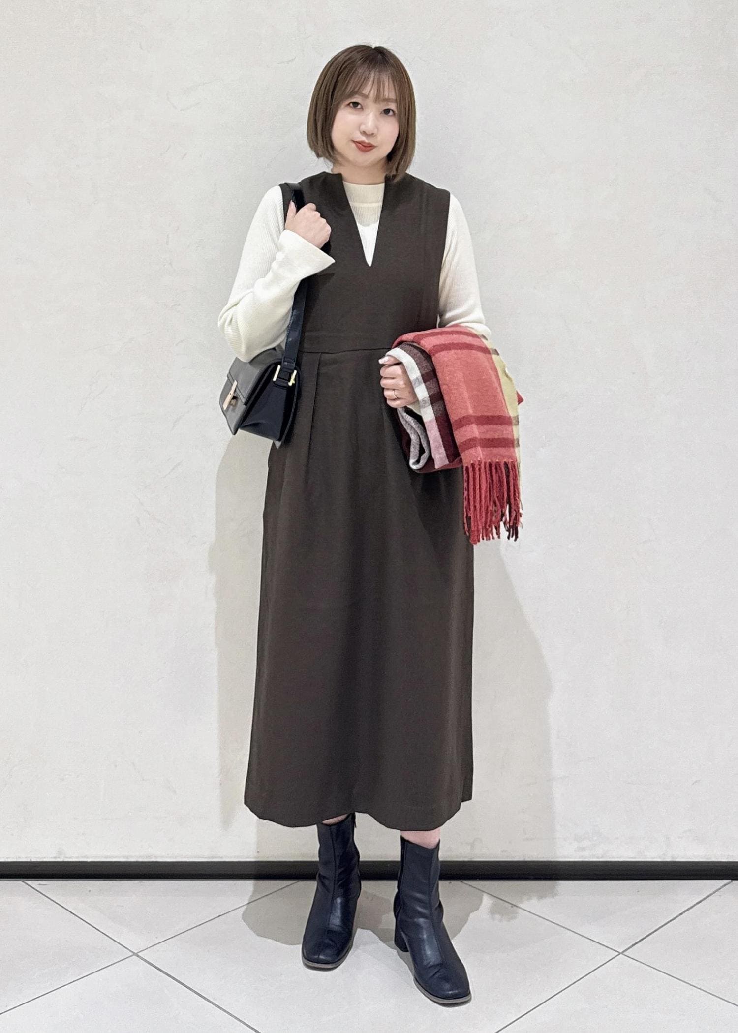 ROPÉ PICNICキーネックジャンパースカートダークブラウン / S¥6,996レビューSサイズ着用でも体のラインを拾わないサイズ感でした。ただスッキリとしたシルエットで綺麗に見えるワンピースです。