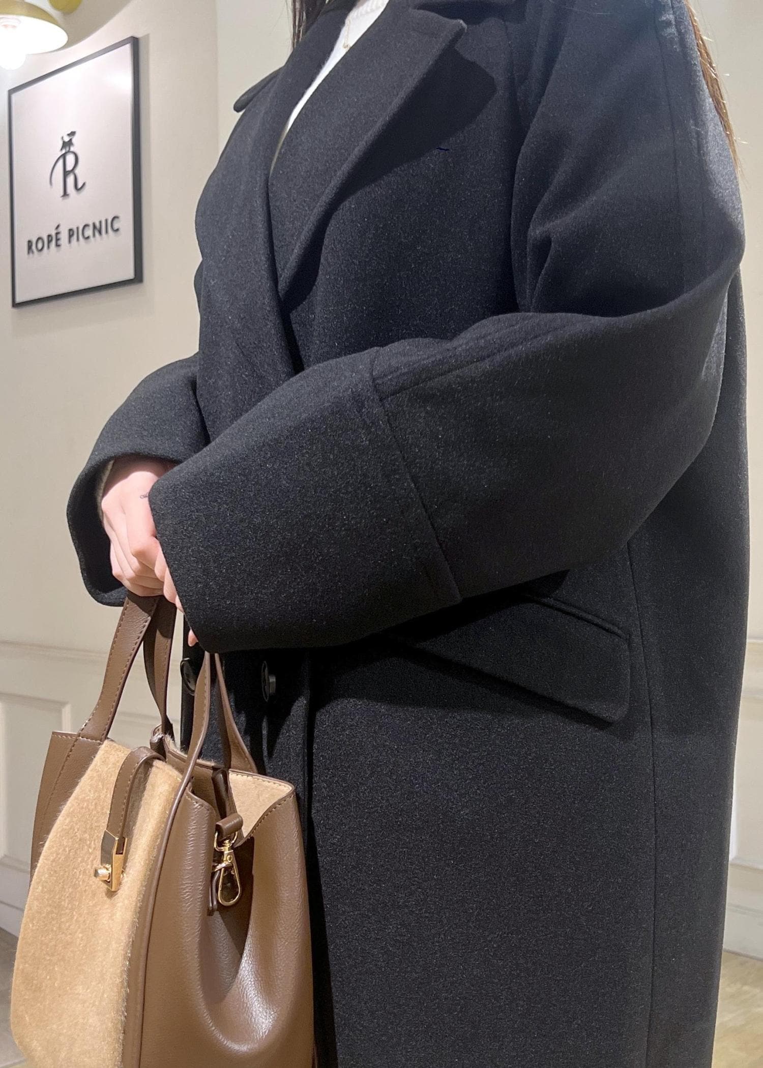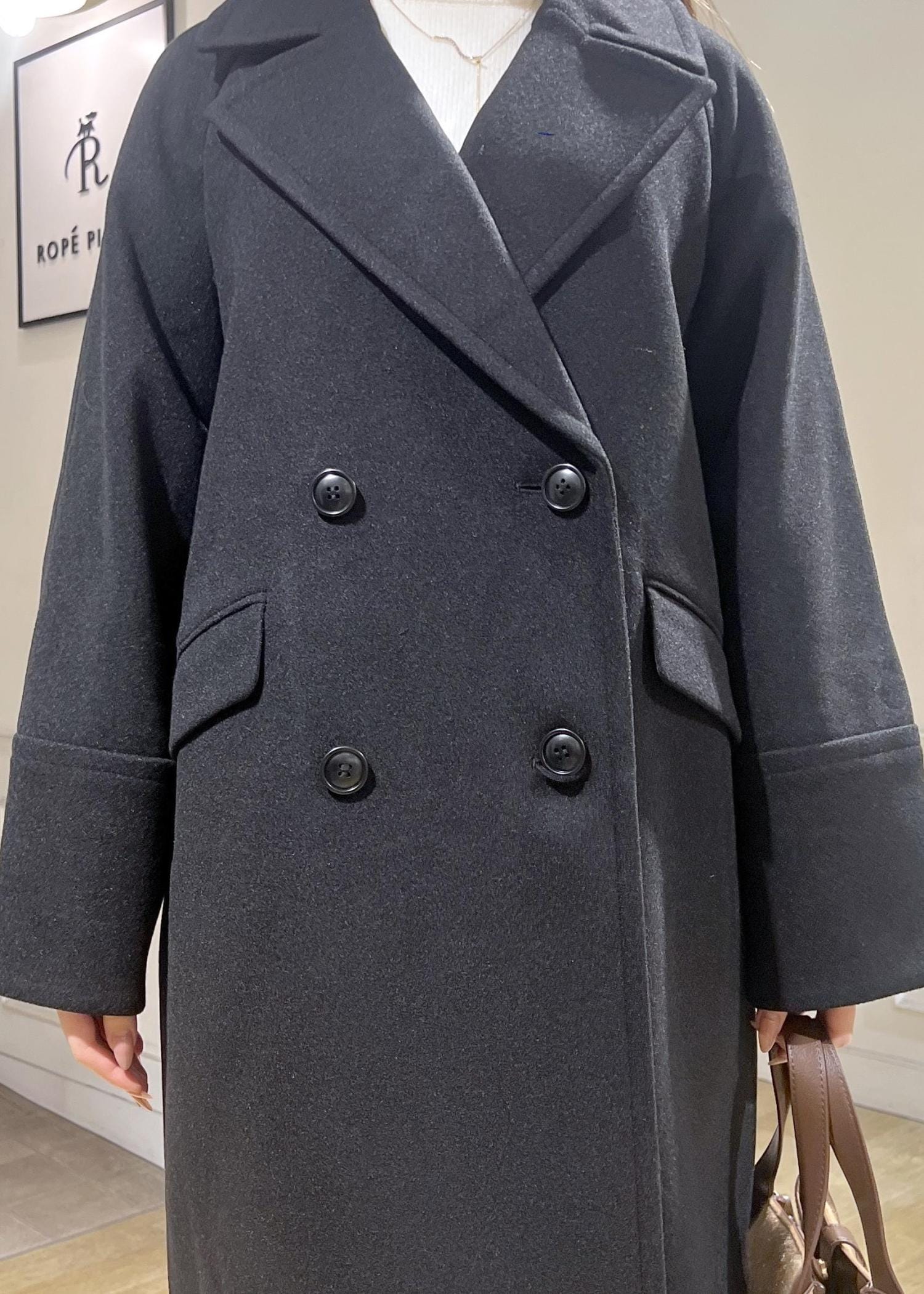 予約ROPÉ PICNICジャージメルトン無地&チェックオーバーPコート/一部WEB限定カラー・リンクコーデブラック / S¥10,989レビューお袖は少し長めで、手のひらが隠れるくらいまであります。着丈は膝くらいまでの長さでした。