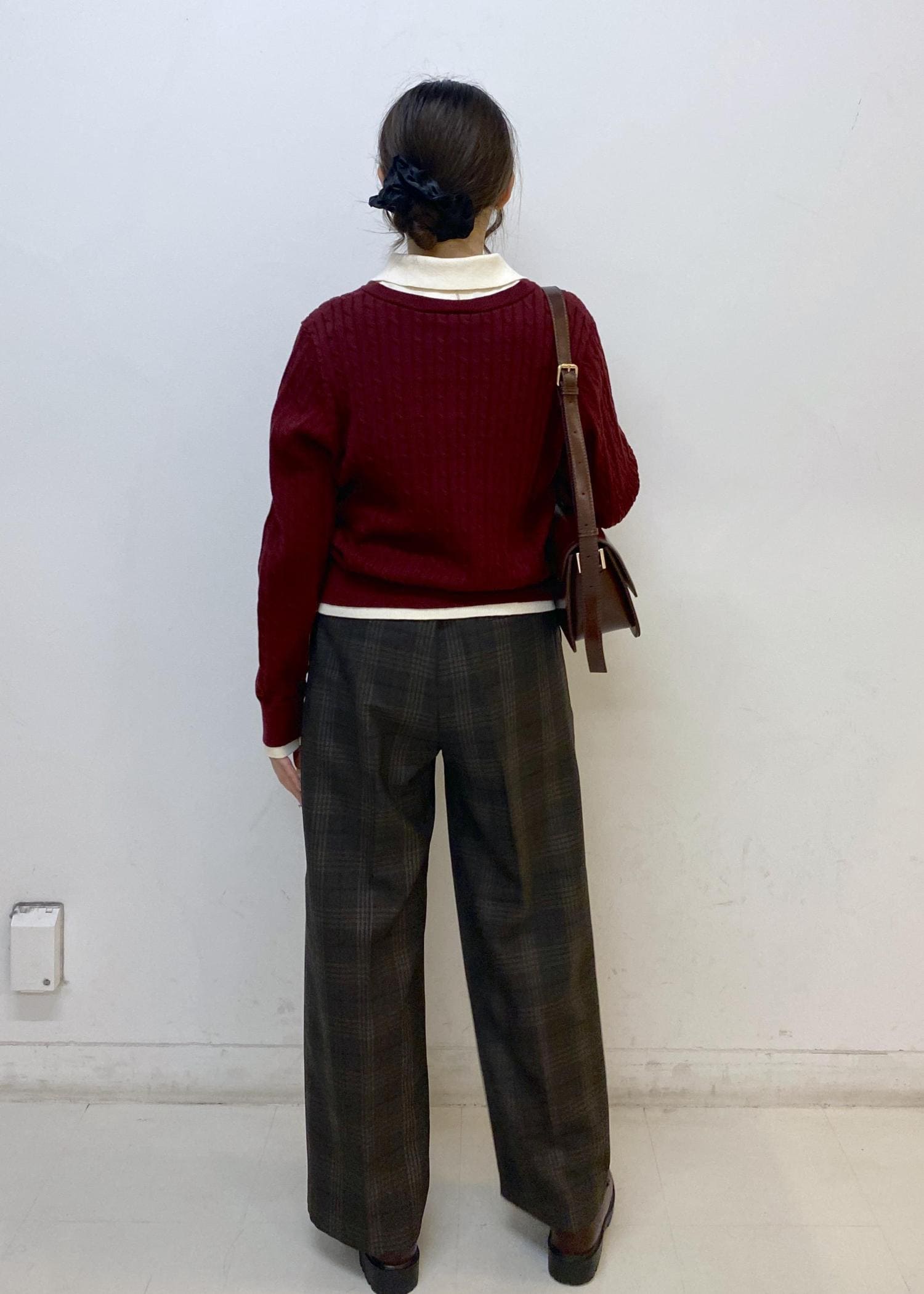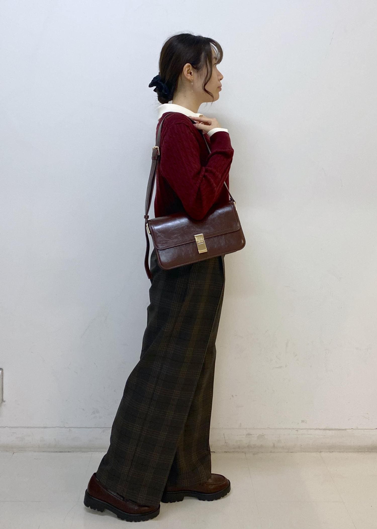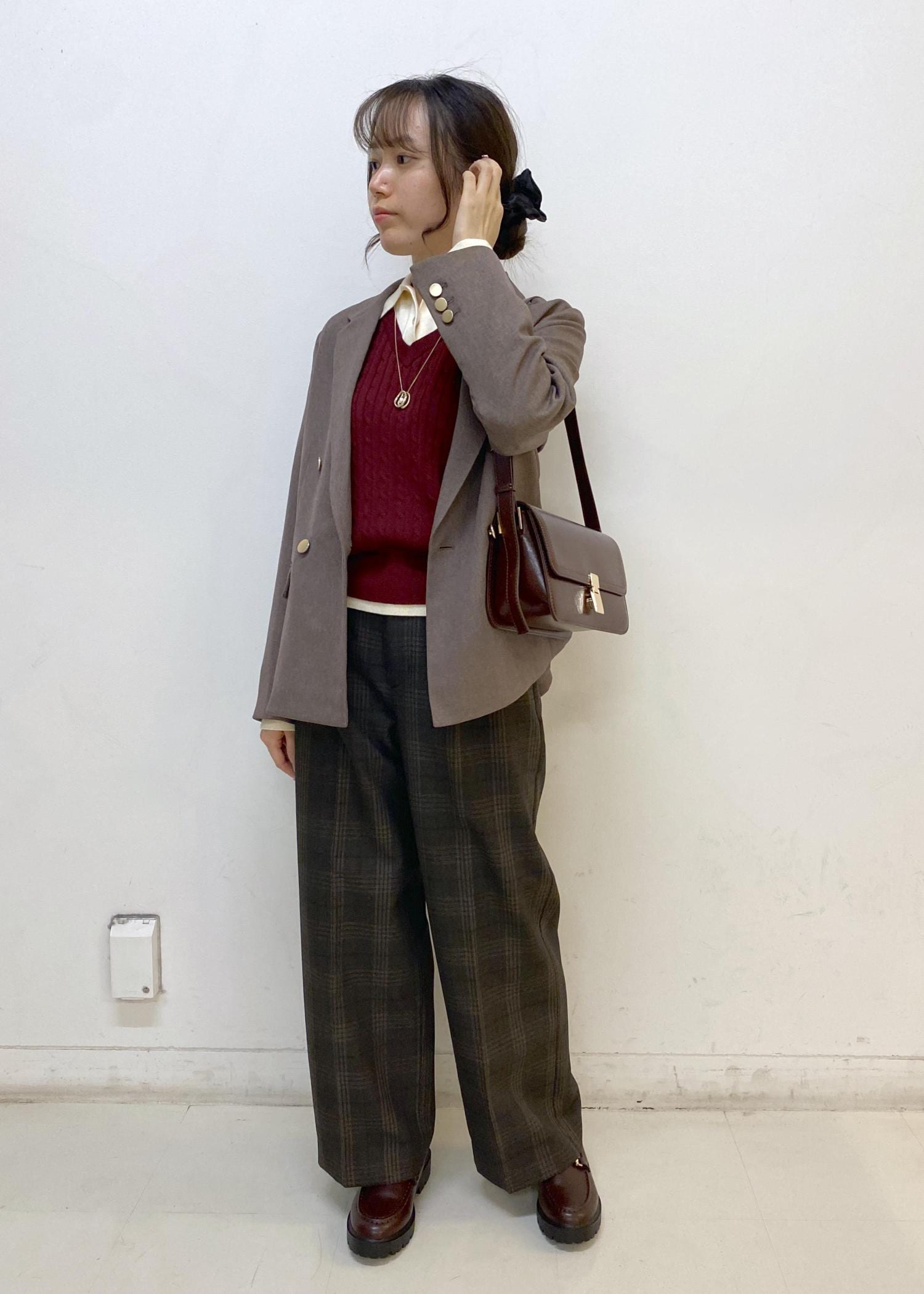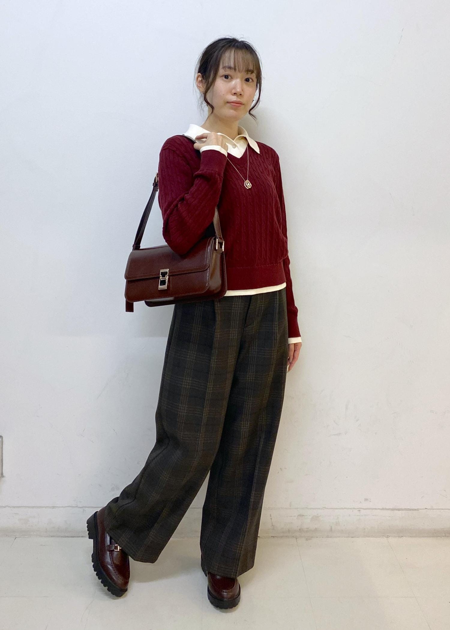 秋冬らしいブラウン・レッドカラーでまとめた、大人カジュアルなコーディネートです。