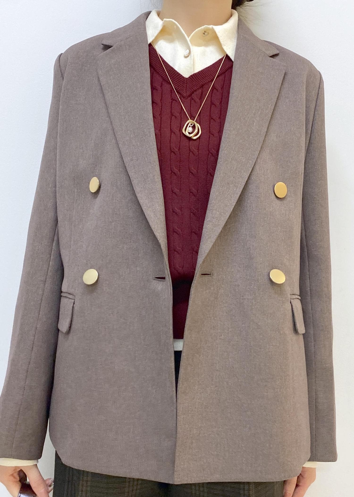 ネックレスはジャケットのボタンと揃えてゴールドカラーをチョイスしました。