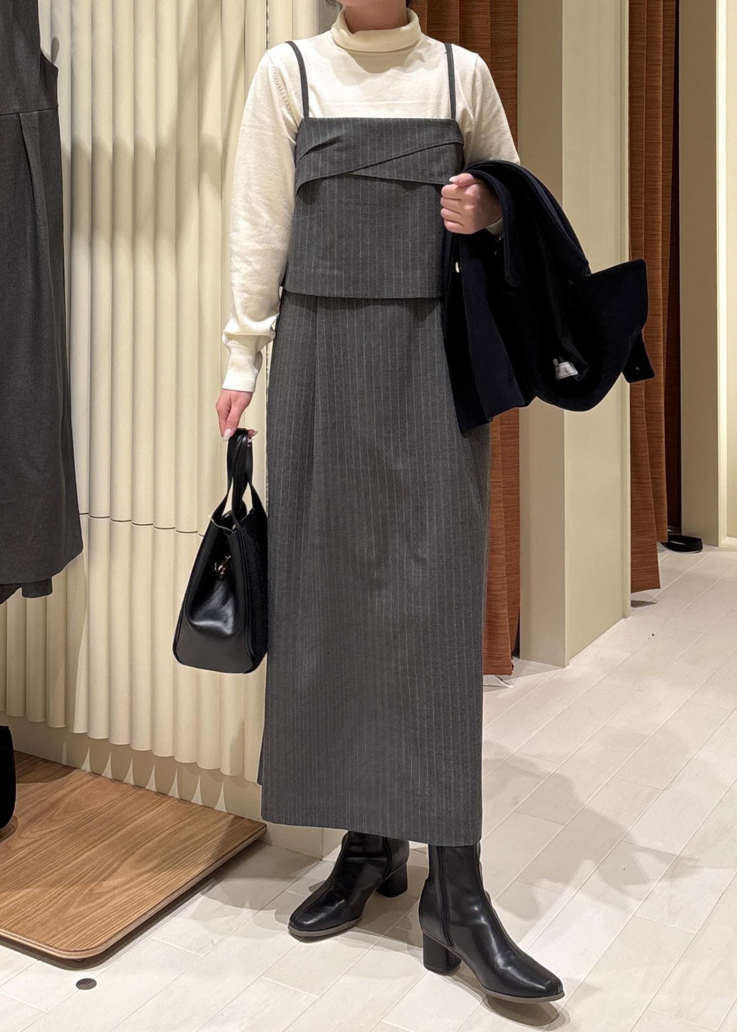 ROPÉ PICNICセットアップ見えワンピースチャコール / M¥7,197レビュー一枚で様見えするセットアップ風のキャミワンピース。161cm/Mサイズ着用で脛にかかるくらいの着丈で、ショートブーツと合わせてもバランスよく着られました。