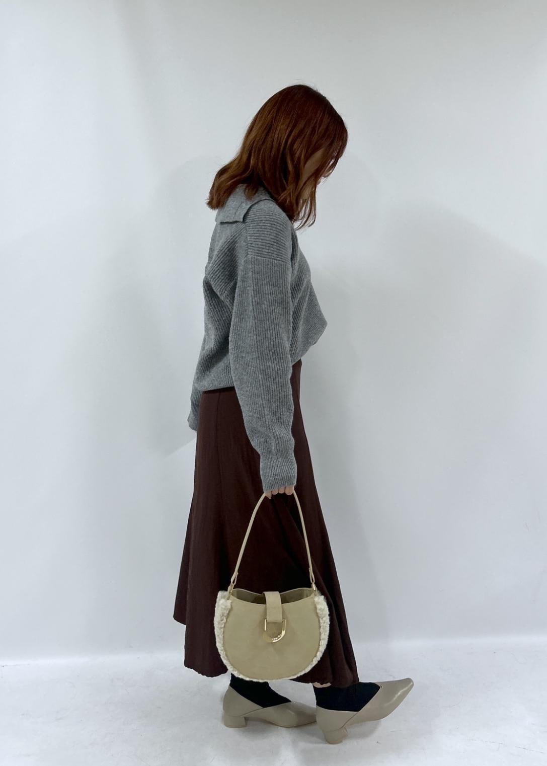 トップスはスキッパーデザインのニットでカジュアルですが、スカートやシューズに綺麗めなアイテムを取り入れる➕バックとシューズの色を合わせてまとまりのある綺麗めコーディネートにしてみました!