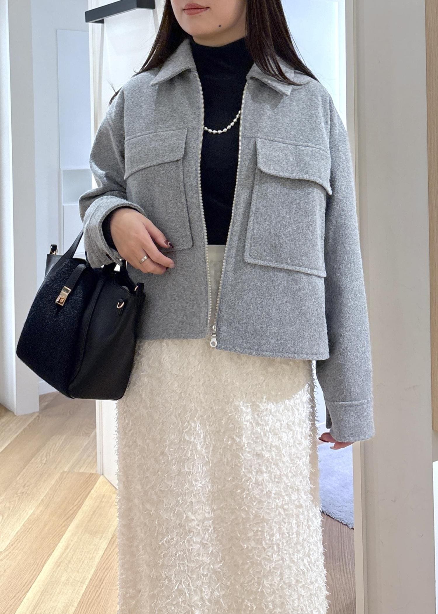 襟付きのデザインとスッキリ見える丈感で、きちんと感のあるアイテムとも合わせやすいです!