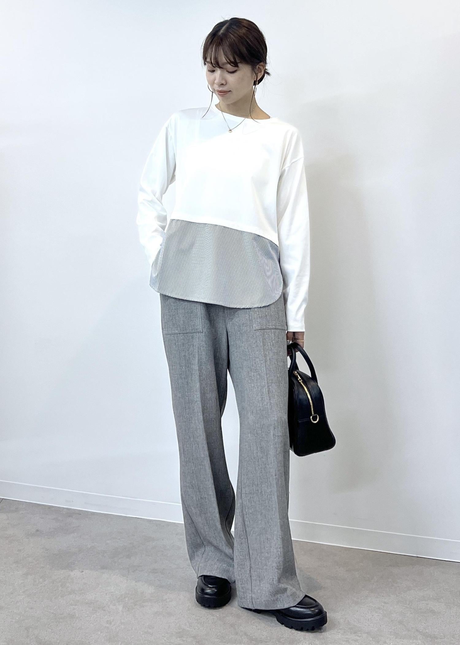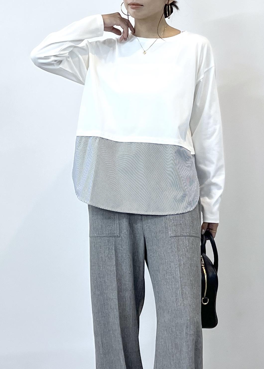 ROPÉ PICNIC布帛ドッキングロングスリーブTシャツホワイト系 / F¥3,498レビューふわふわした肌触りでもちっとした質感で、チクチク感なく着やすい生地感。