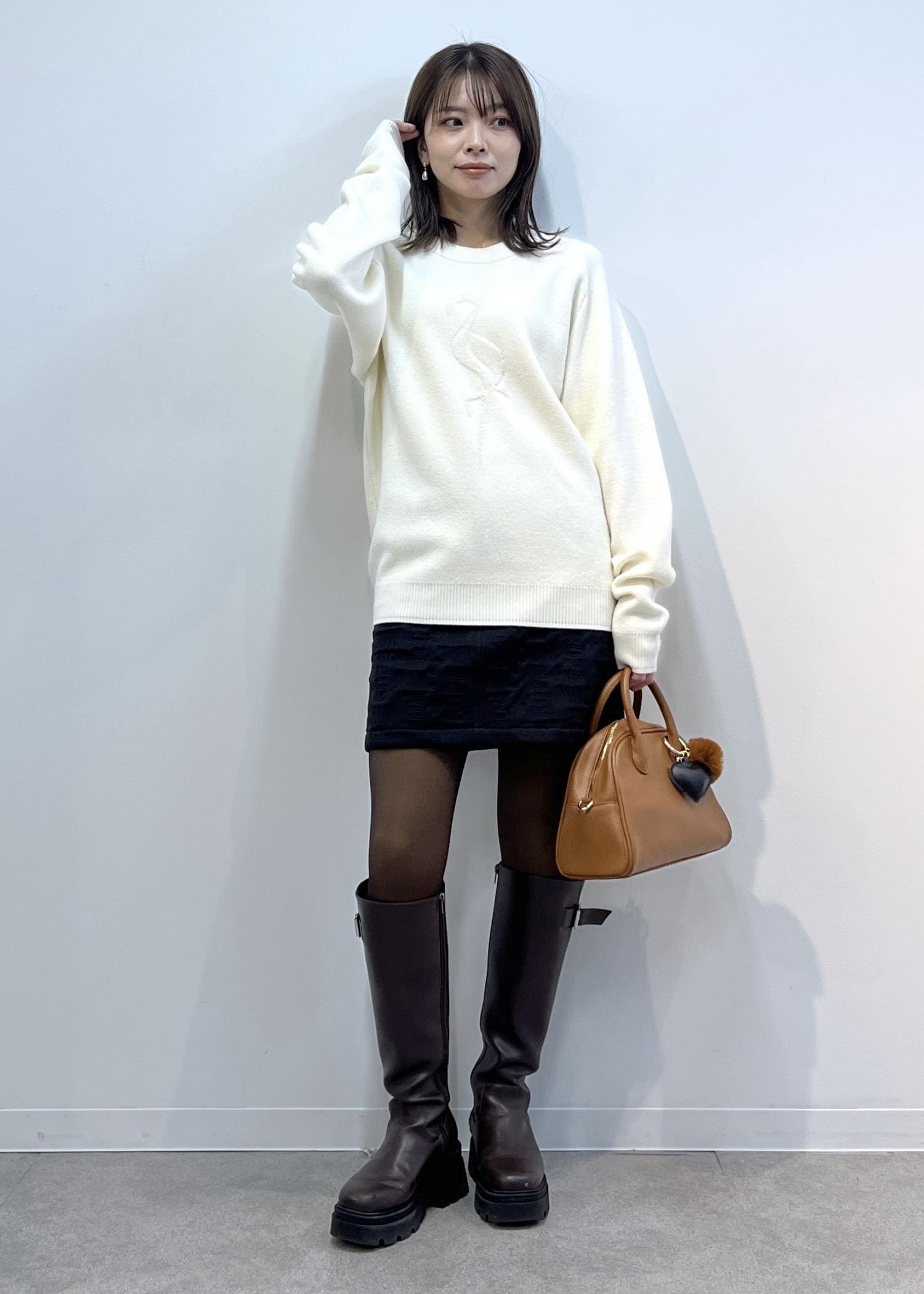 リボンボウタイブラウスをインして、少しきちんと感もあるスタイリングにしました。