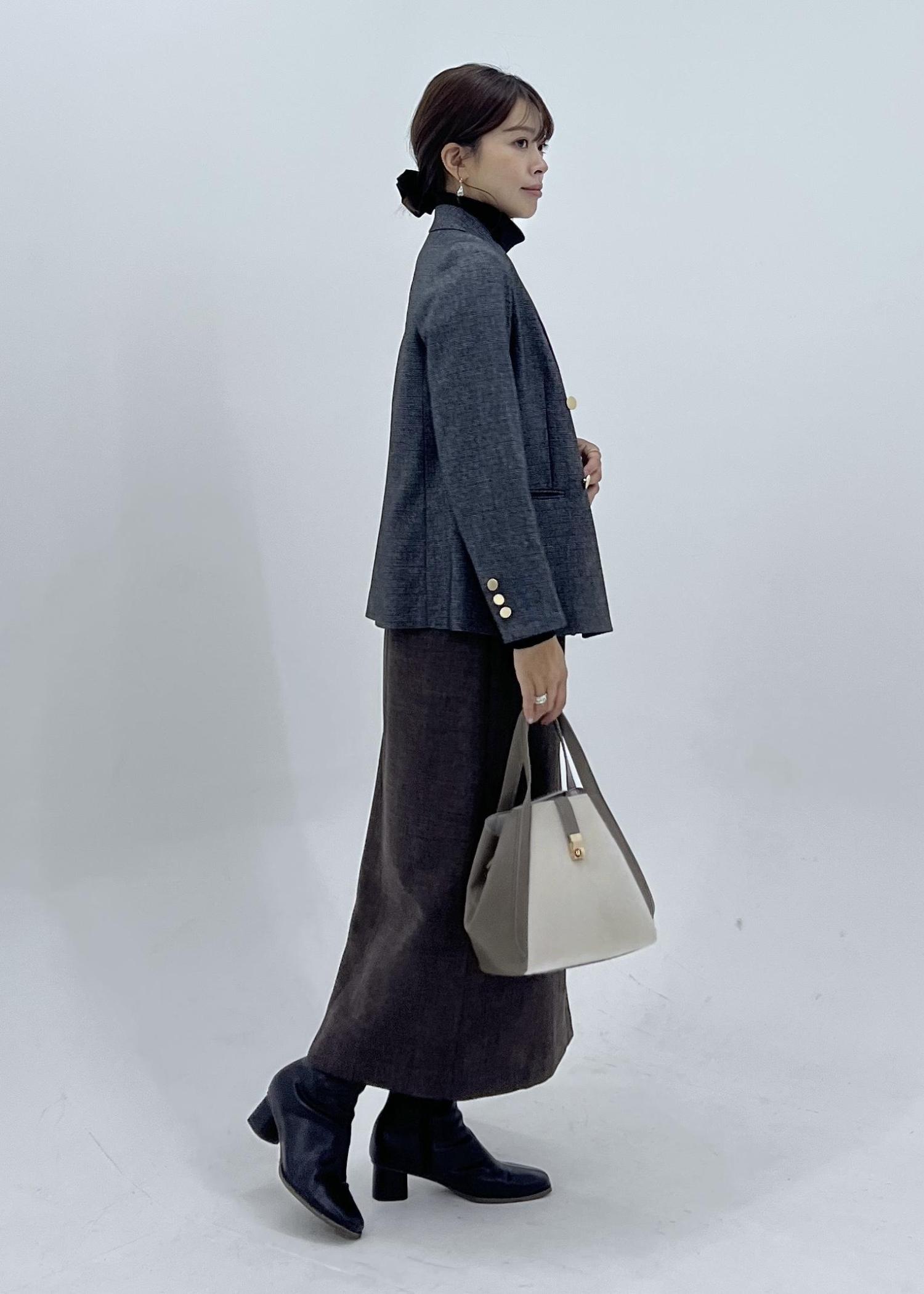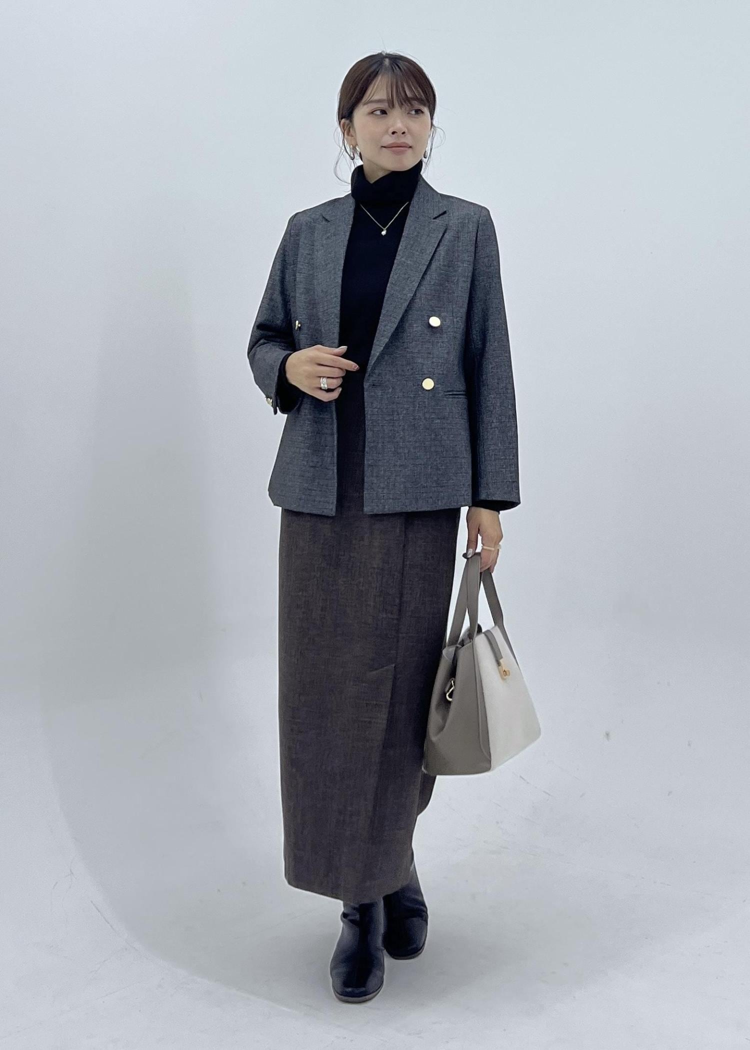 人気のジャケットはタートルネックをインして冬コーデにも引き続きおすすめ。