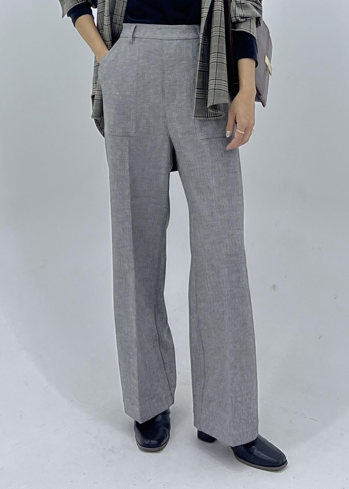 脚のラインを拾わずスッキリ感のあるワイドシルエットですが、センタープレス入りでオンオフ両方で履けるデザイン。