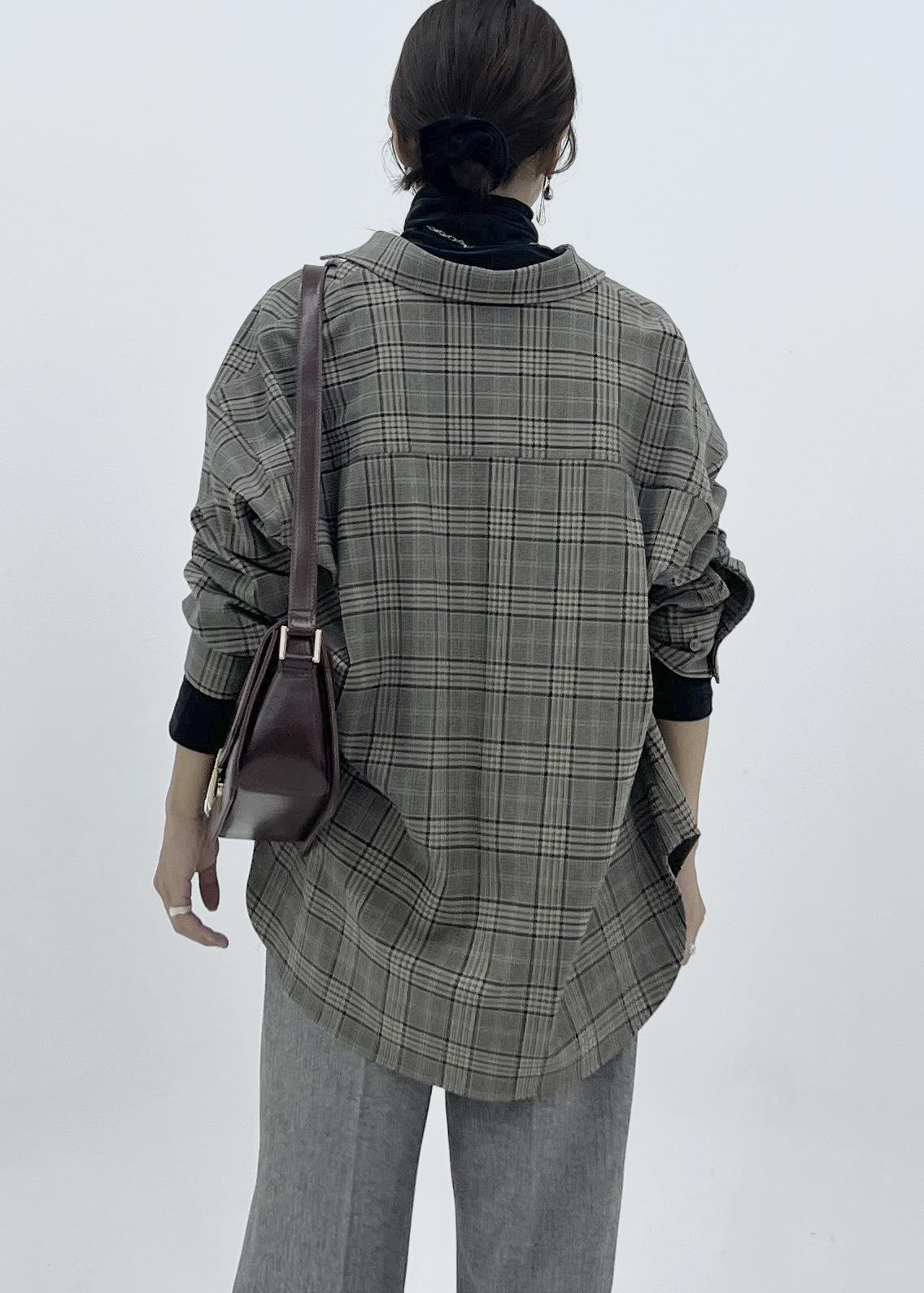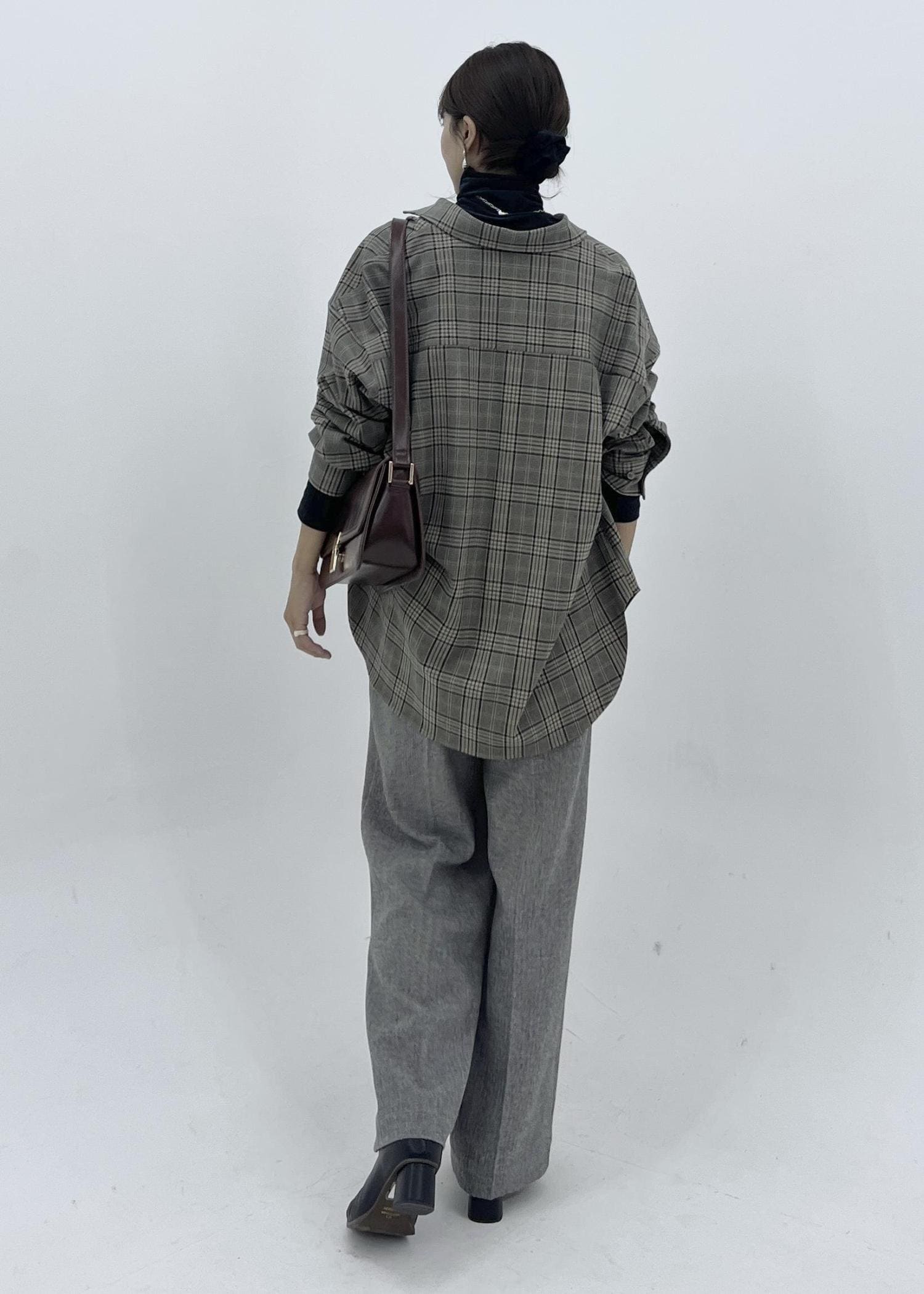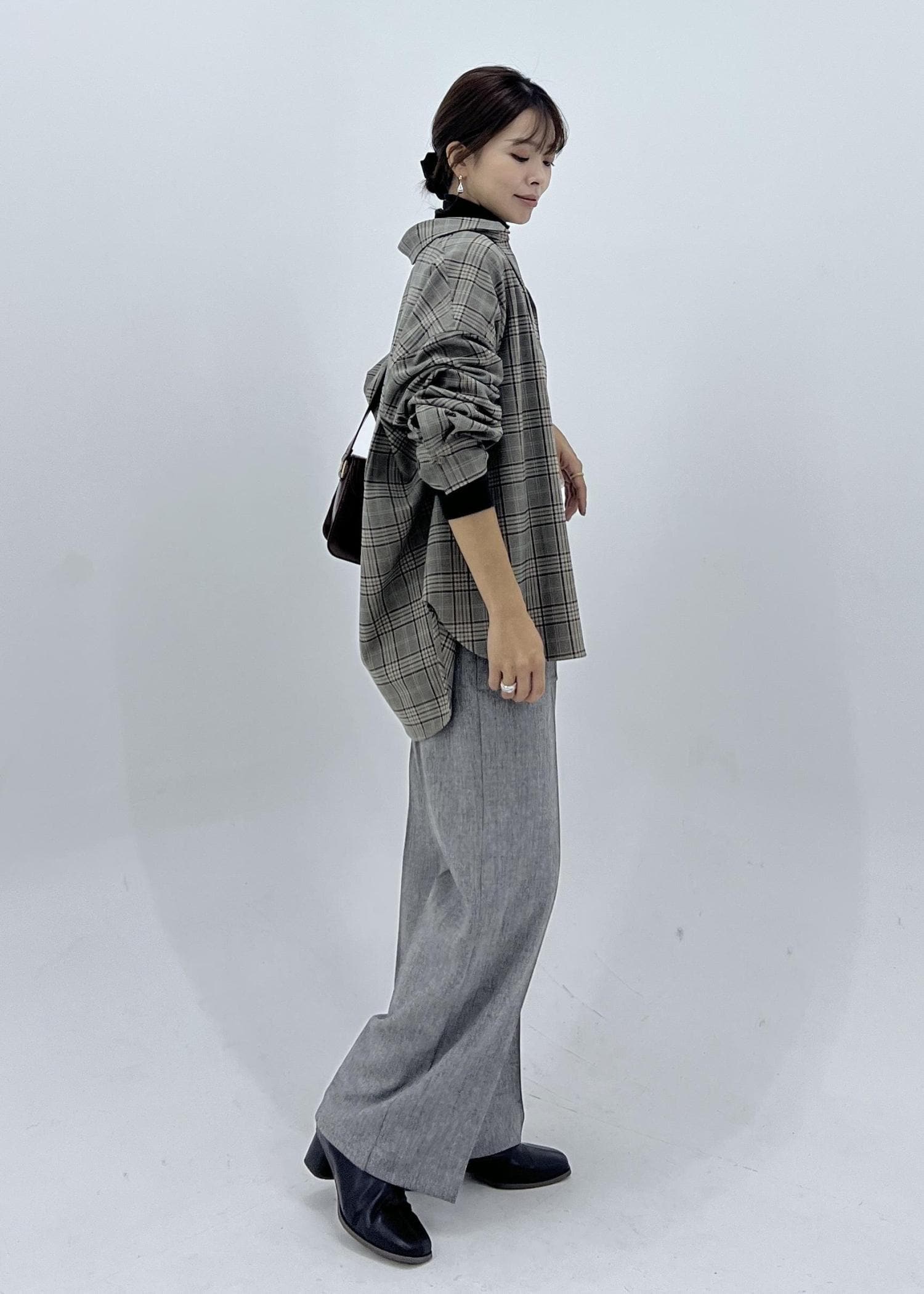 ゆったりシルエットのチェック柄シャツは、レイヤードして大人冬コーデに。