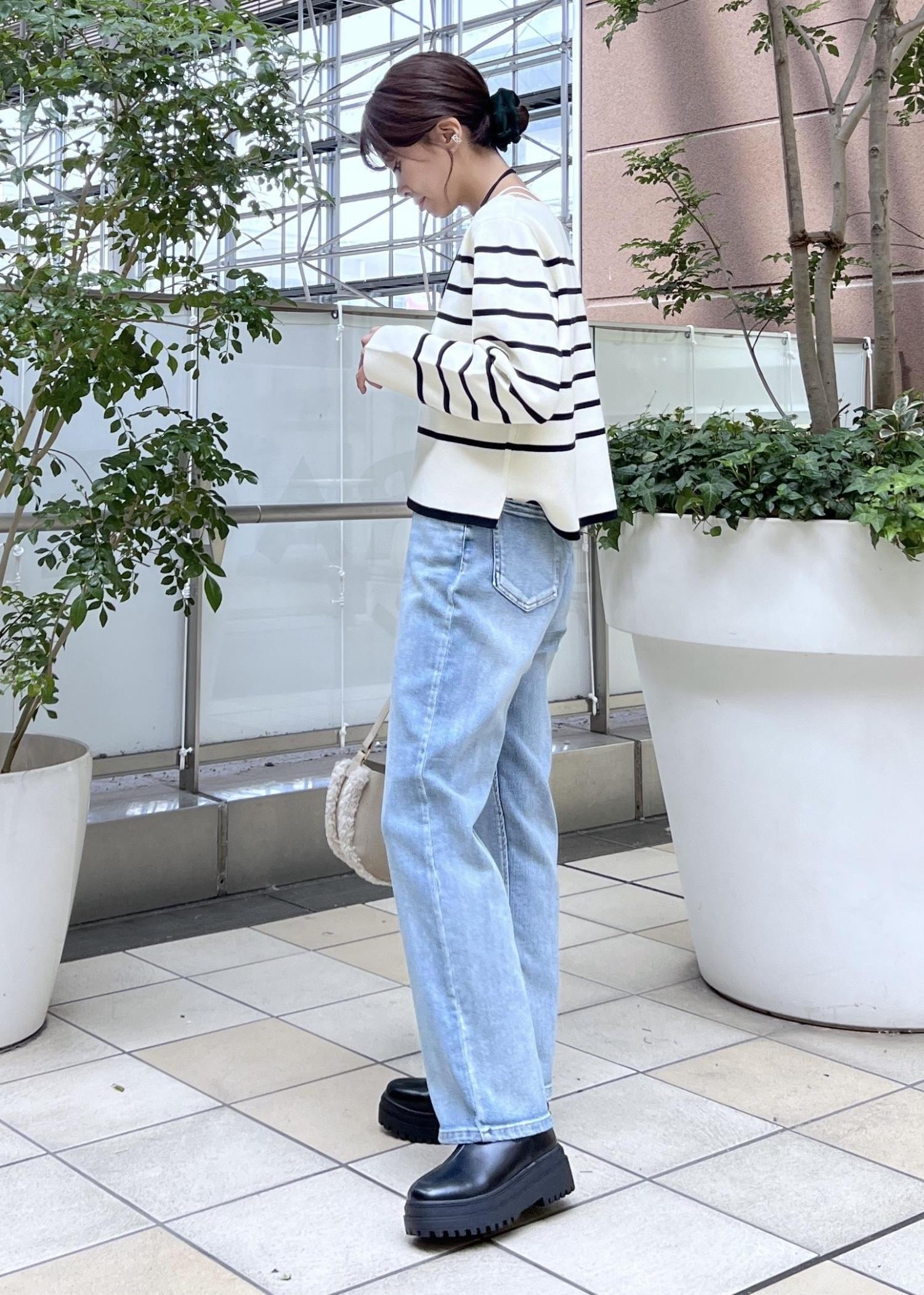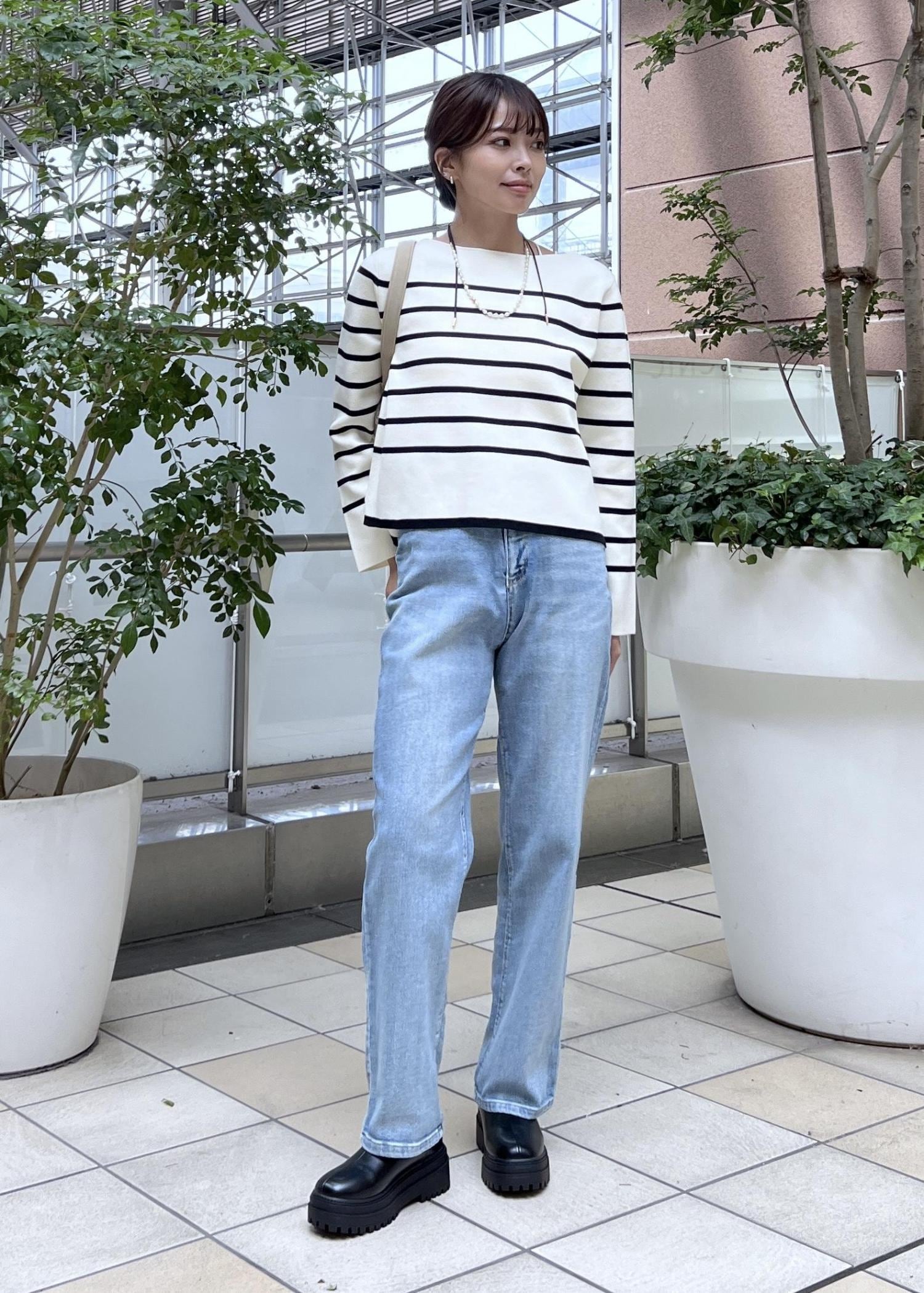 ボーダー×デニムのカジュアルスタイルで、気楽にお出かけできるコーデにしました。