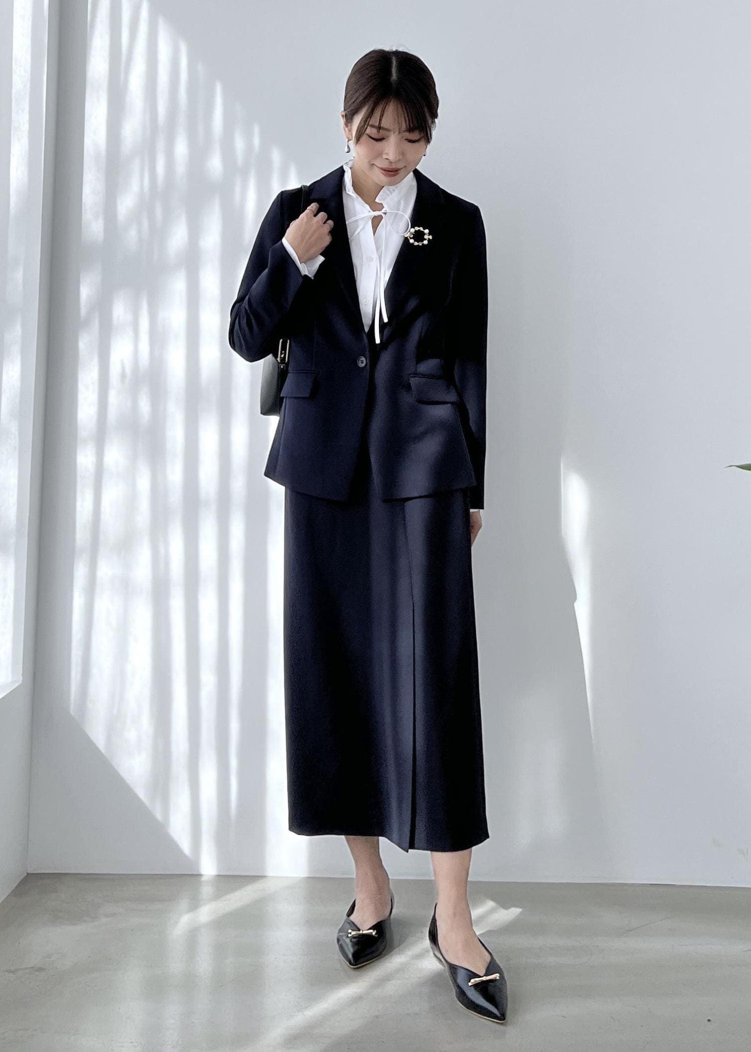 小物もシンプルで小ぶりなアイテムを合わせるのがポイントです。