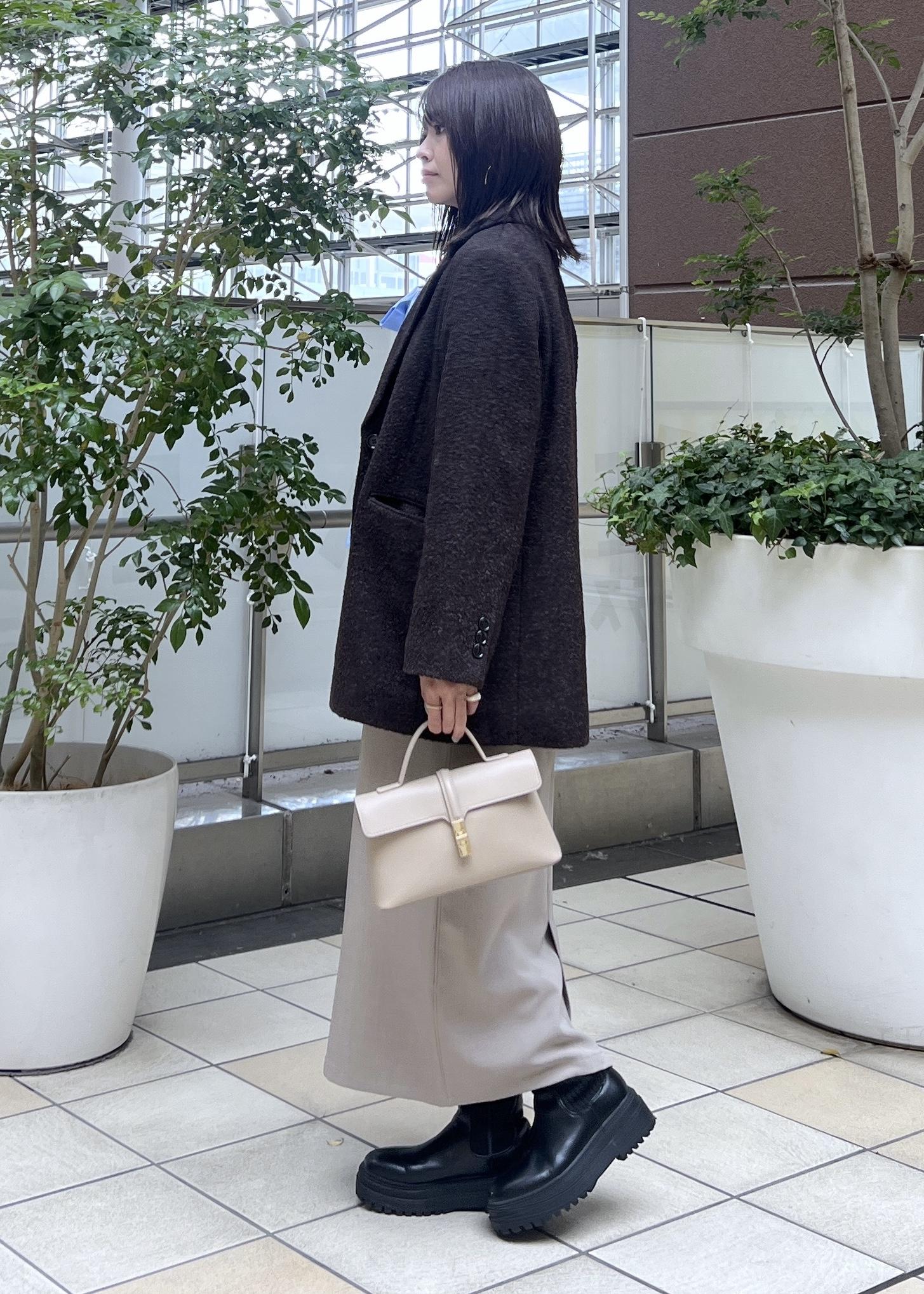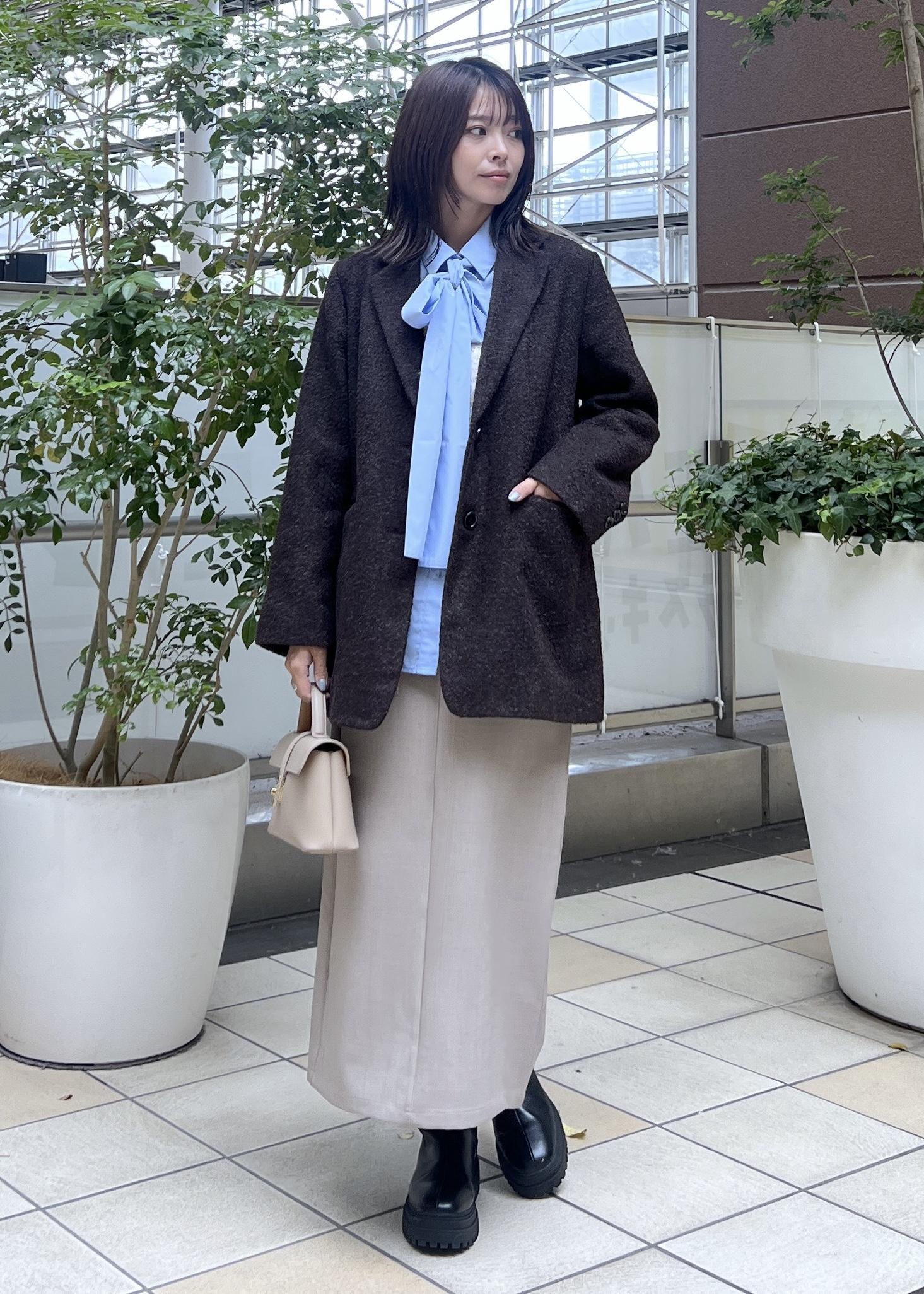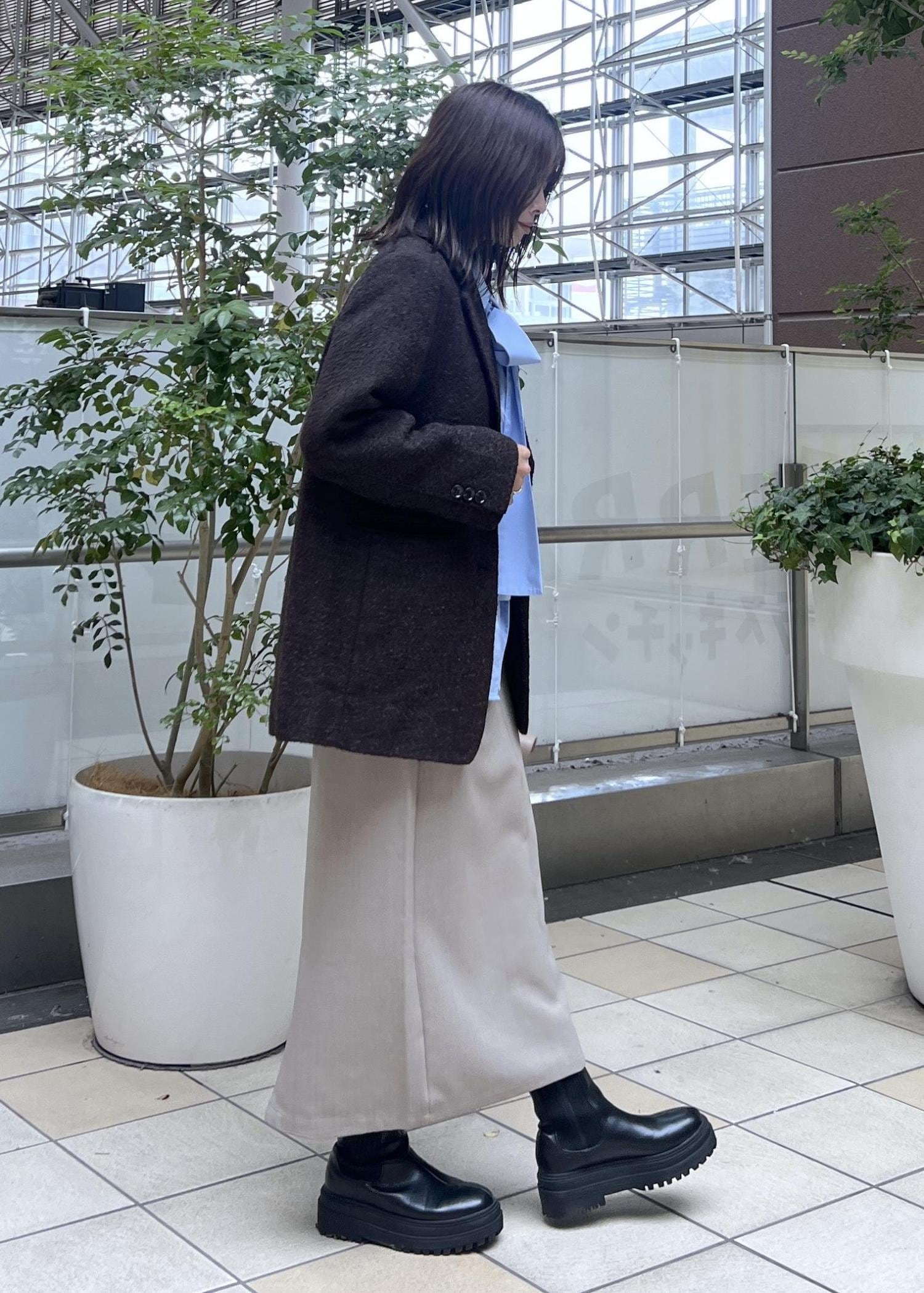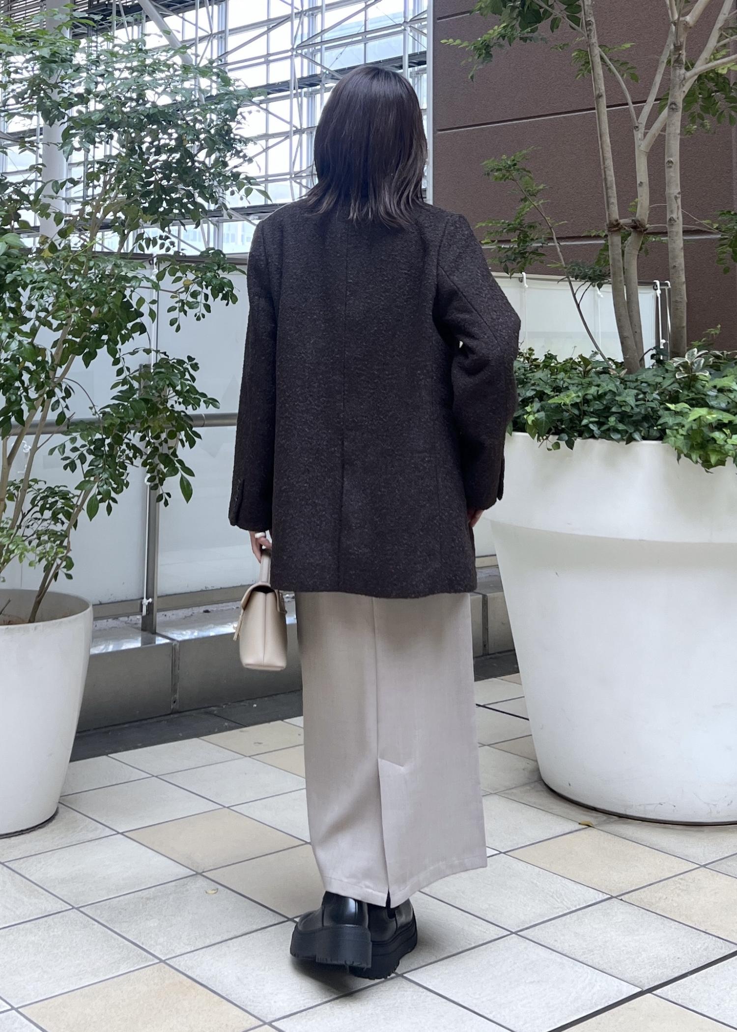秋冬のアウターにおすすめのジャコットは、レイヤードスタイルにもおすすめ。