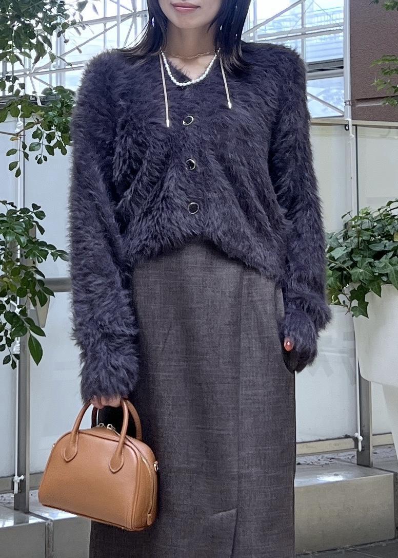 VISラビットファーVネックカーディガン/イージーケア・WEB限定カラーチャコール / F¥5,929レビュー肌触りも柔らかくしなやかなフェザーニット生地。釦は大きめのパーツがポイント。