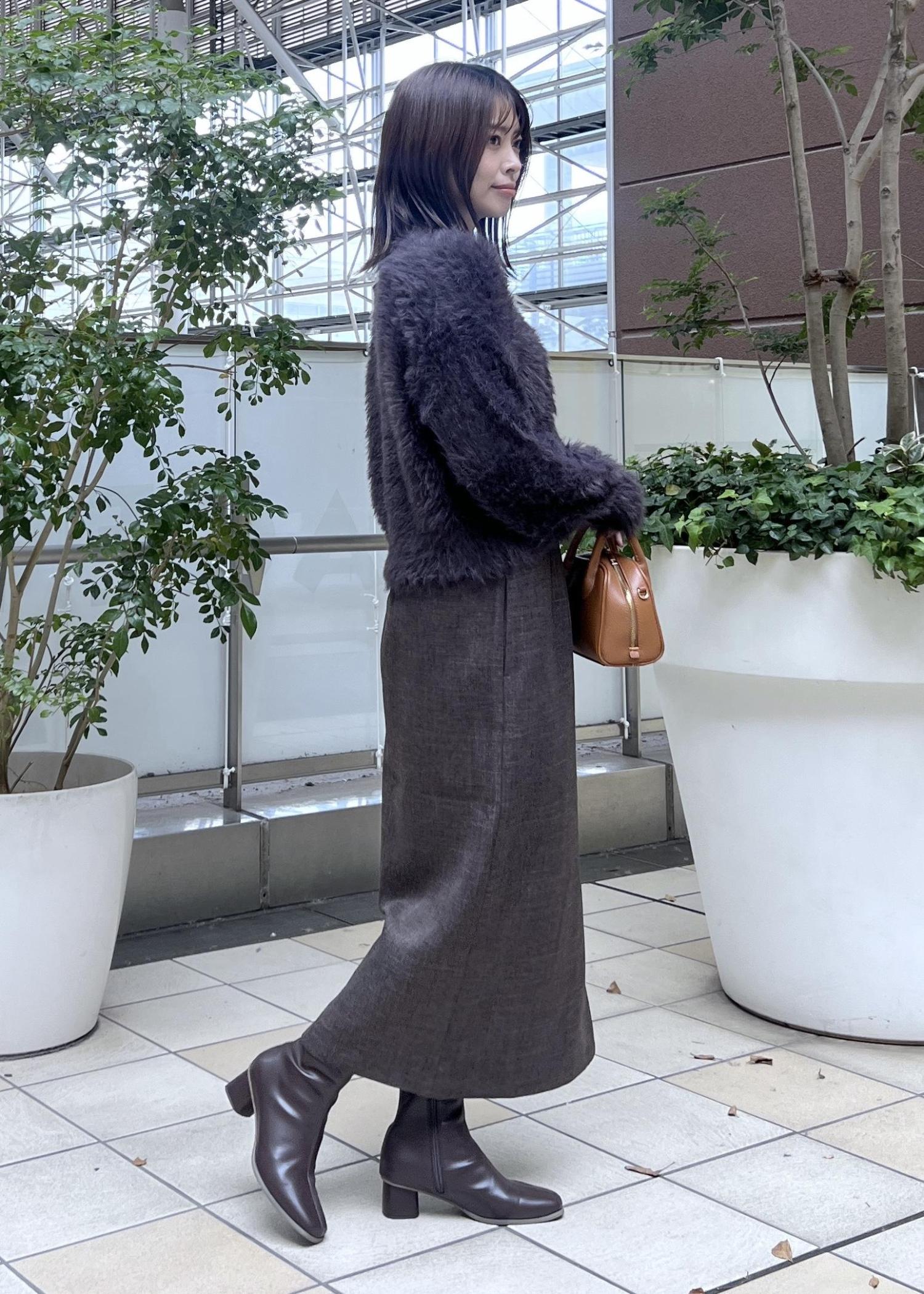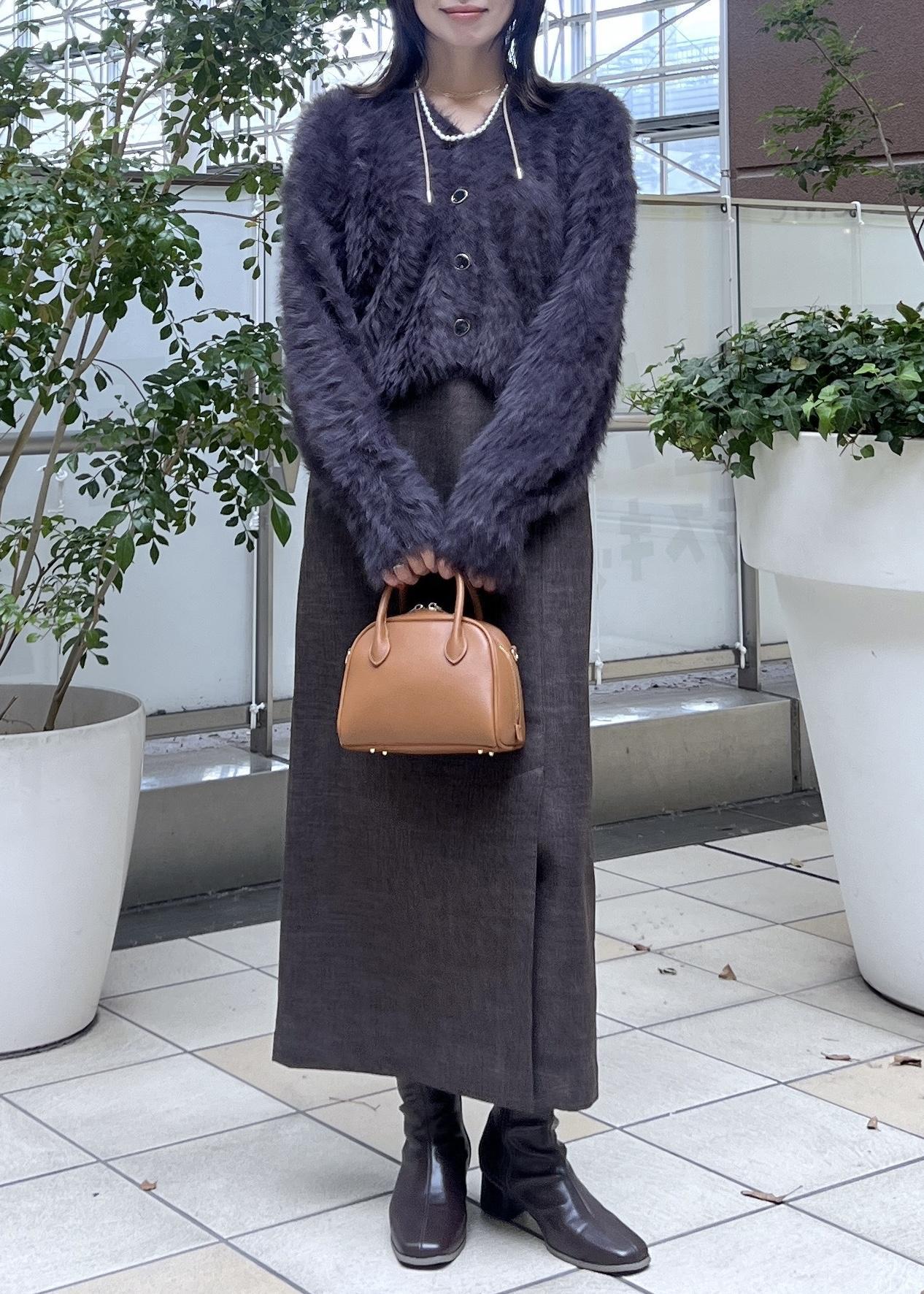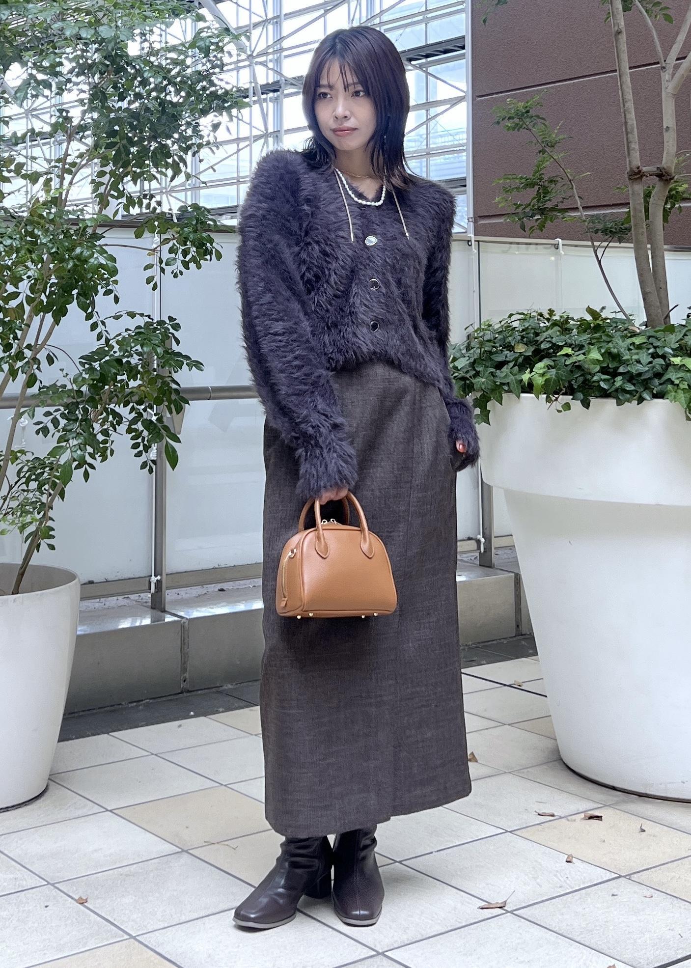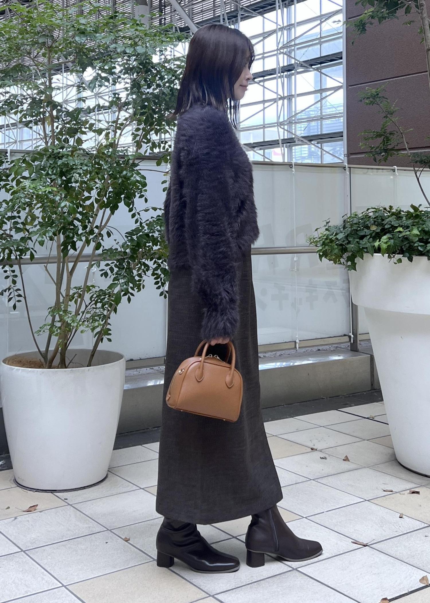 シンプルな中でも素材感を秋冬らしいものを取り入れるのがポイントです◎。