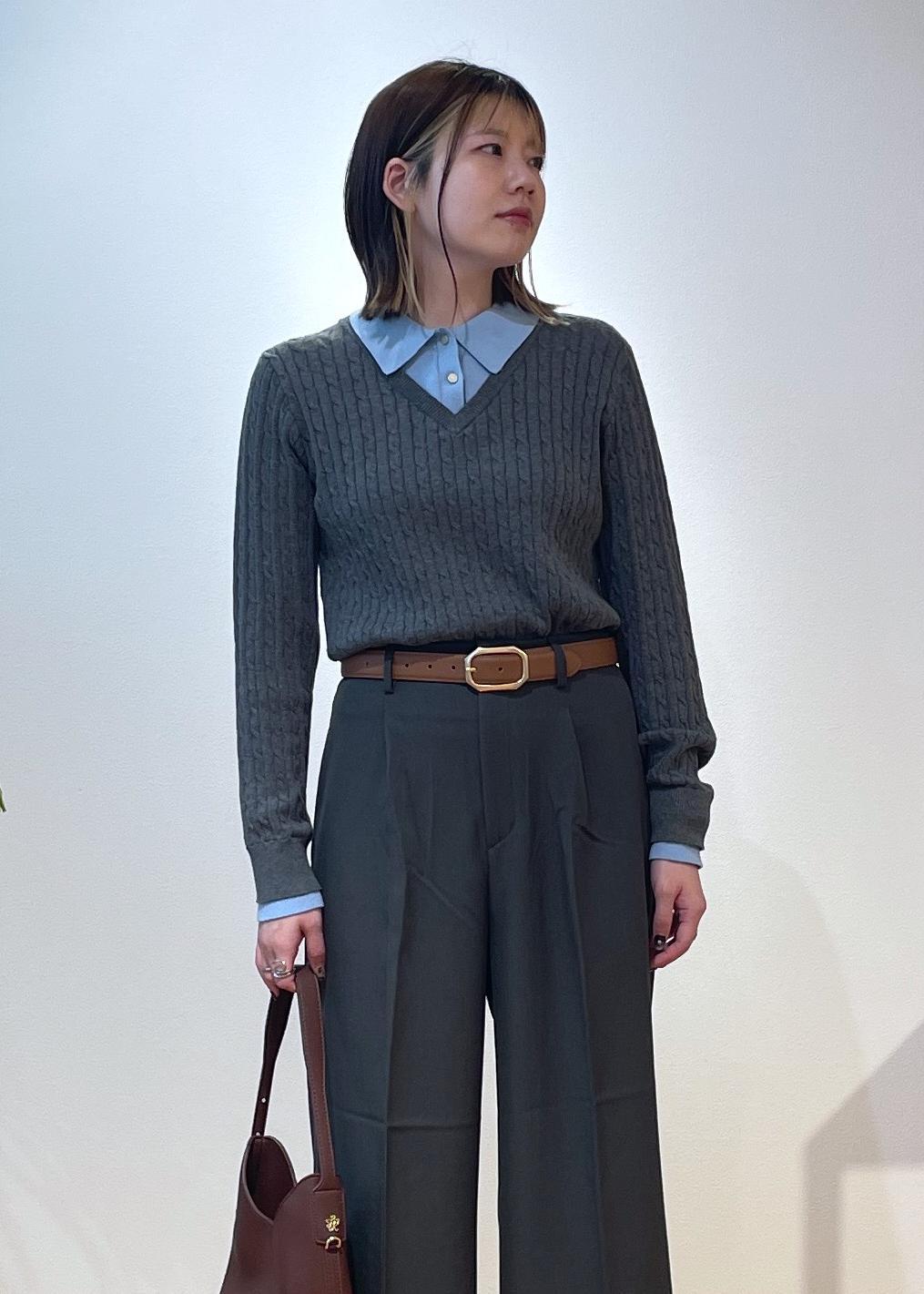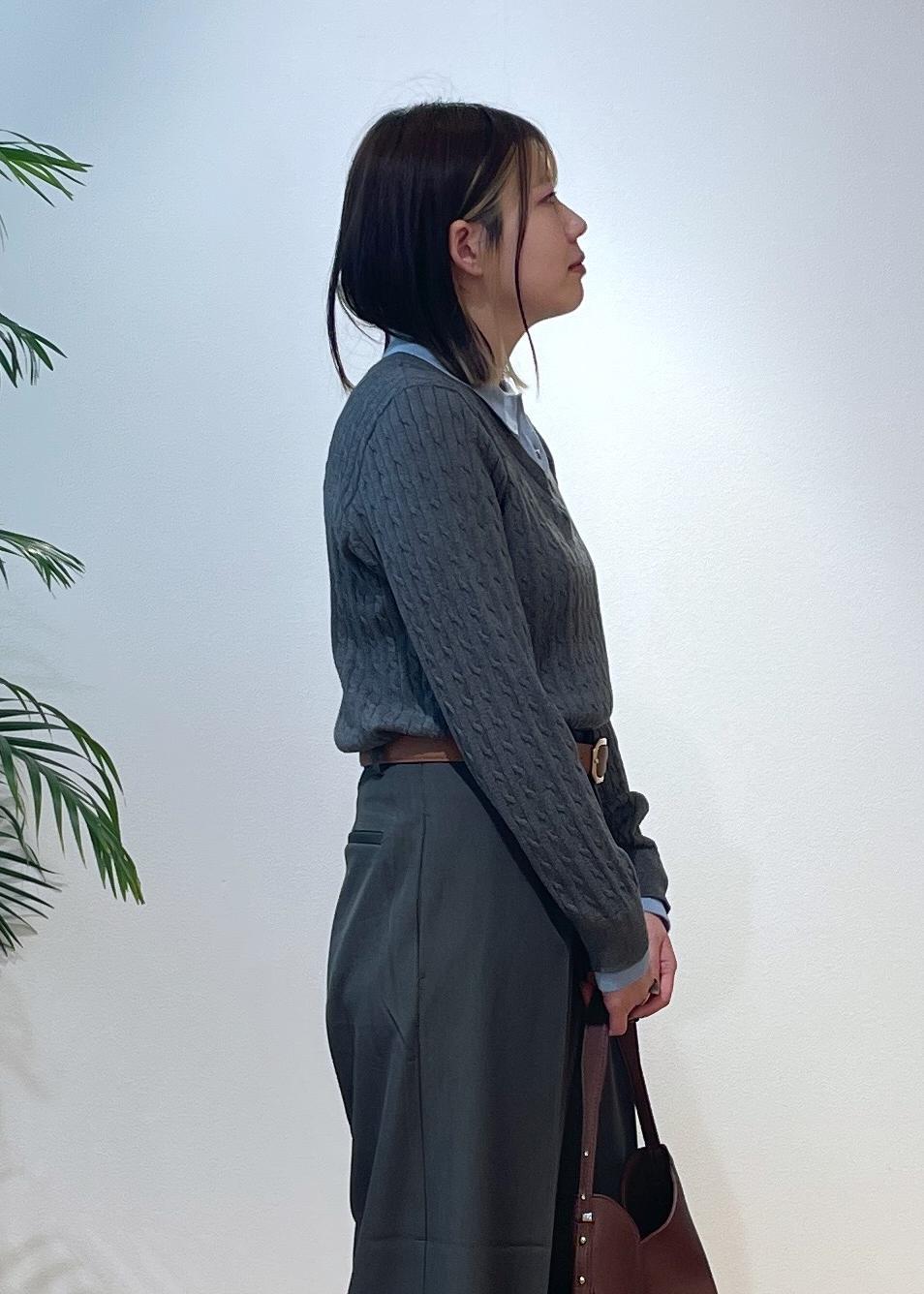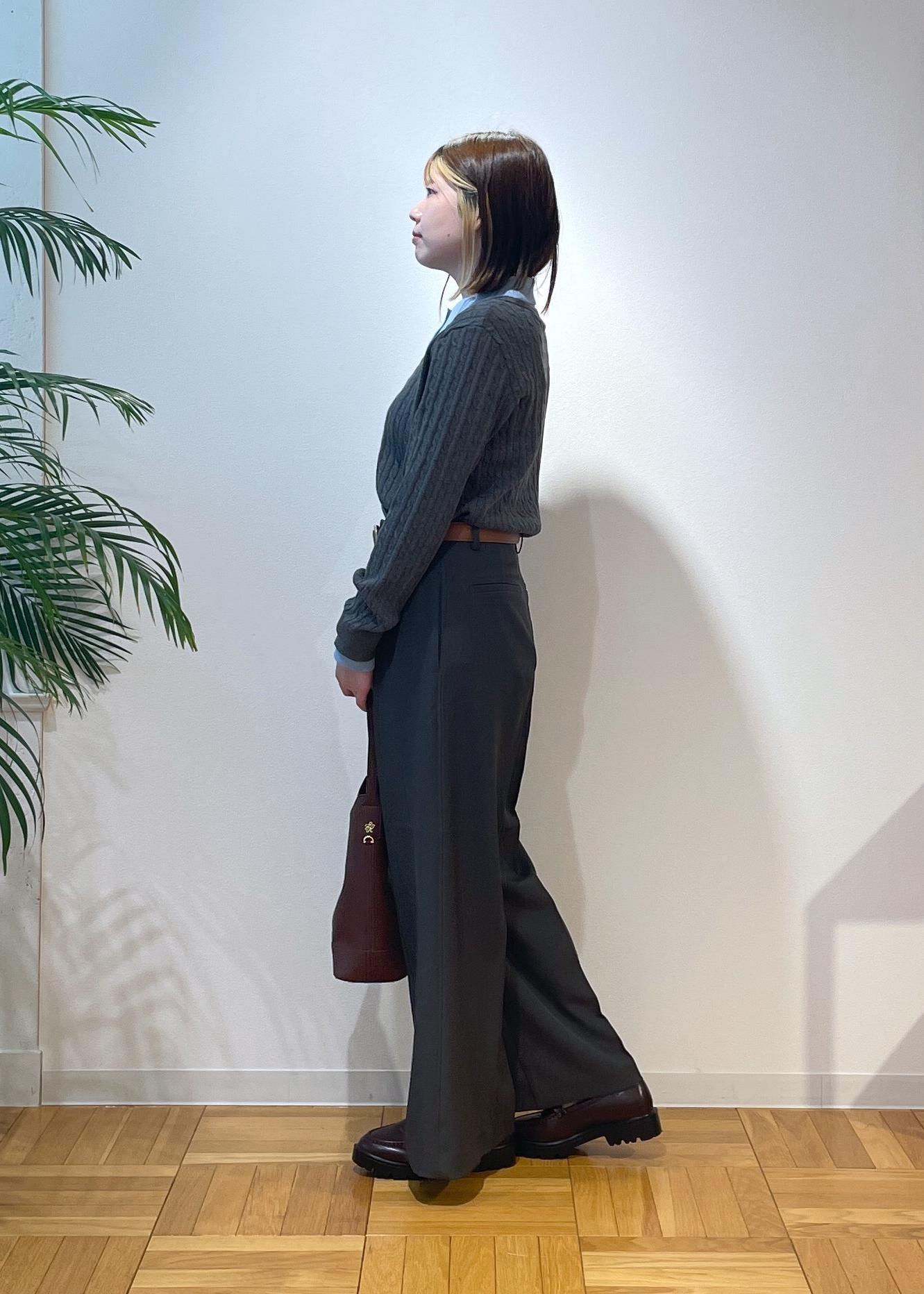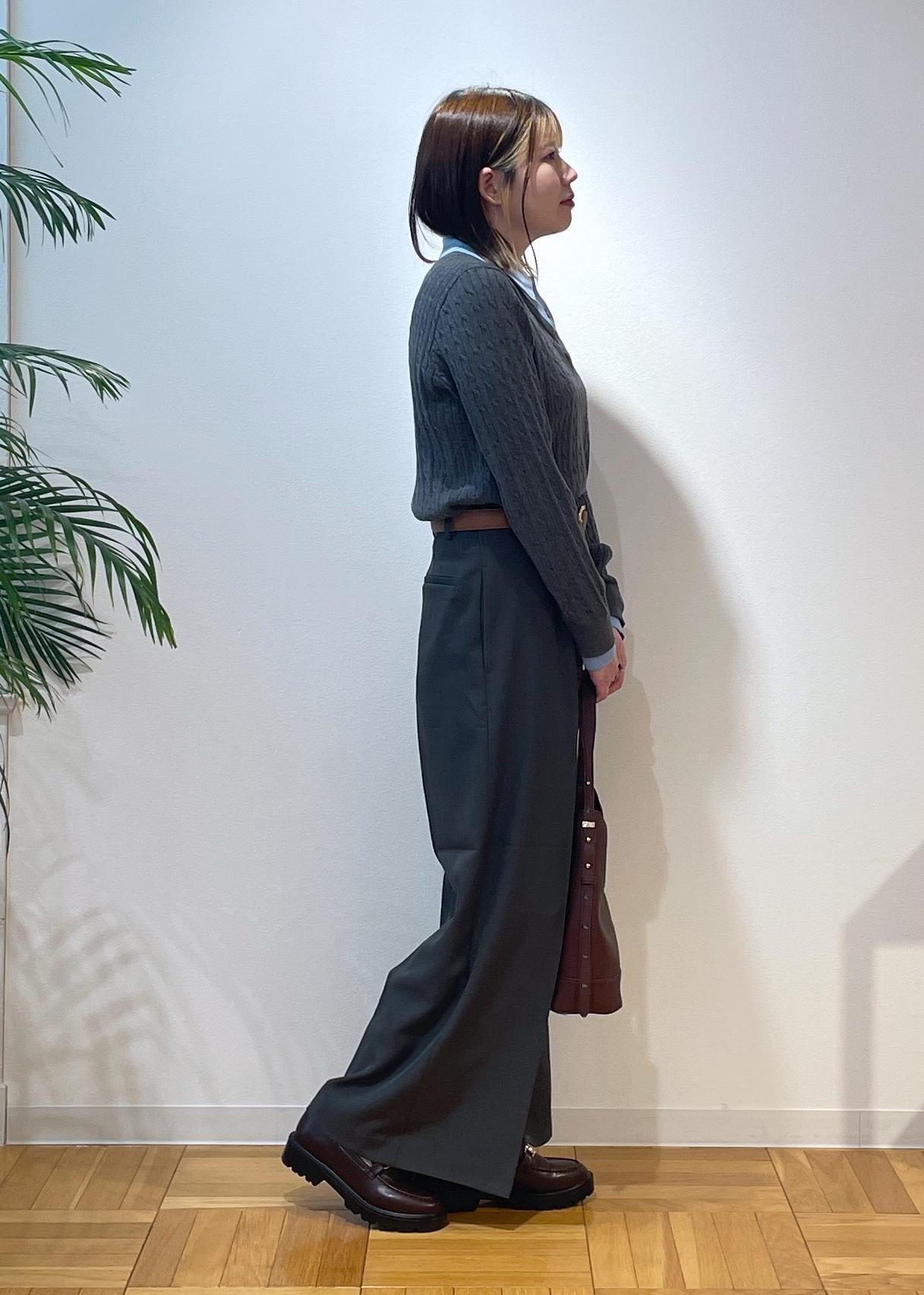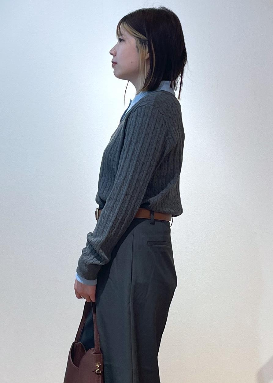 かっちり見えするグレー系で統一させて、ベルトのカラーでウエストのメリハリをつけてます♩
