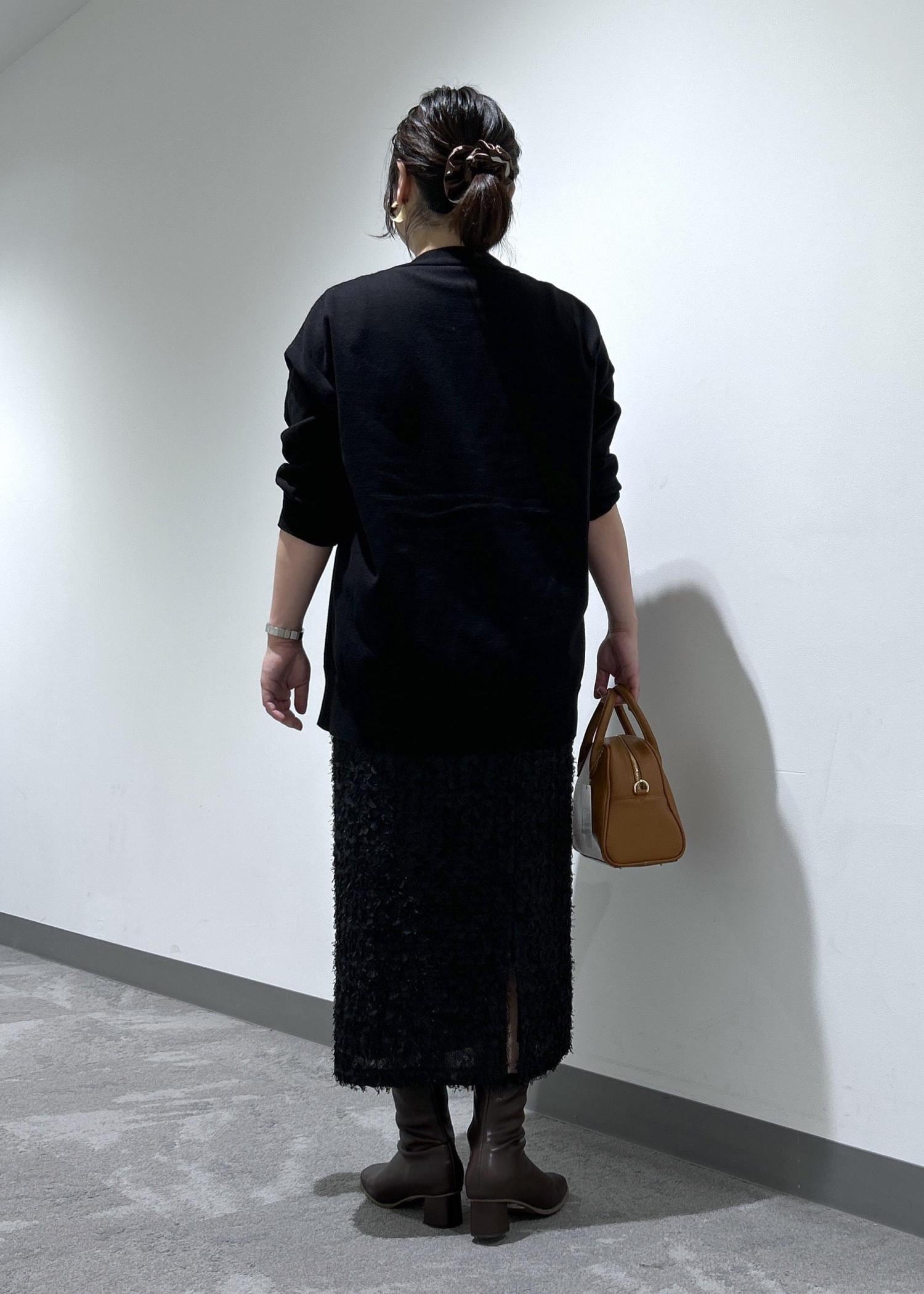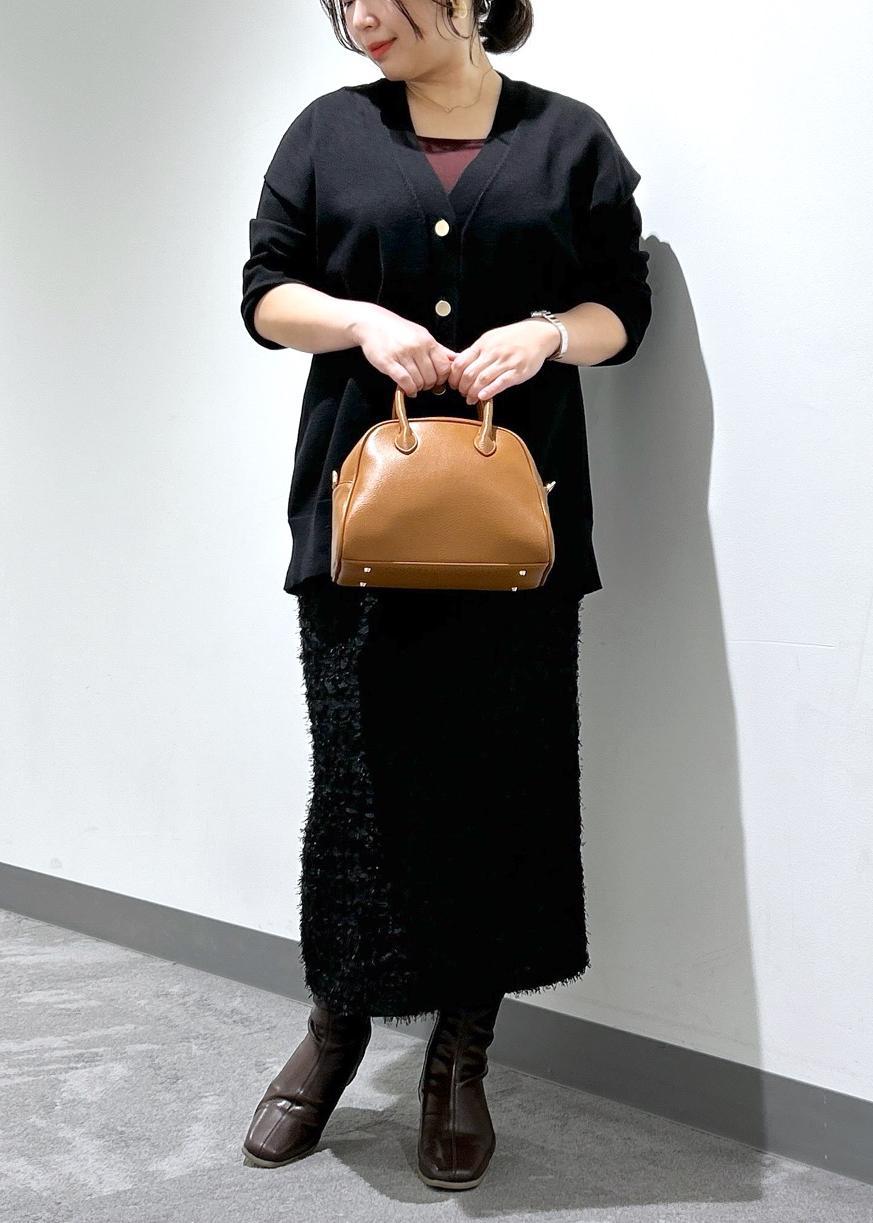 軽やかで着心地の良いニット素材のVネックカーディガンと、さらっと履けるストレスフリーなチュールアイラインスカートです!