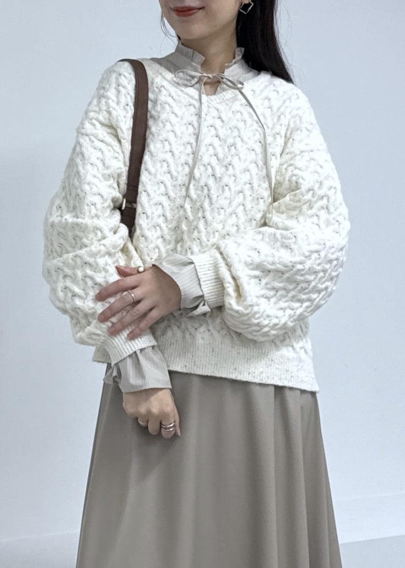 ROPÉ PICNICミニフラワースパンコールニットキナリ / F¥5,995レビュー腰がちょうど隠れる着丈です。ぽわんと丸みのあるお袖と花モチーフのスパンコールがさり気ない可愛さを演出。内側もスパンコールが散りばめてあるので袖ありのインナー合わせがお勧めです。