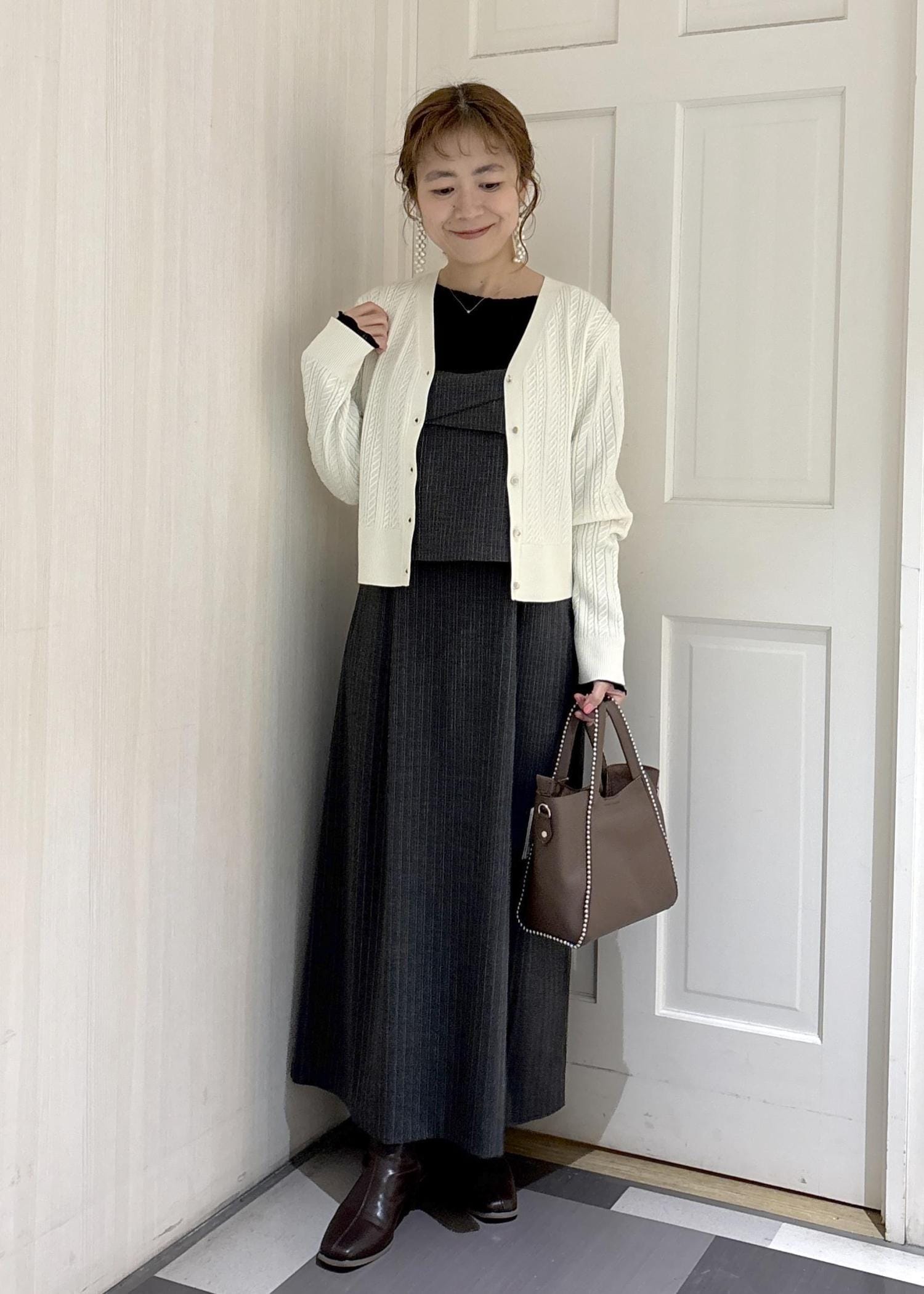 白いカーディガンなので、お顔映り良く、お写真撮る時にも映えますよ◎