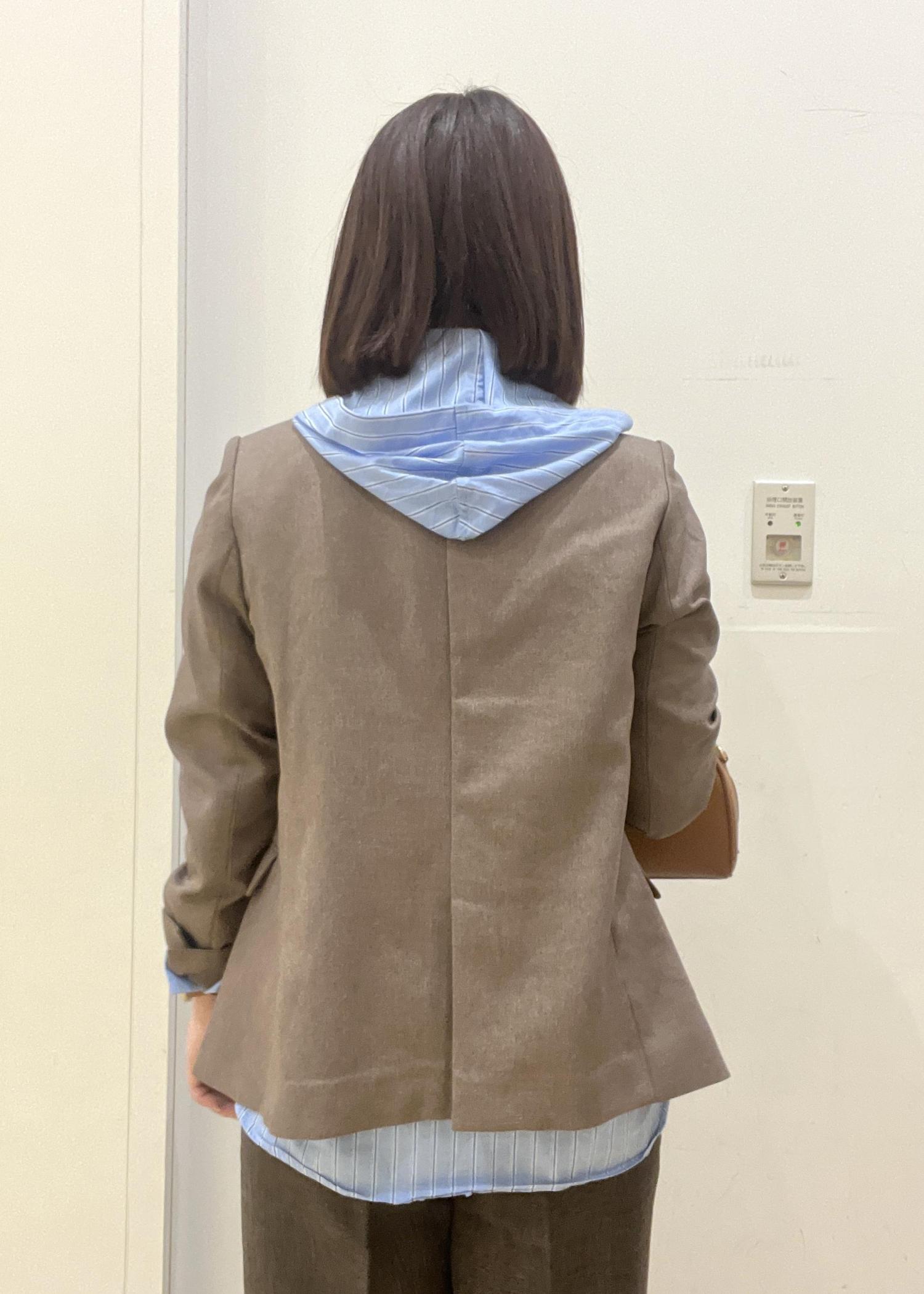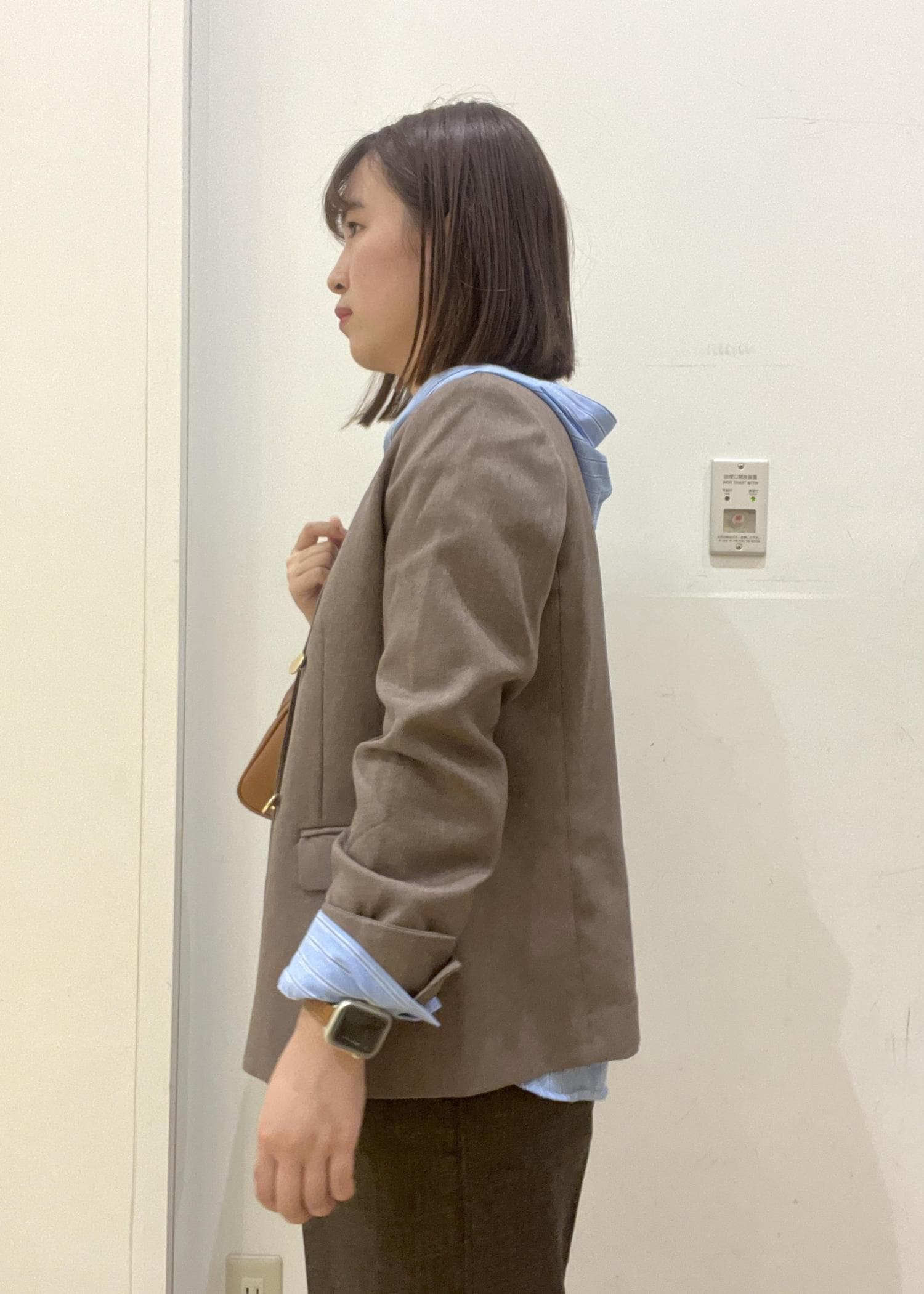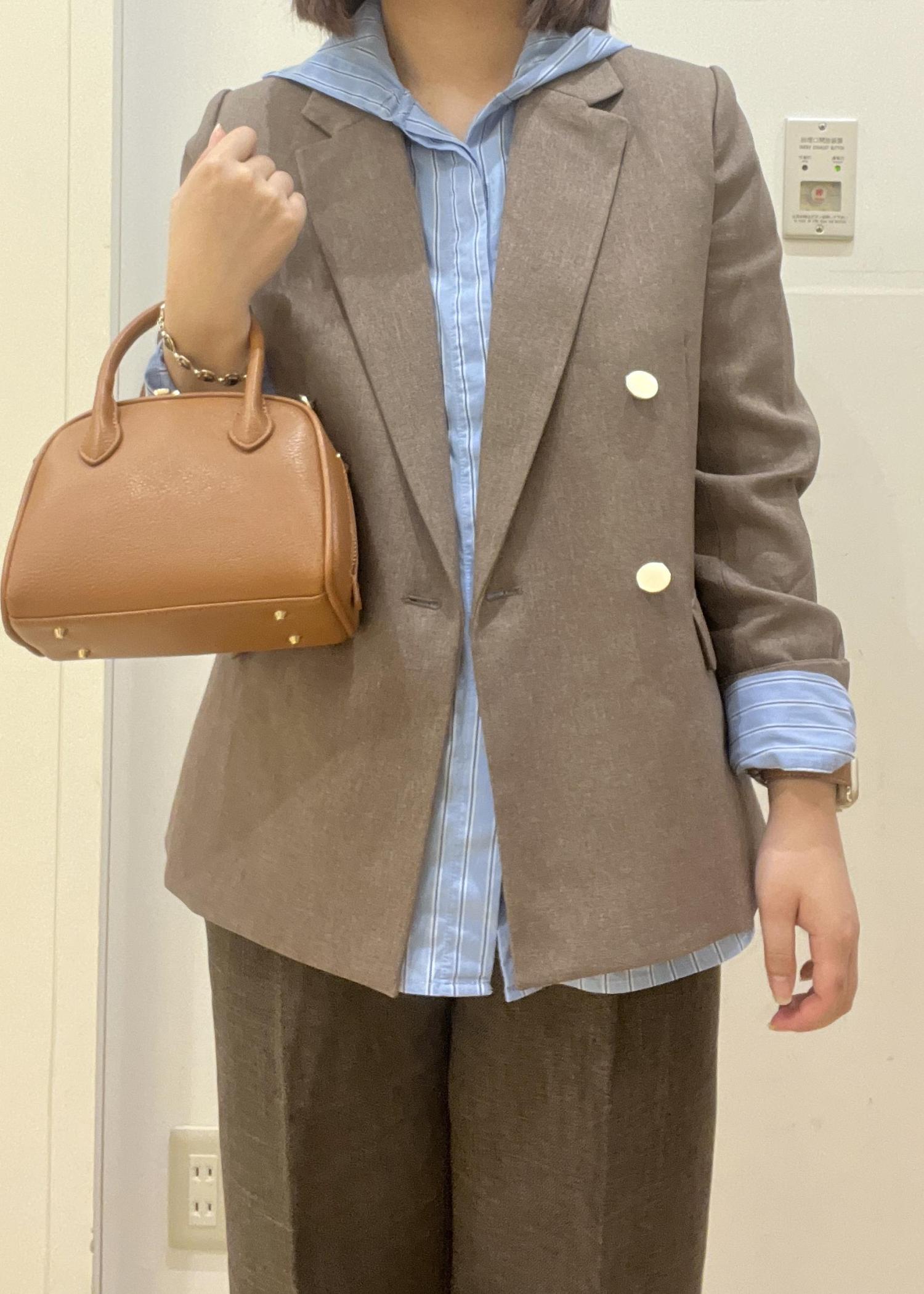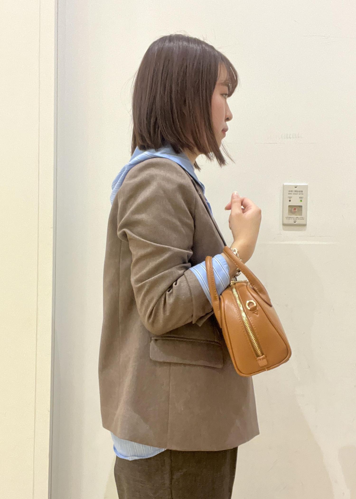 セットアップのアイテムを上下それぞれ違うブラウンのものを選ぶことによって硬い印象にならないようにしました◎
