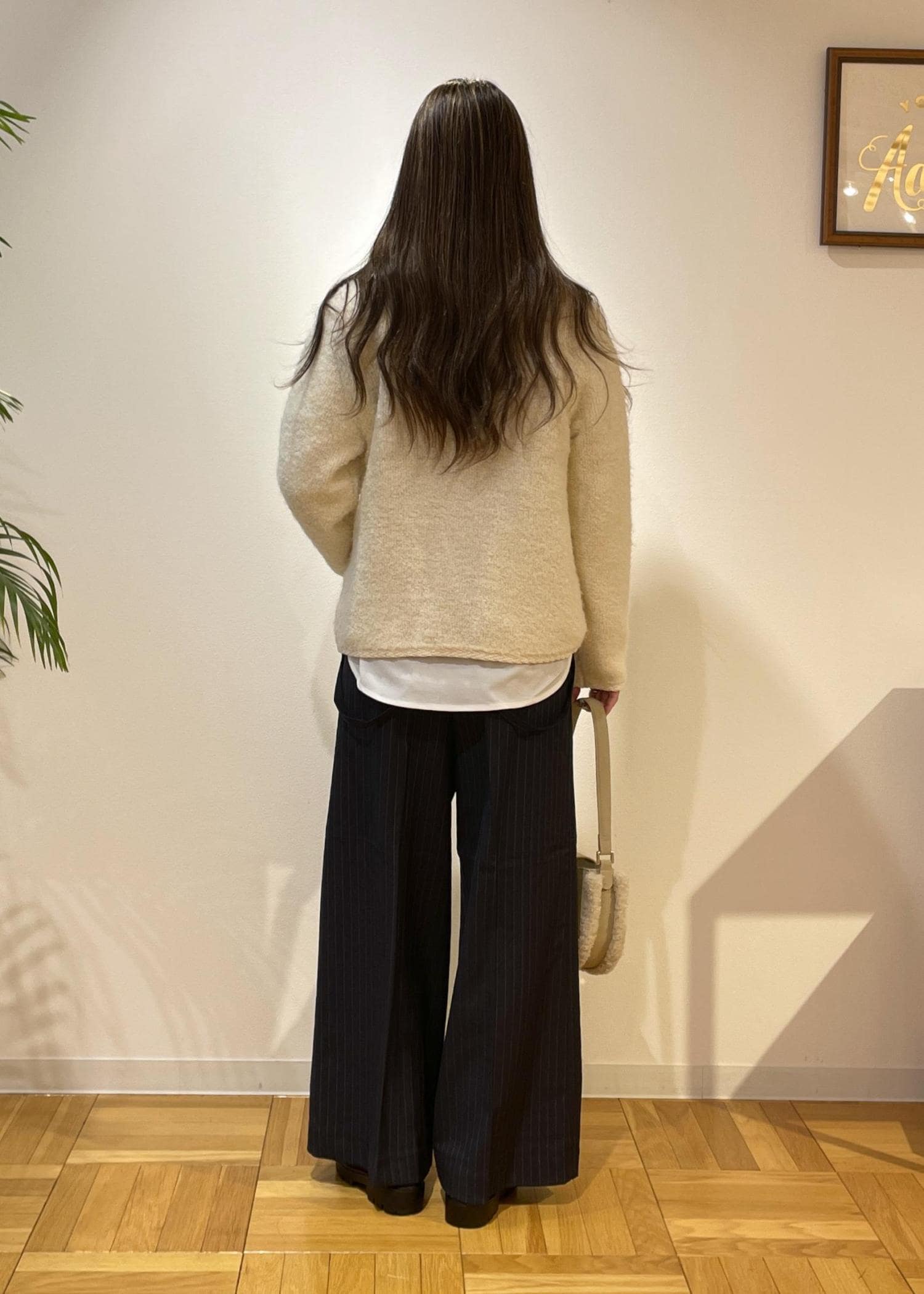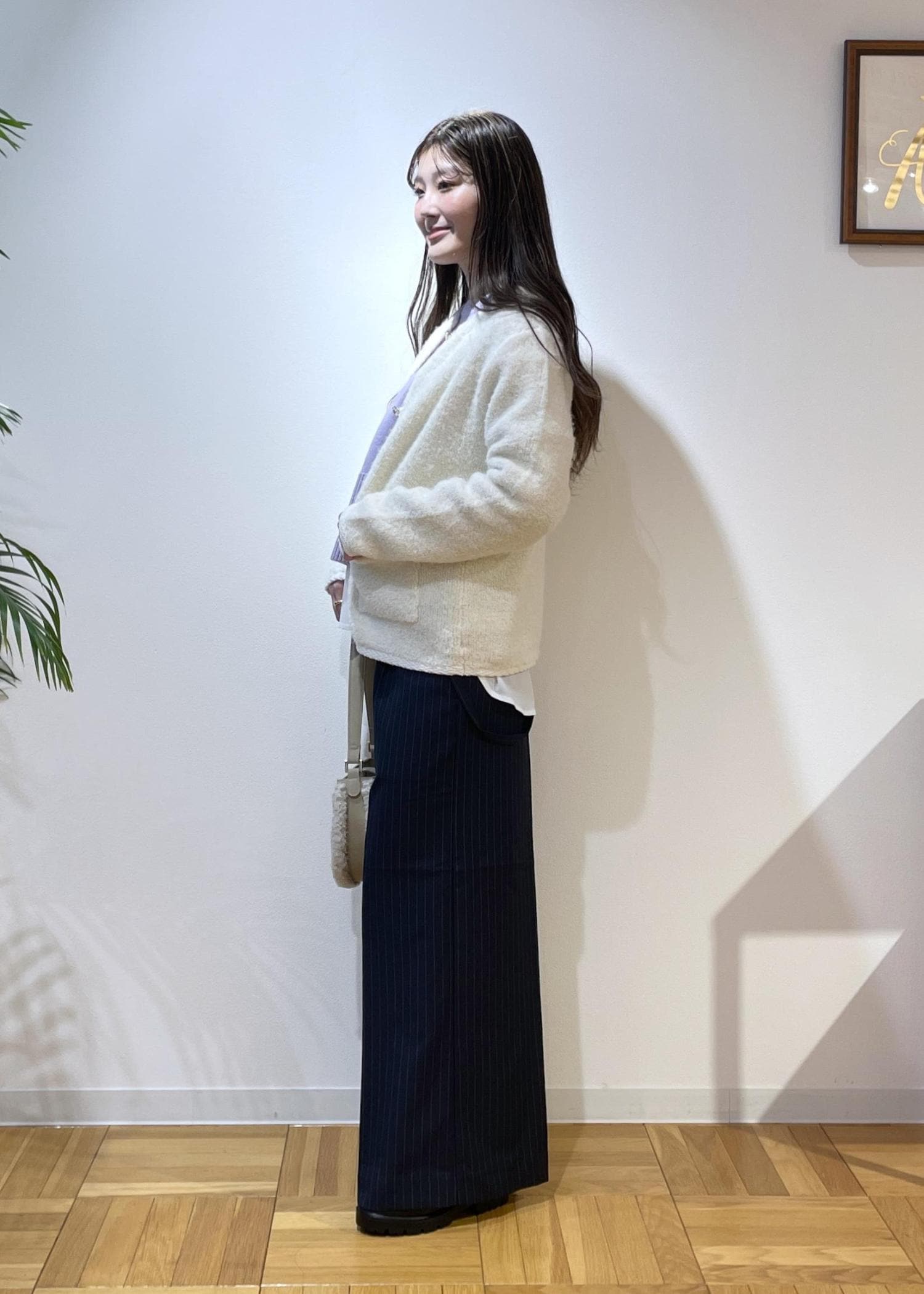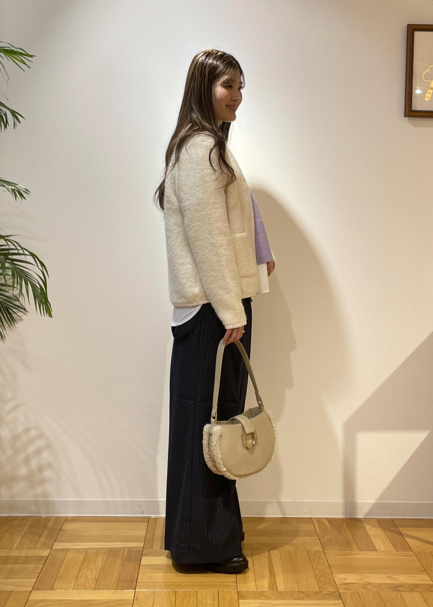 カーディガンとバッグがモコモコでリンクしていて可愛いです^ ^⭐︎