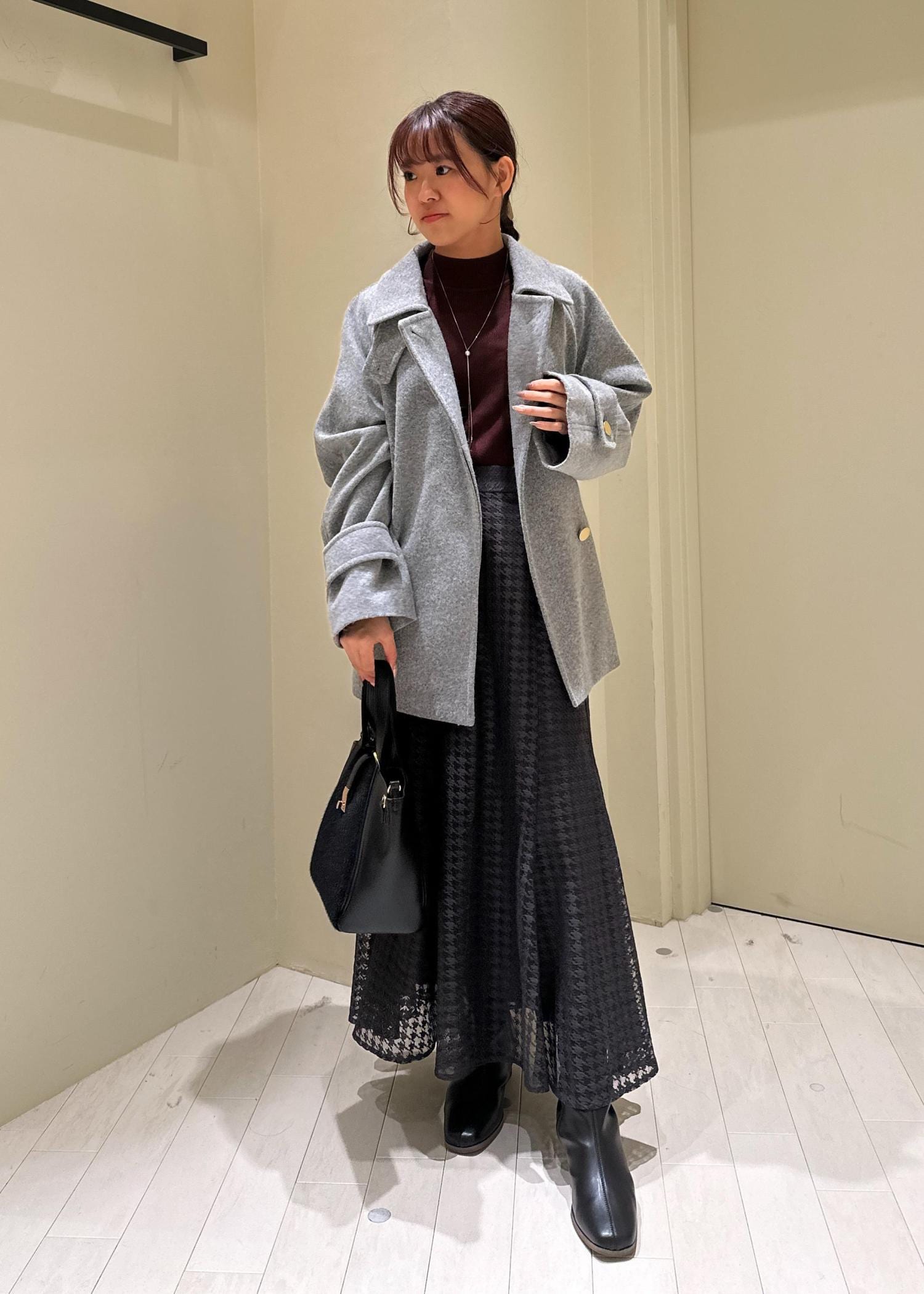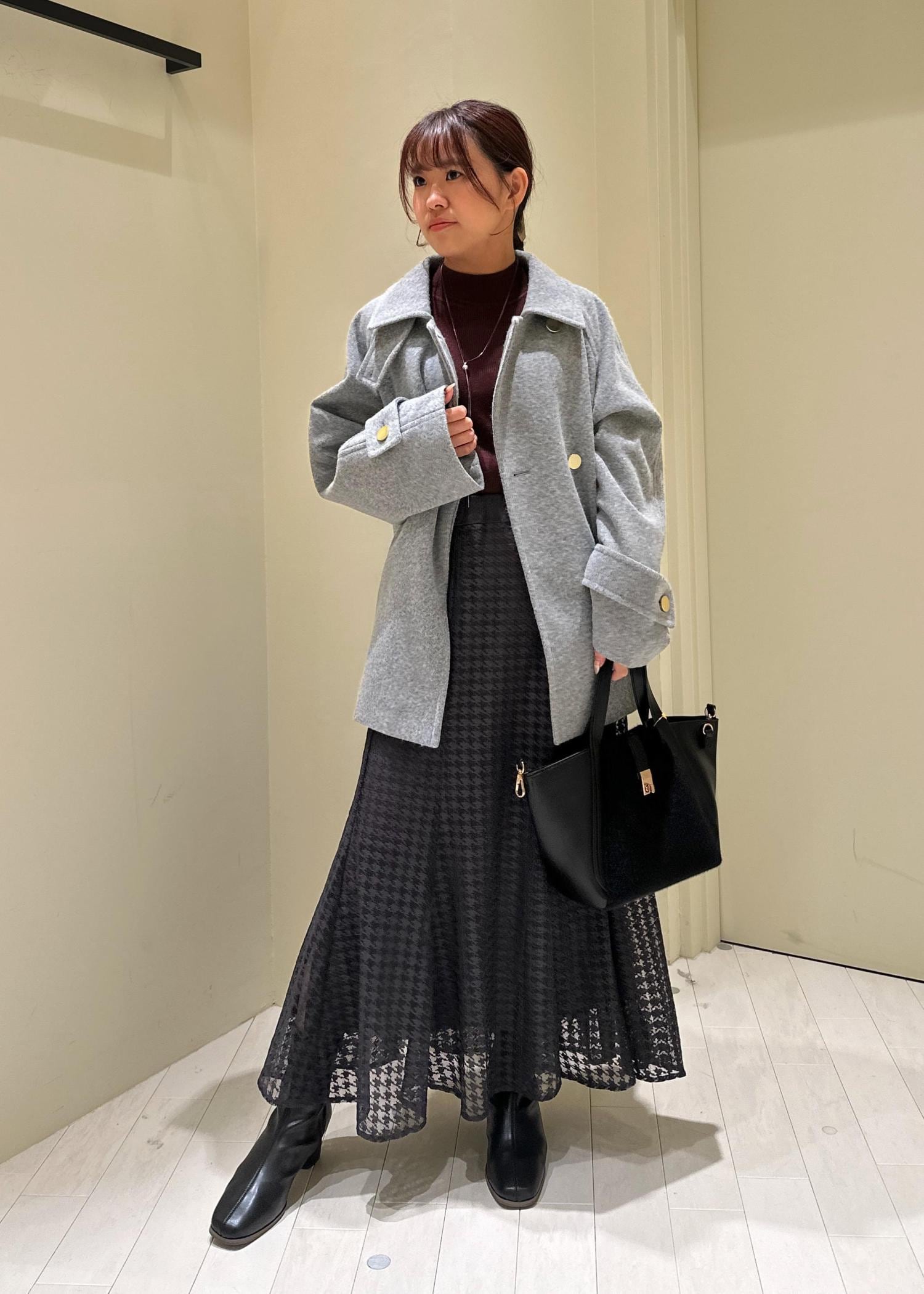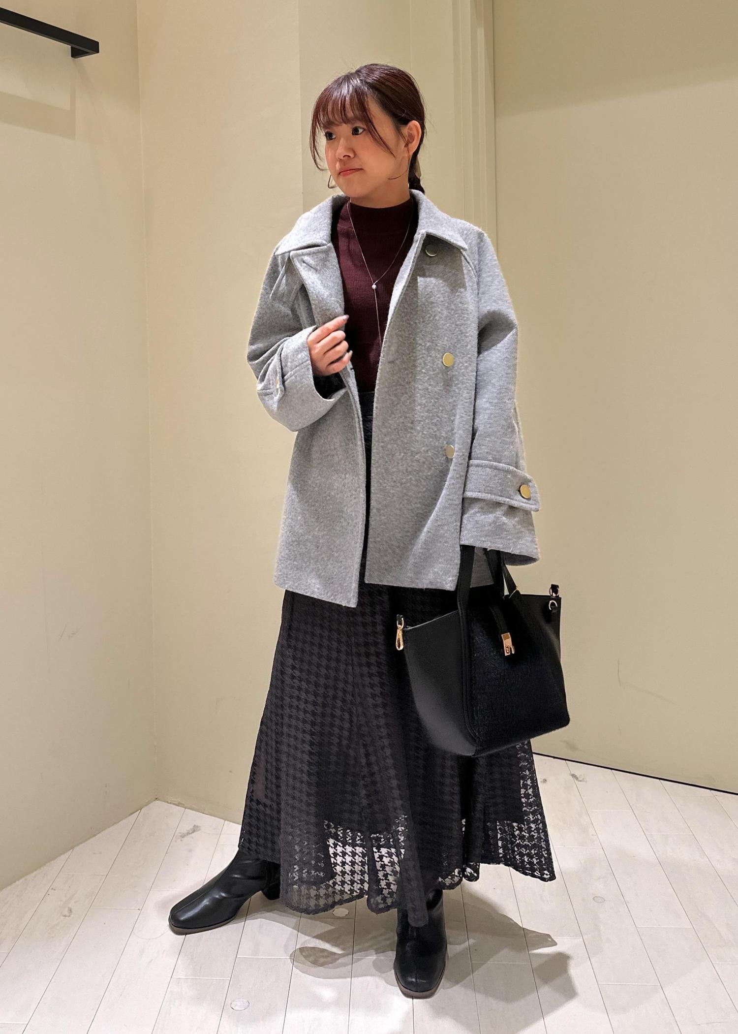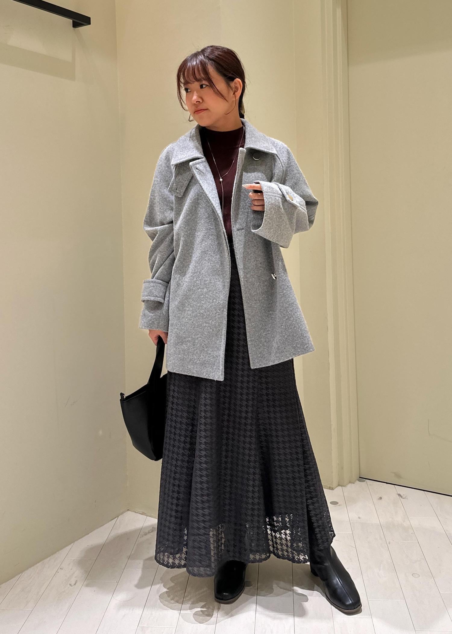 グレーのコートってカジュアルなコーデになりがちですがカラーやスカートの形など合わせ方によって大人レディなコーデにもなります◎