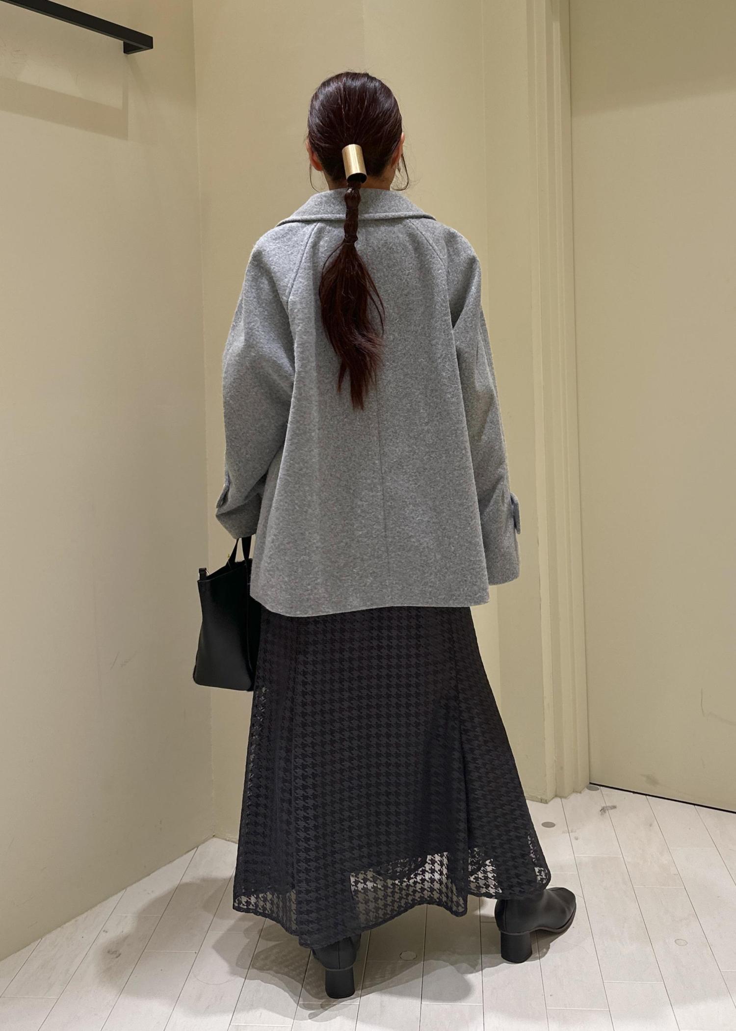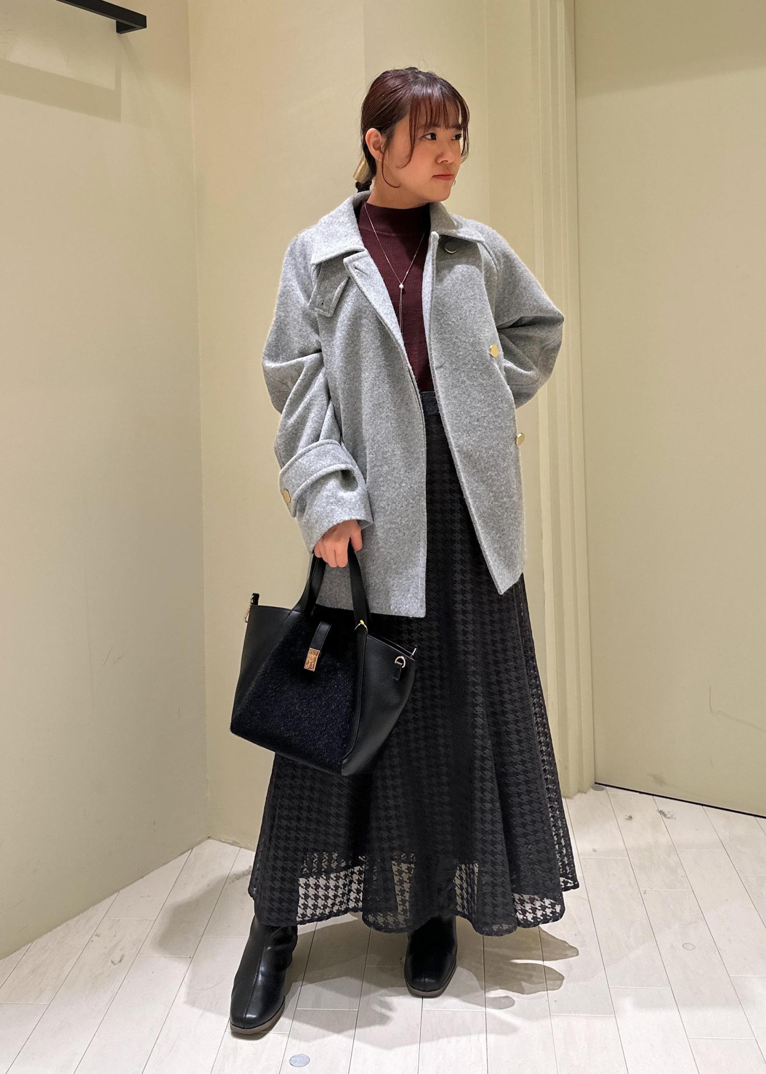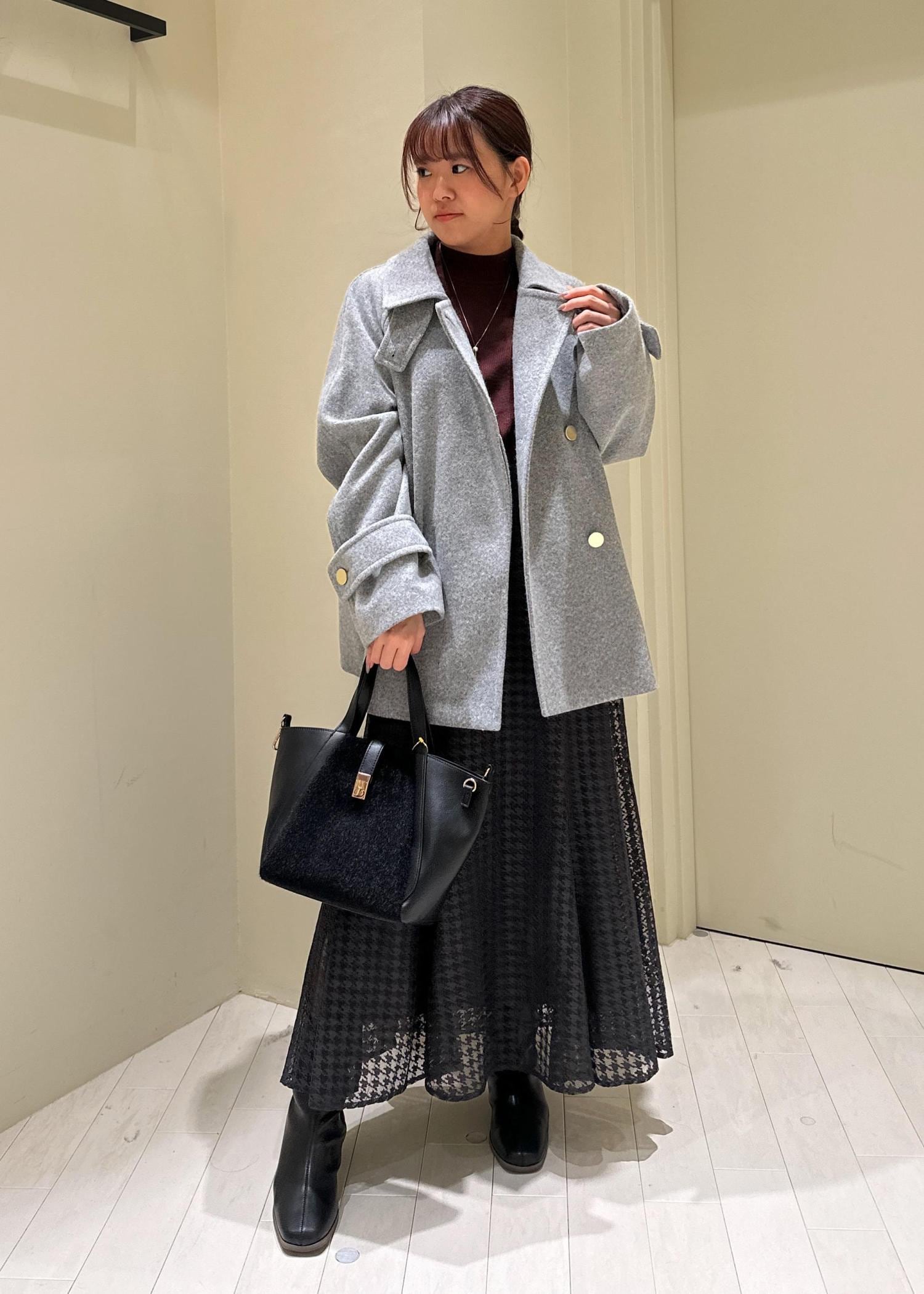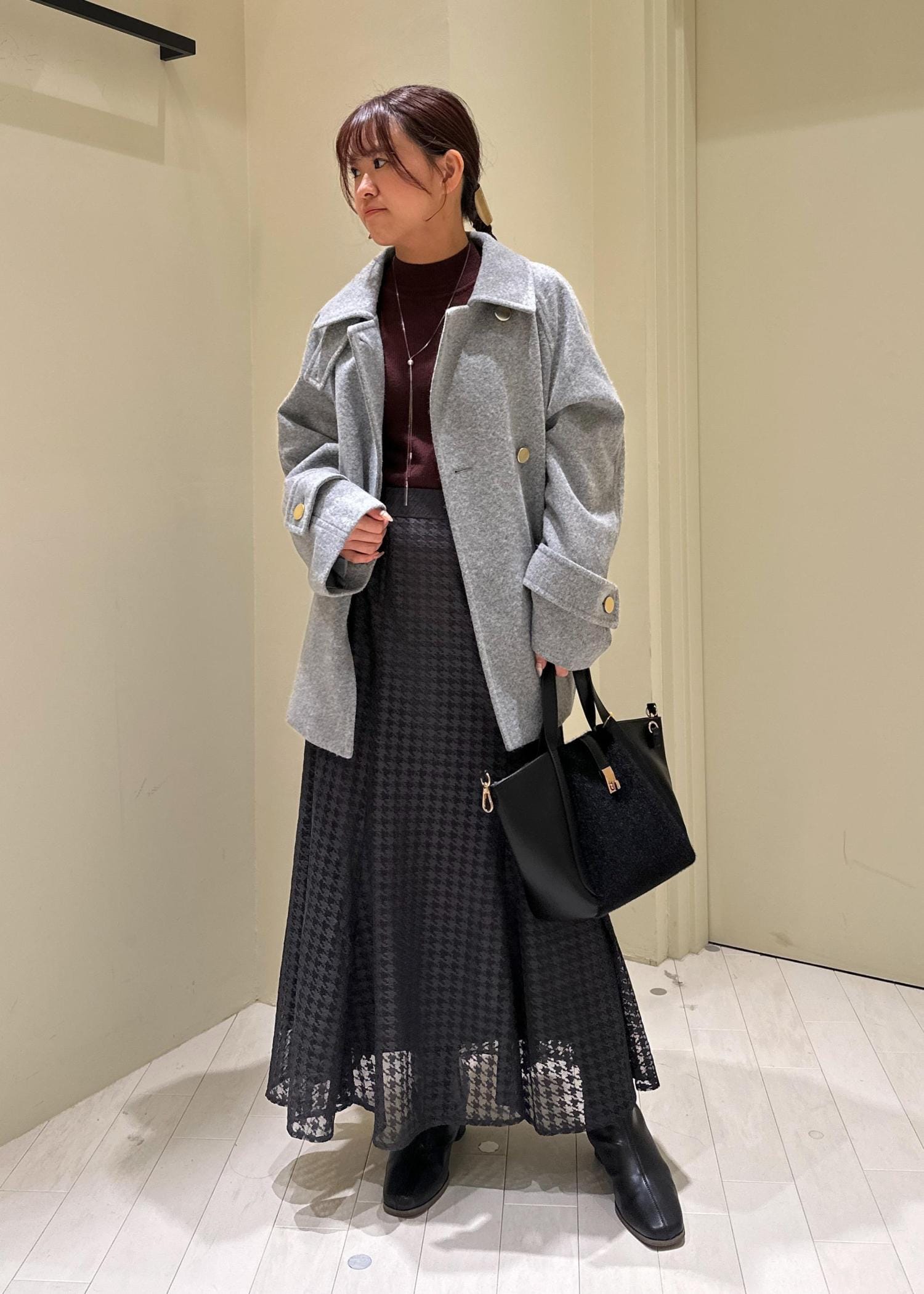 グレーのコートってカジュアルなコーデになりがちですがカラーやスカートの形など合わせ方によって大人レディなコーデにもなります◎