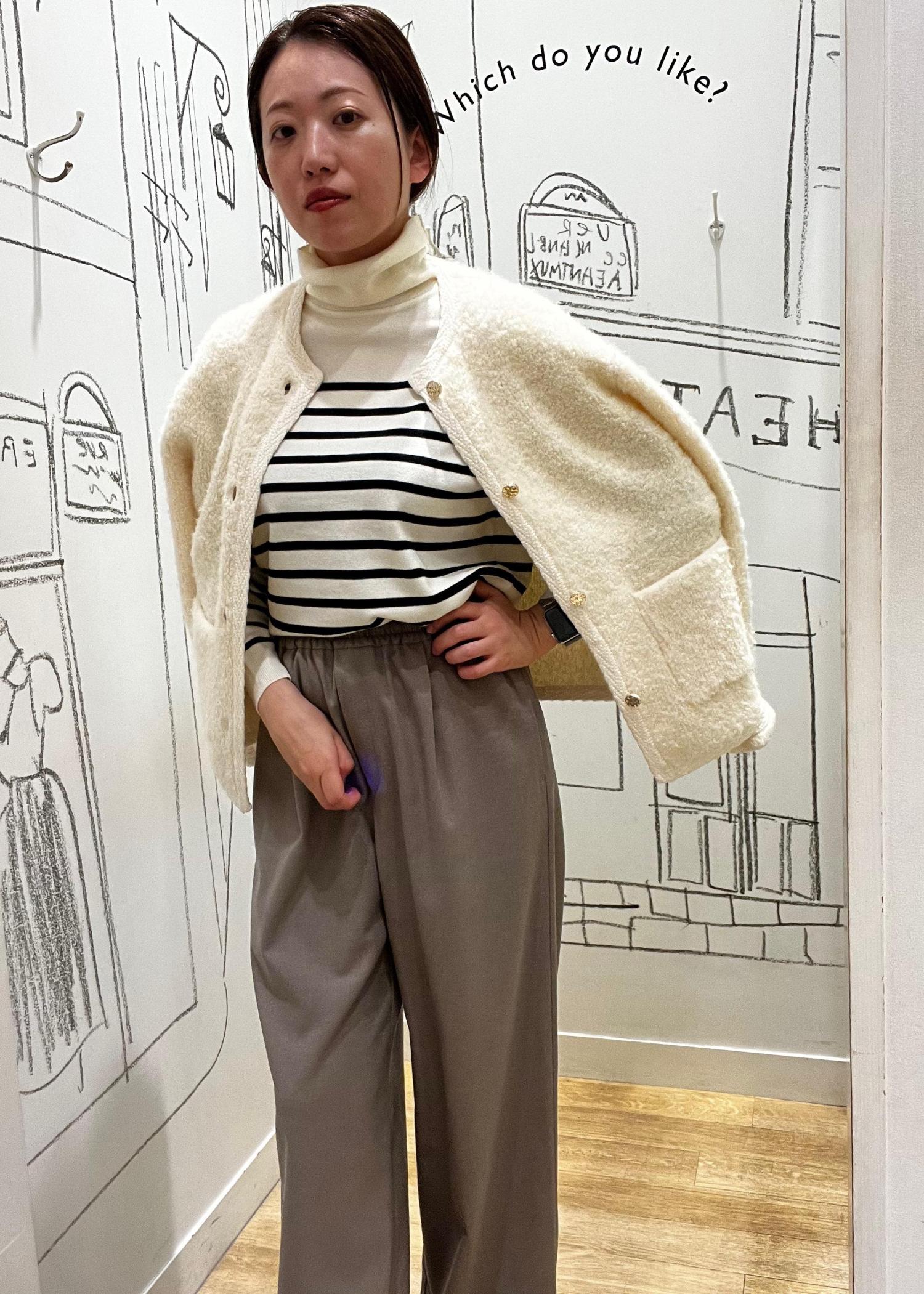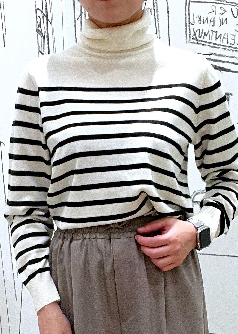 インナーにボーダーを合わせカジュアルなオフコーディネートにしました。