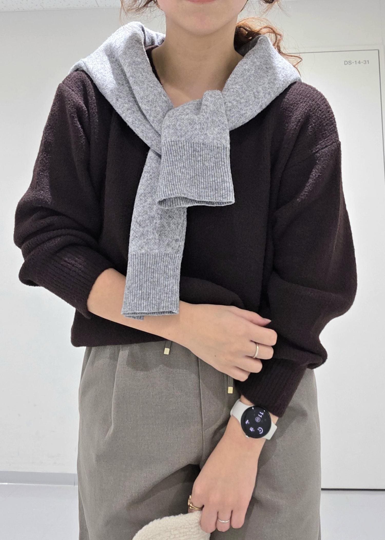 Vネックは首元がすっきり見えるので、着ぶくれせず体型カバーが叶えられます。 -