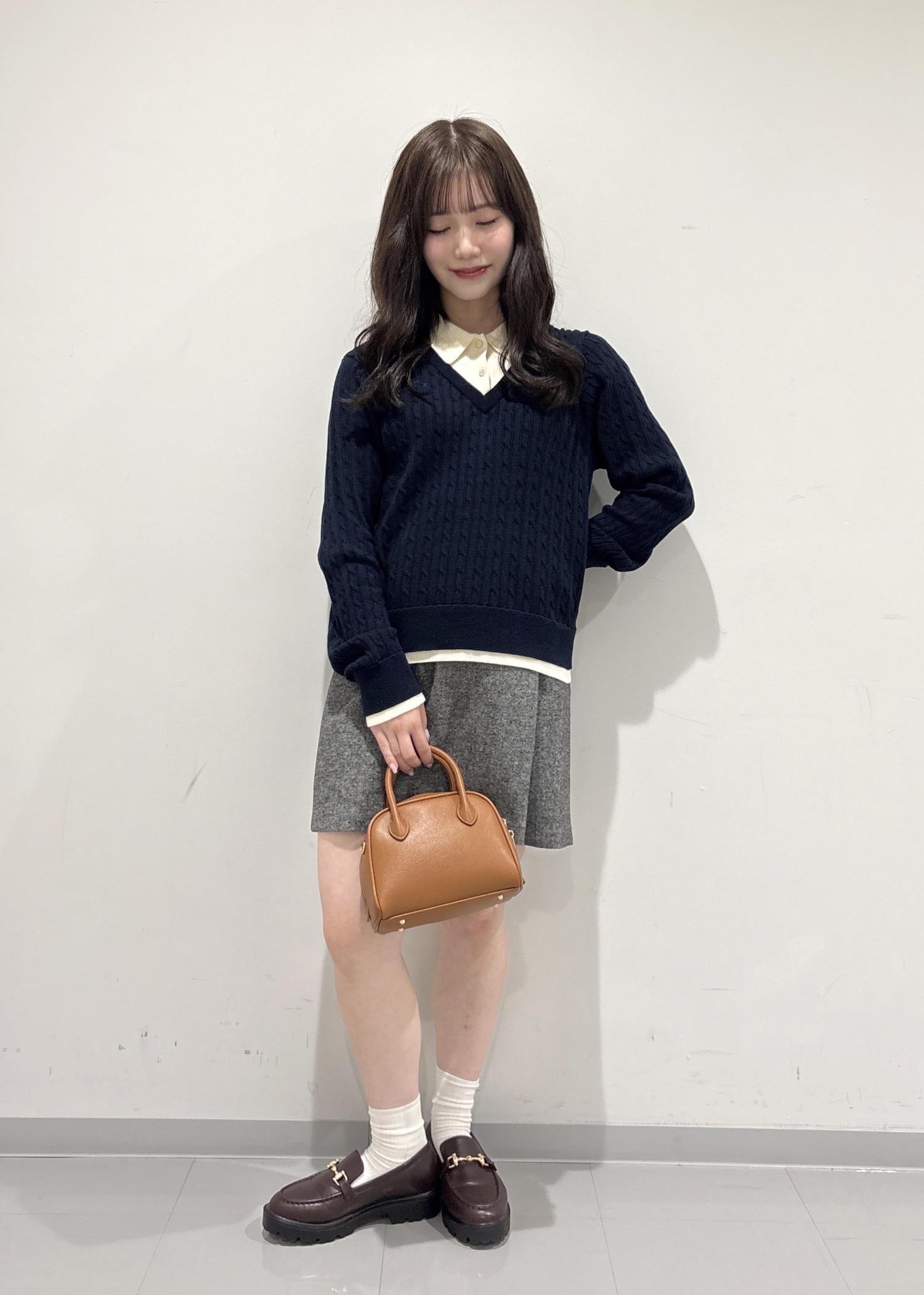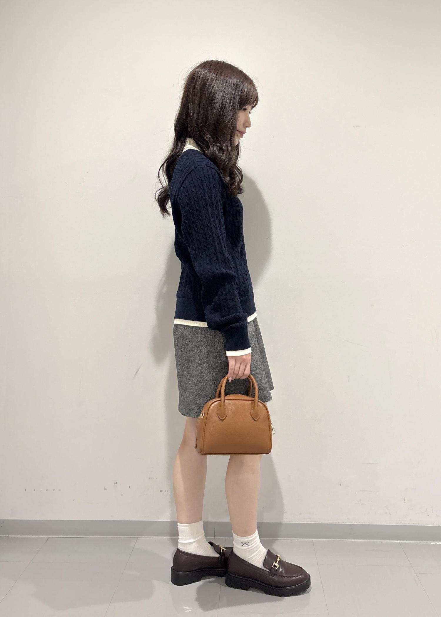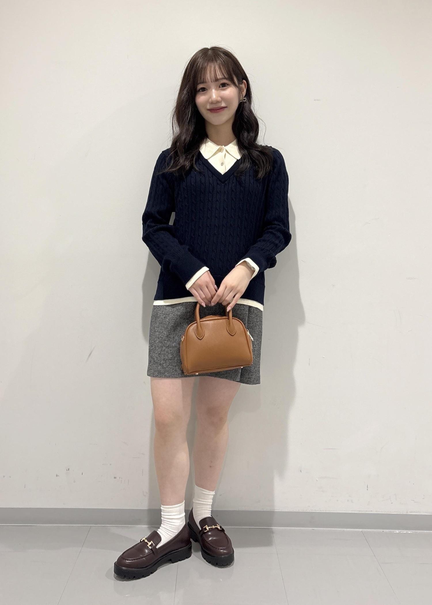 こちらのコーデのテーマは、韓国の学生をイメージしてみました!フェイクレイヤードで秋っぽさと学生感がより感じられます!膝上のグレーのミニスカートとローファーで脚を綺麗に見せてみました!ブラウンのミニバッグでこなれ感を出して、秋っぽい韓国風の学生をイメージしてみました!