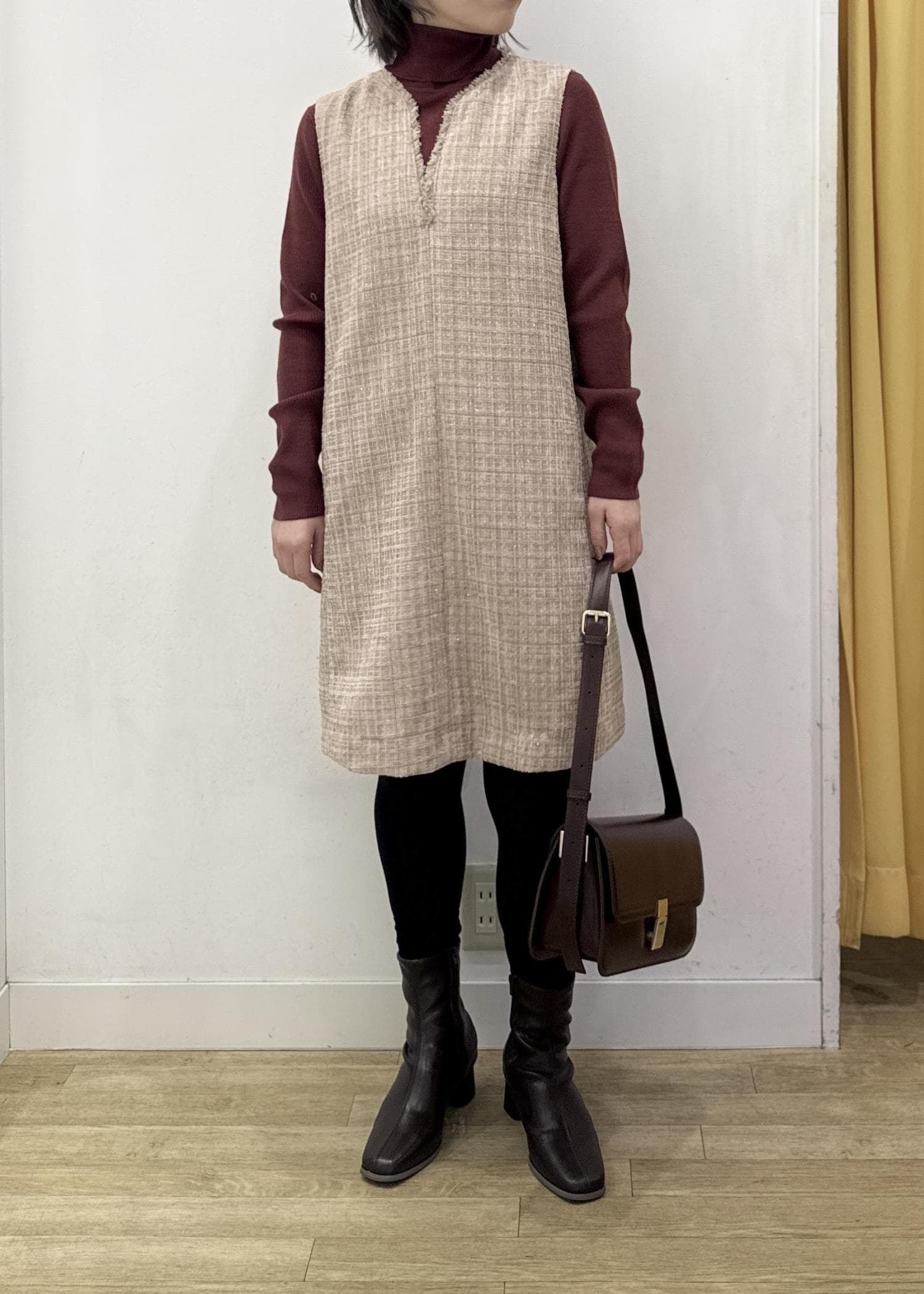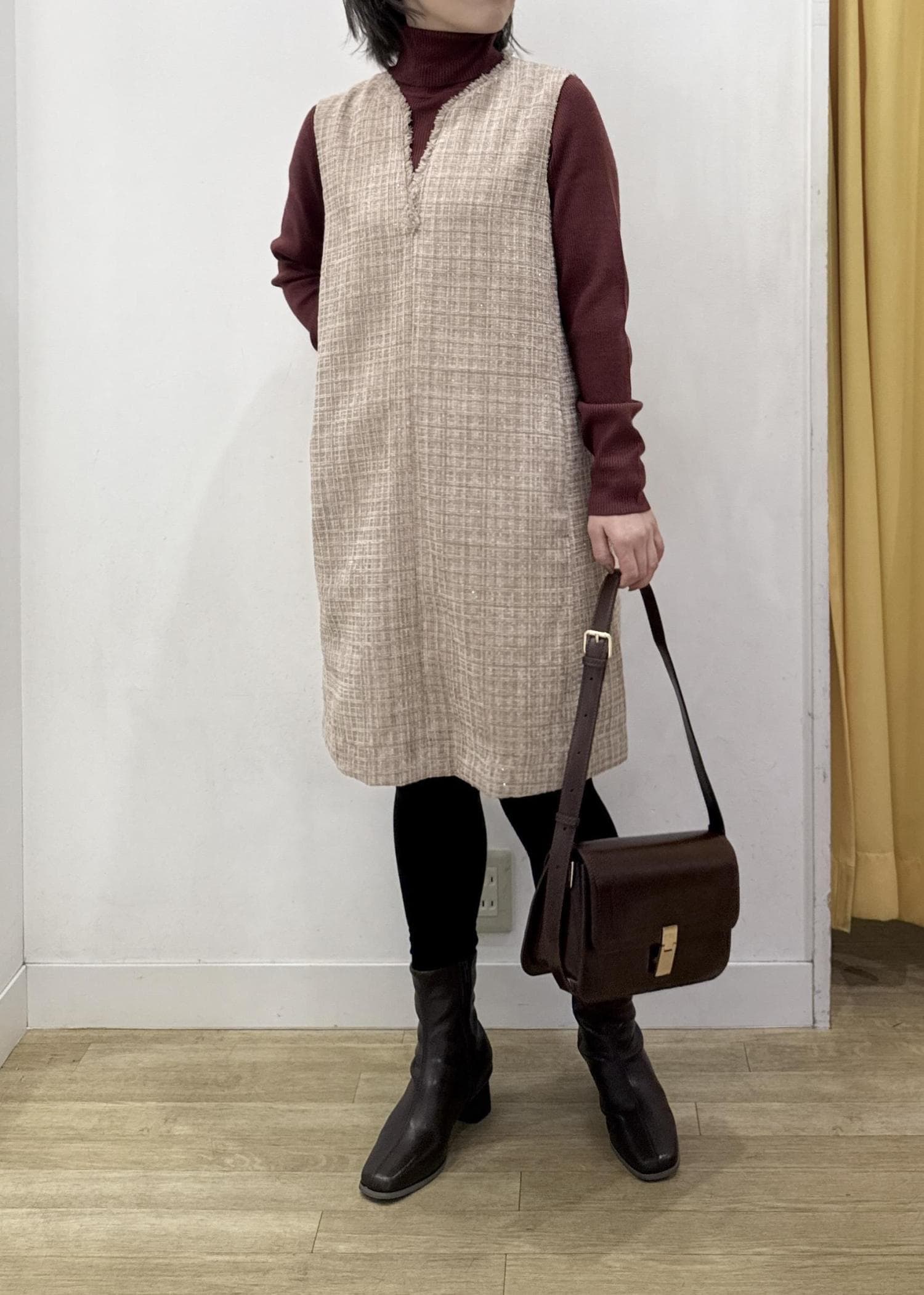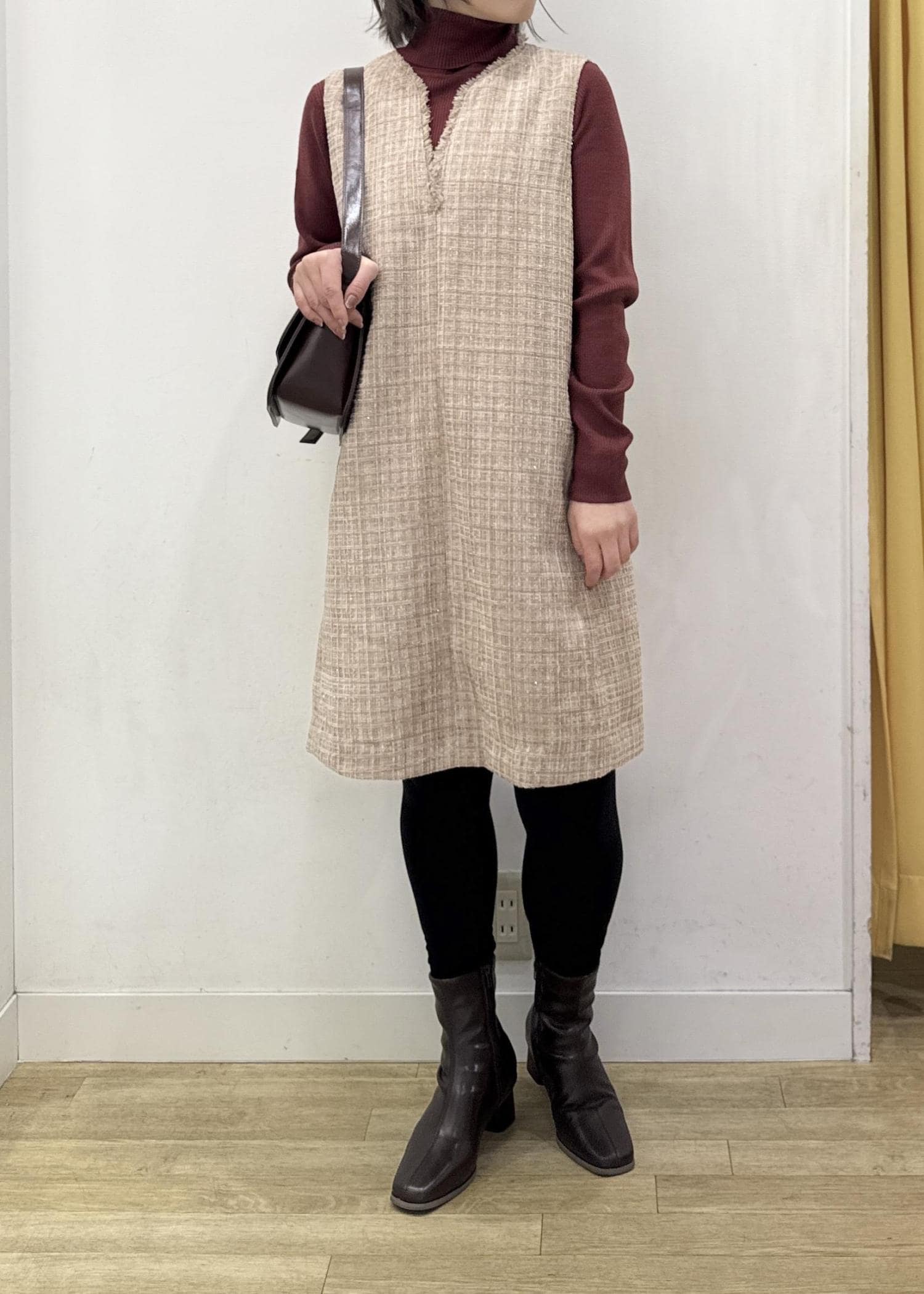 ROPÉ PICNICキーネックツイードジャンパースカート ワンピース/着丈が選べるベージュ系 / M¥8,998レビュー程よくゆとりがあるサイズ感で、身体のラインを気にせずに着られました。