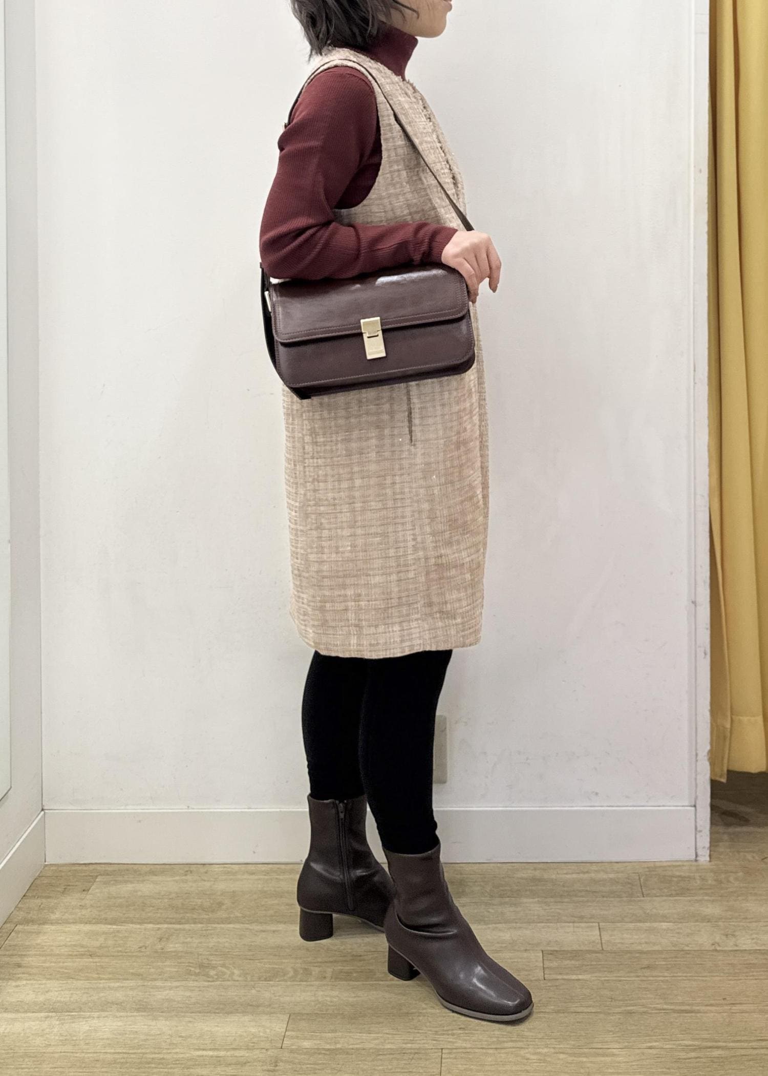 ROPÉ PICNIC PASSAGE【WEB限定カラー】me fit BAG バーチカルラインワイドショルダーバッグワイン系 / F¥4,197レビュースクエア型でマチもあるので長財布も入れられるサイズ感。