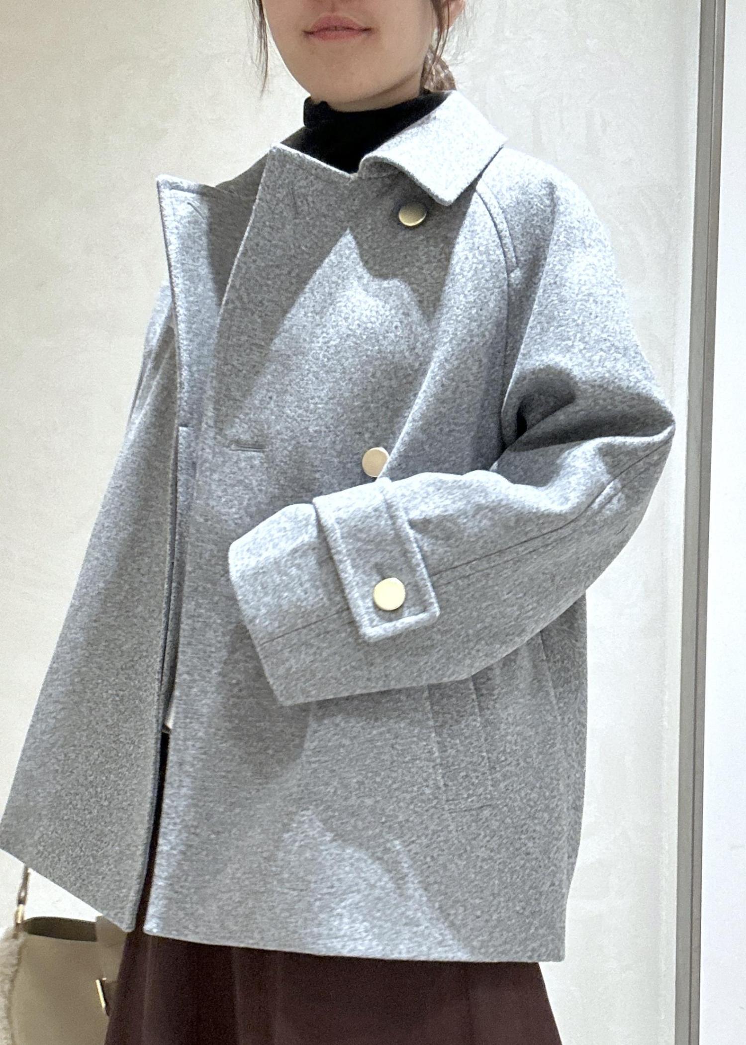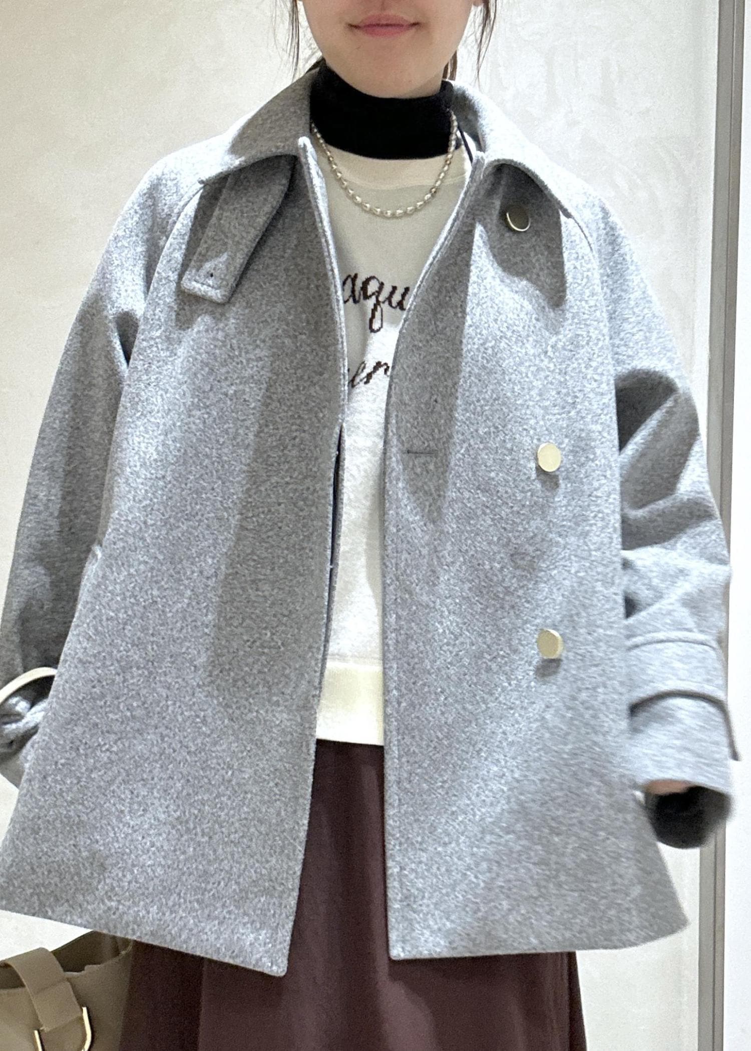 ROPÉ PICNICジャージーメルトンシリーズ 金ボタンミドル丈コート/リンクコーデライトグレー / F¥7,692レビューアームは切替がない為ゆとりがあり、