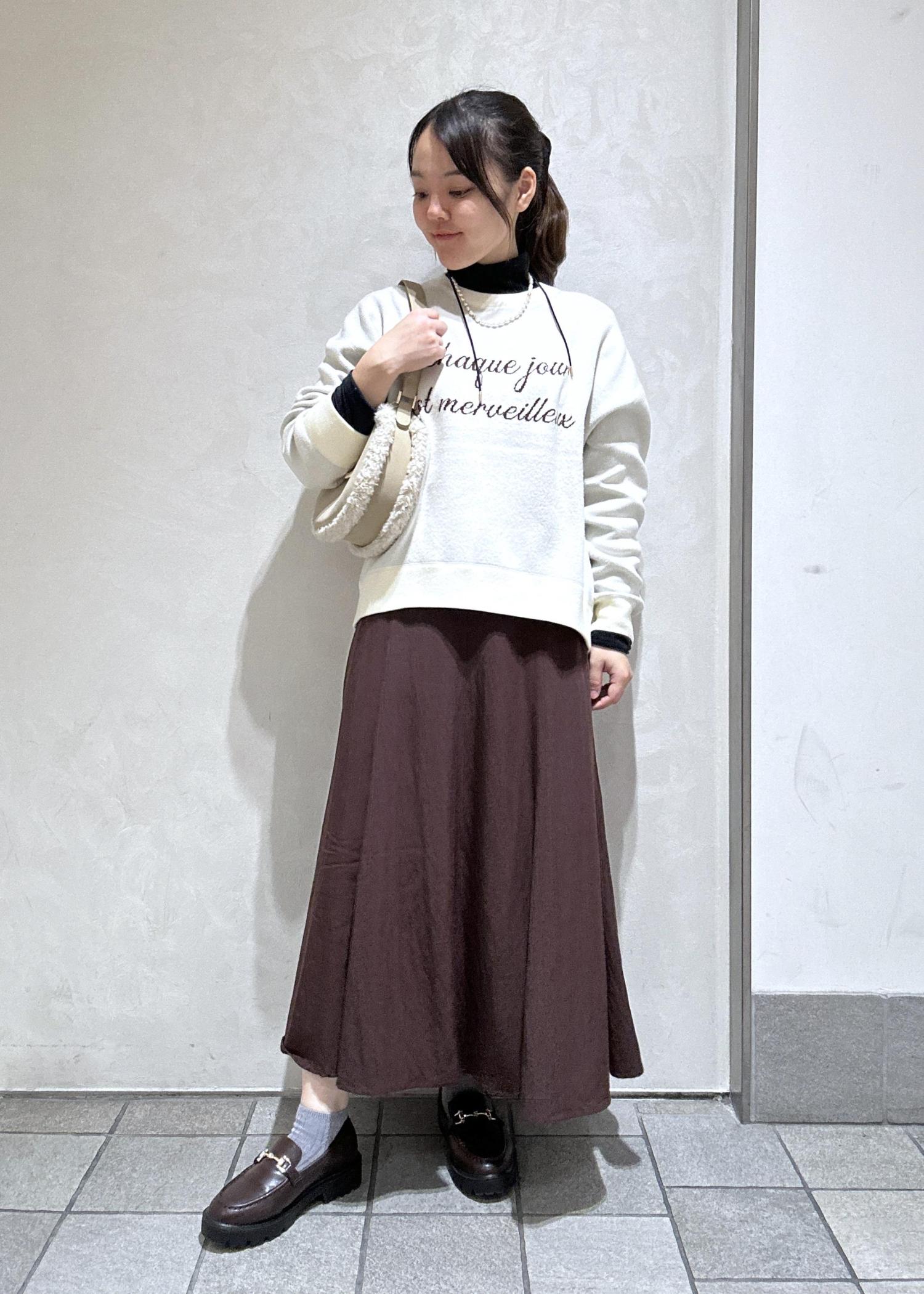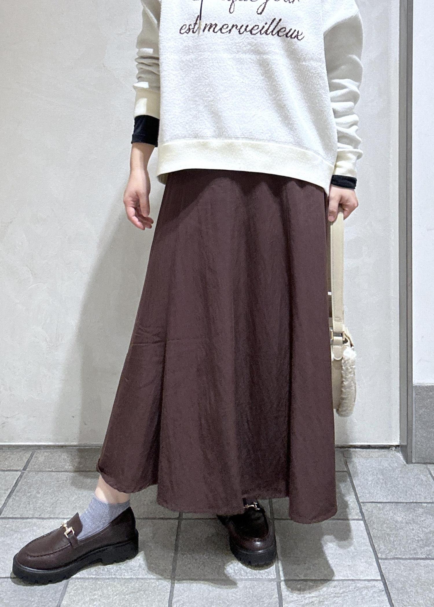 ヒップから下にかけて、程よくフレアなシルエットなので、ボリュームが出過ぎず大人も履きやすいシルエットです。 -
