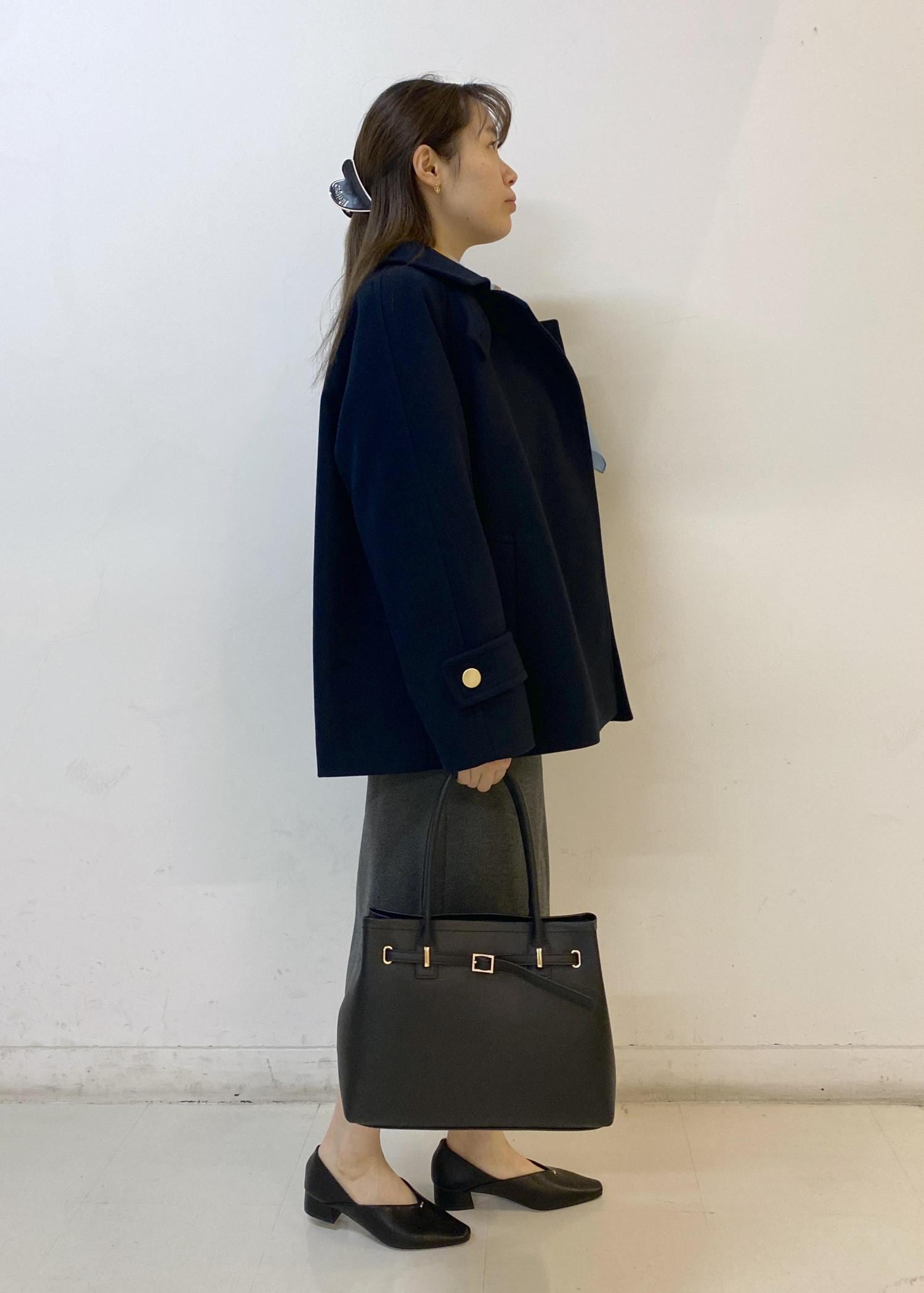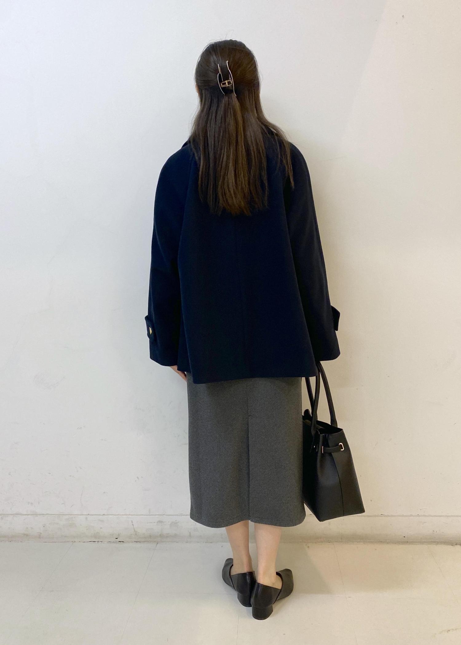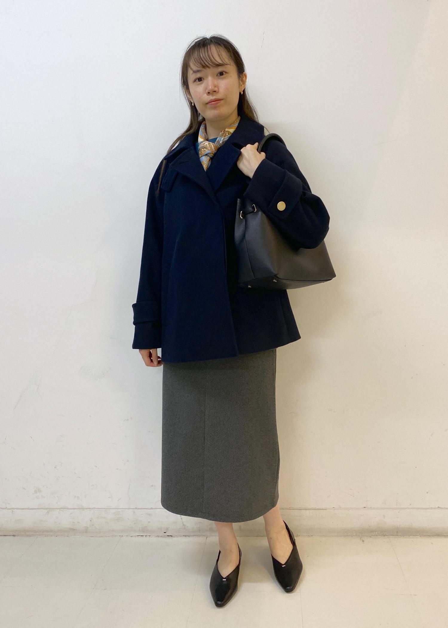 コートとスカートのボタンを、ゴールドのアイテムで揃えているところがさりげないワンポイントです!