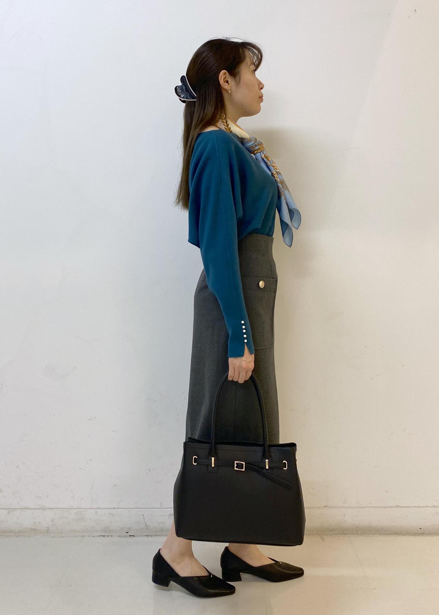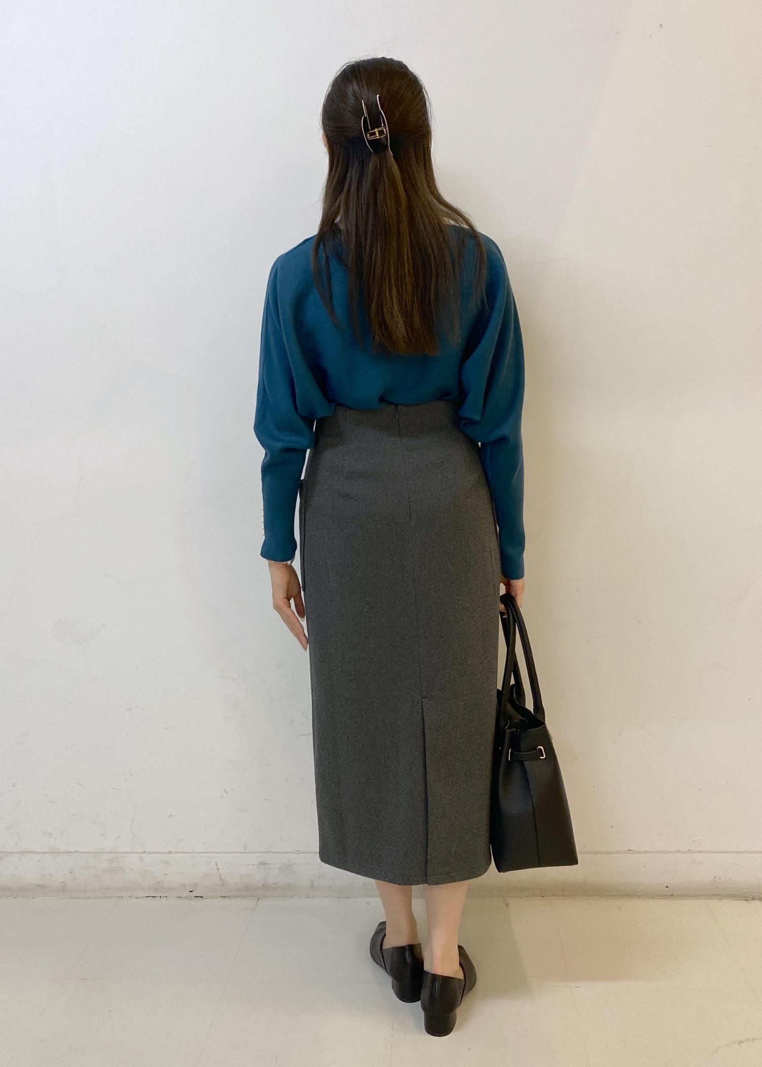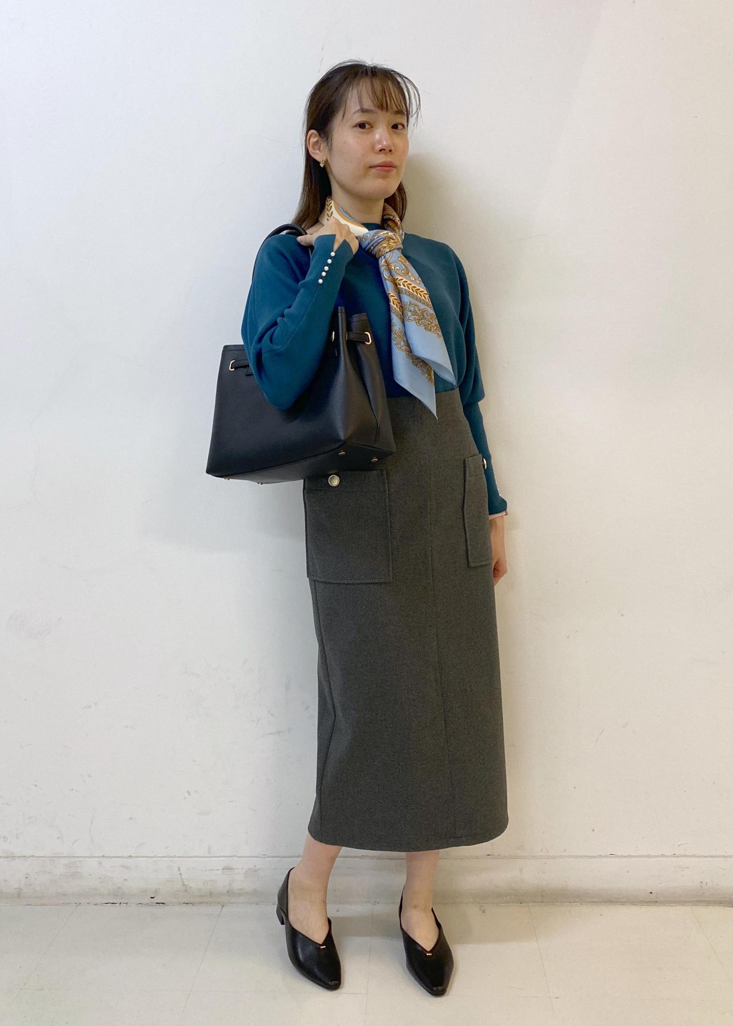 Iラインのスカートにトップスインでスタイルアップ効果も↑
