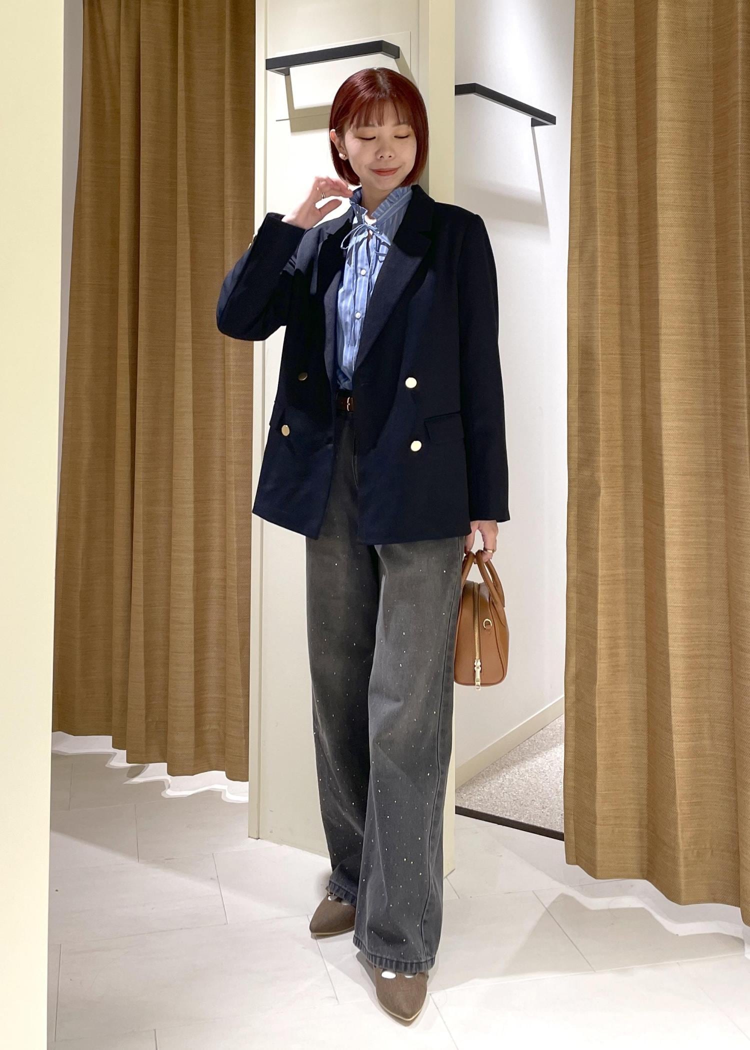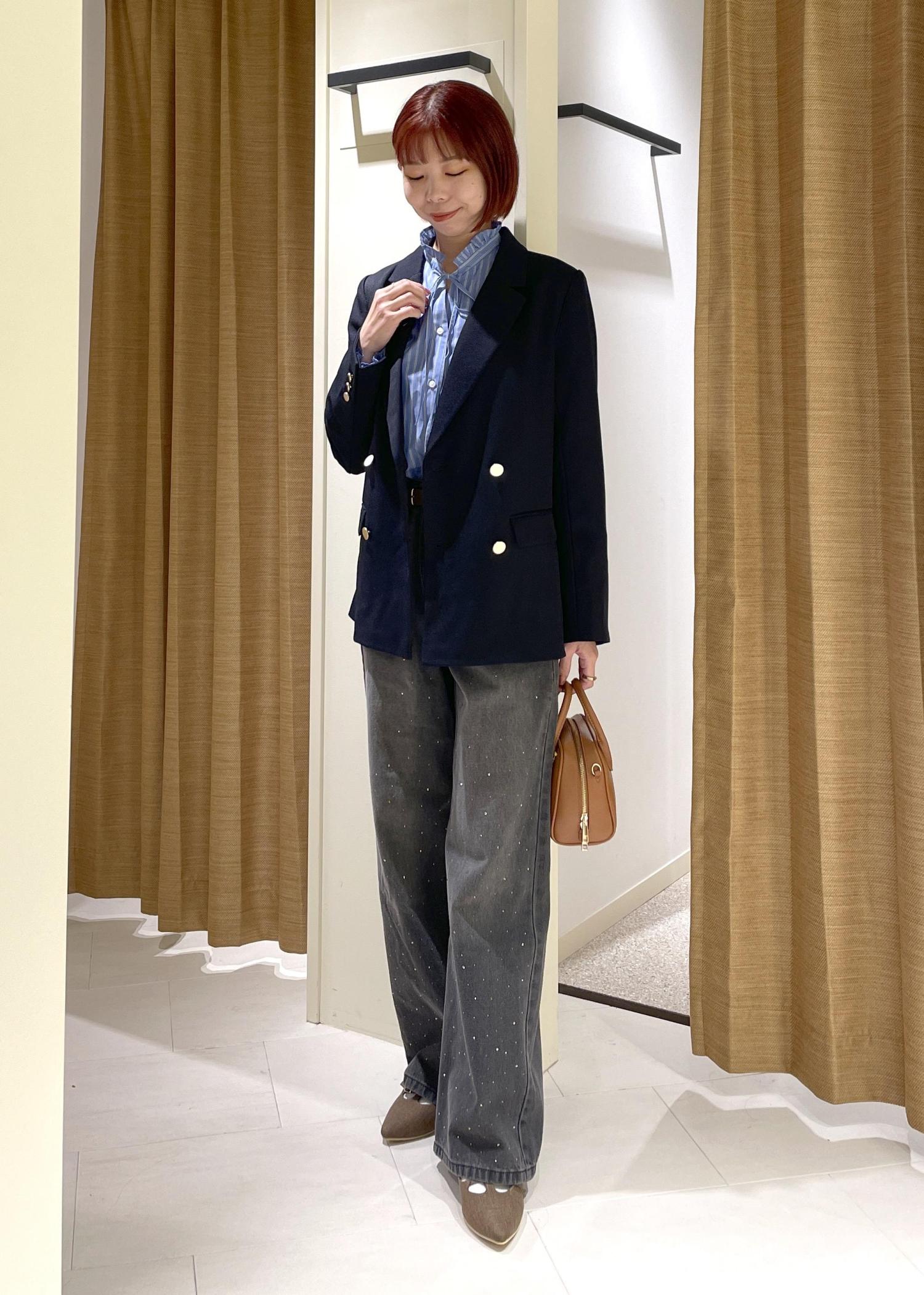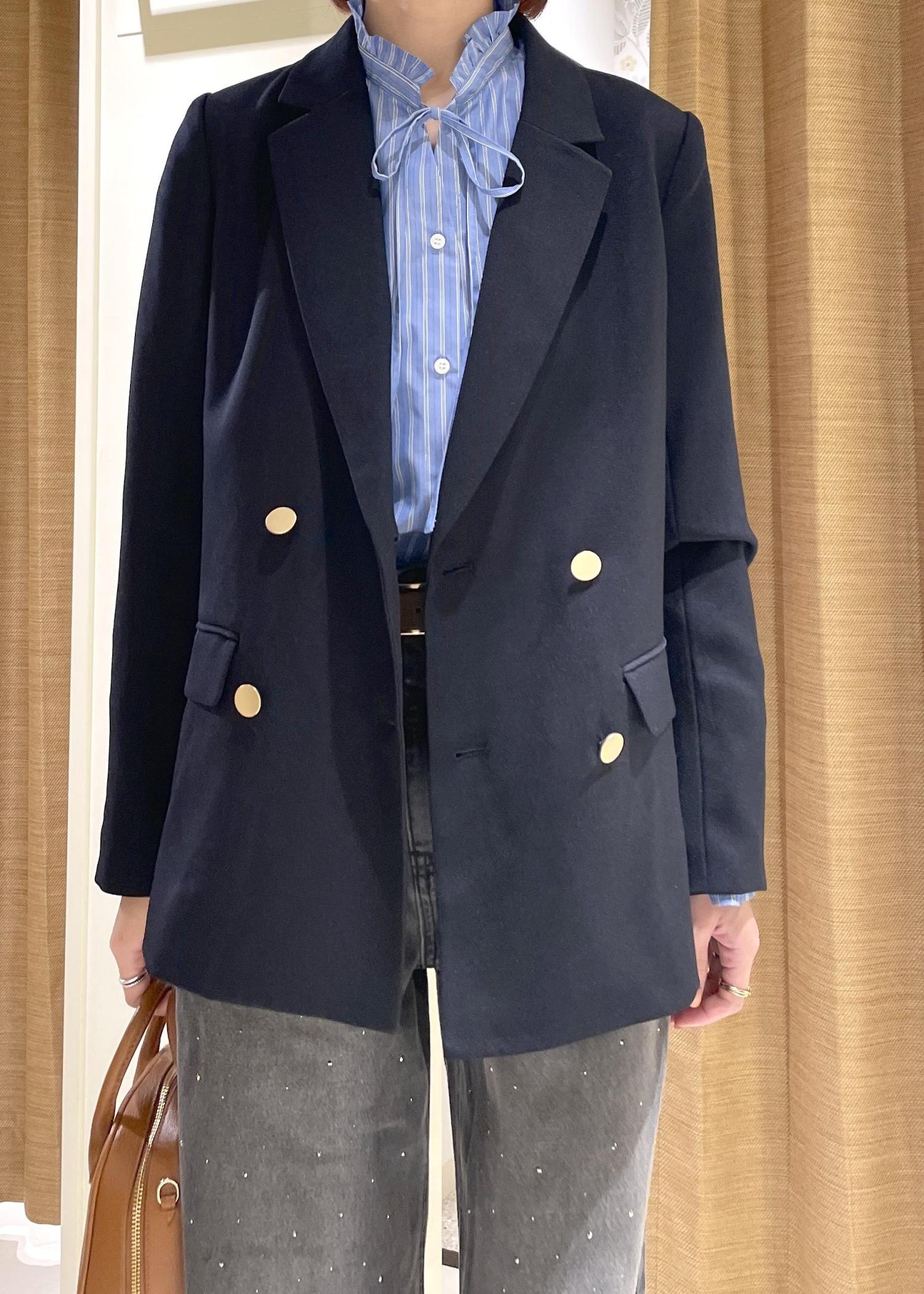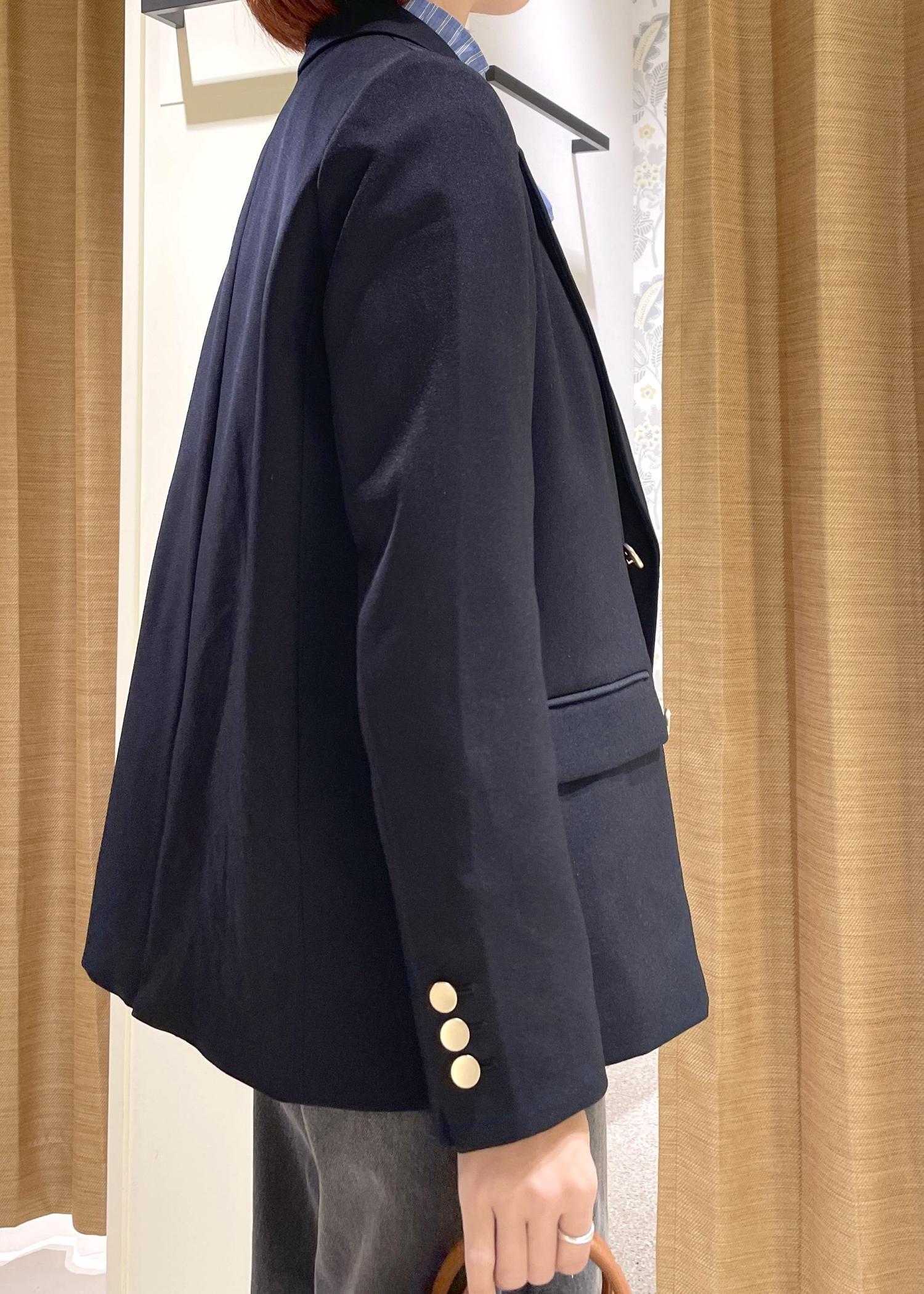 一部店舗・WEB限定の金ボタンジャケットミドル丈は、女性らしさを残しつつも、こなれ感が出る着丈で、ショップでも大人気のアイテムです。
