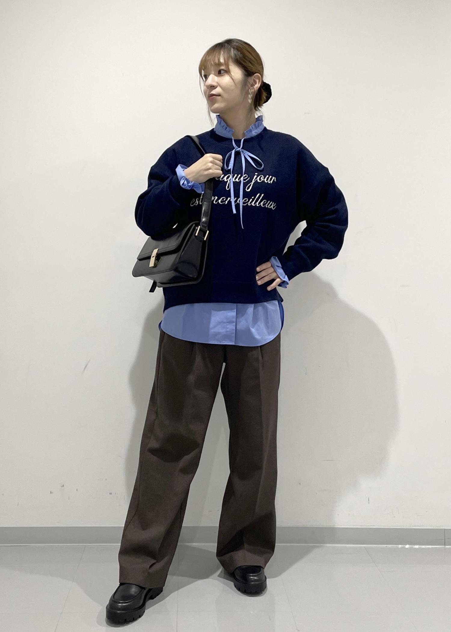 ボトムは温かみのある素材感で、秋冬にぴったり!タックも入ってるのでシルエットは綺麗にみせてくれます!
