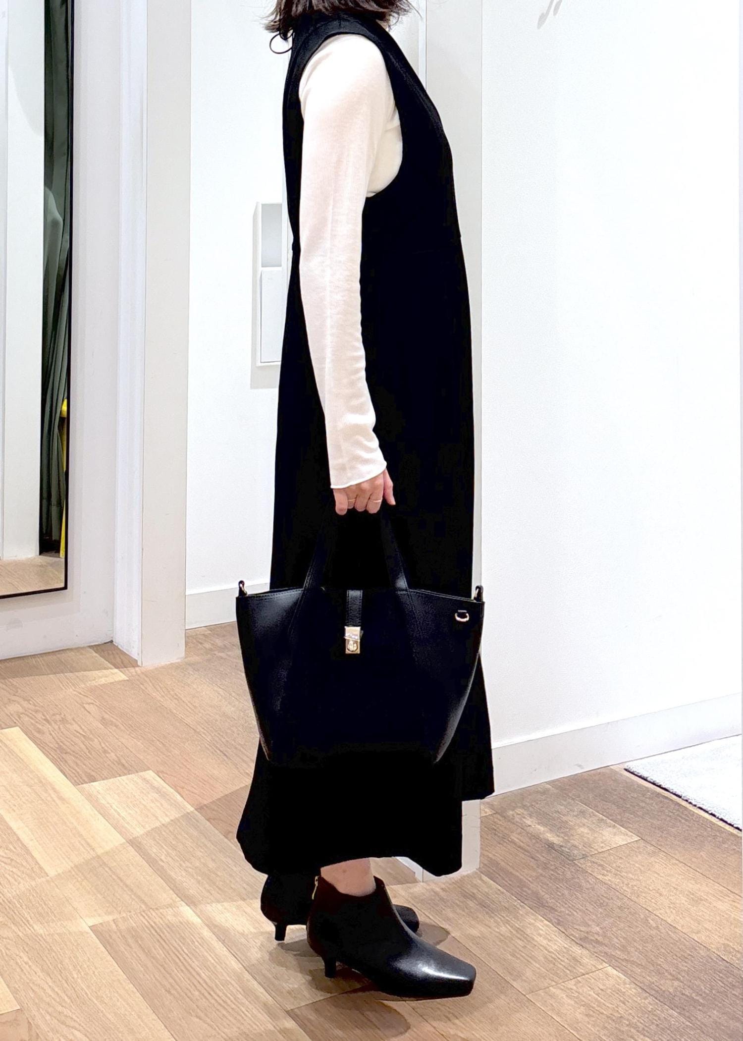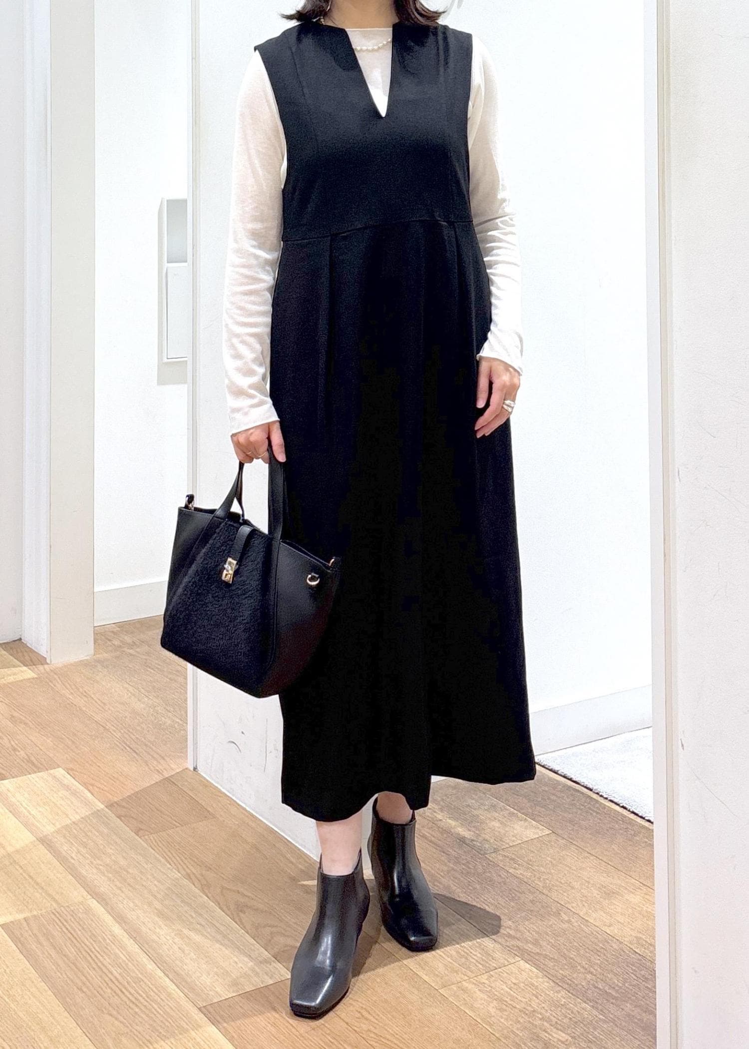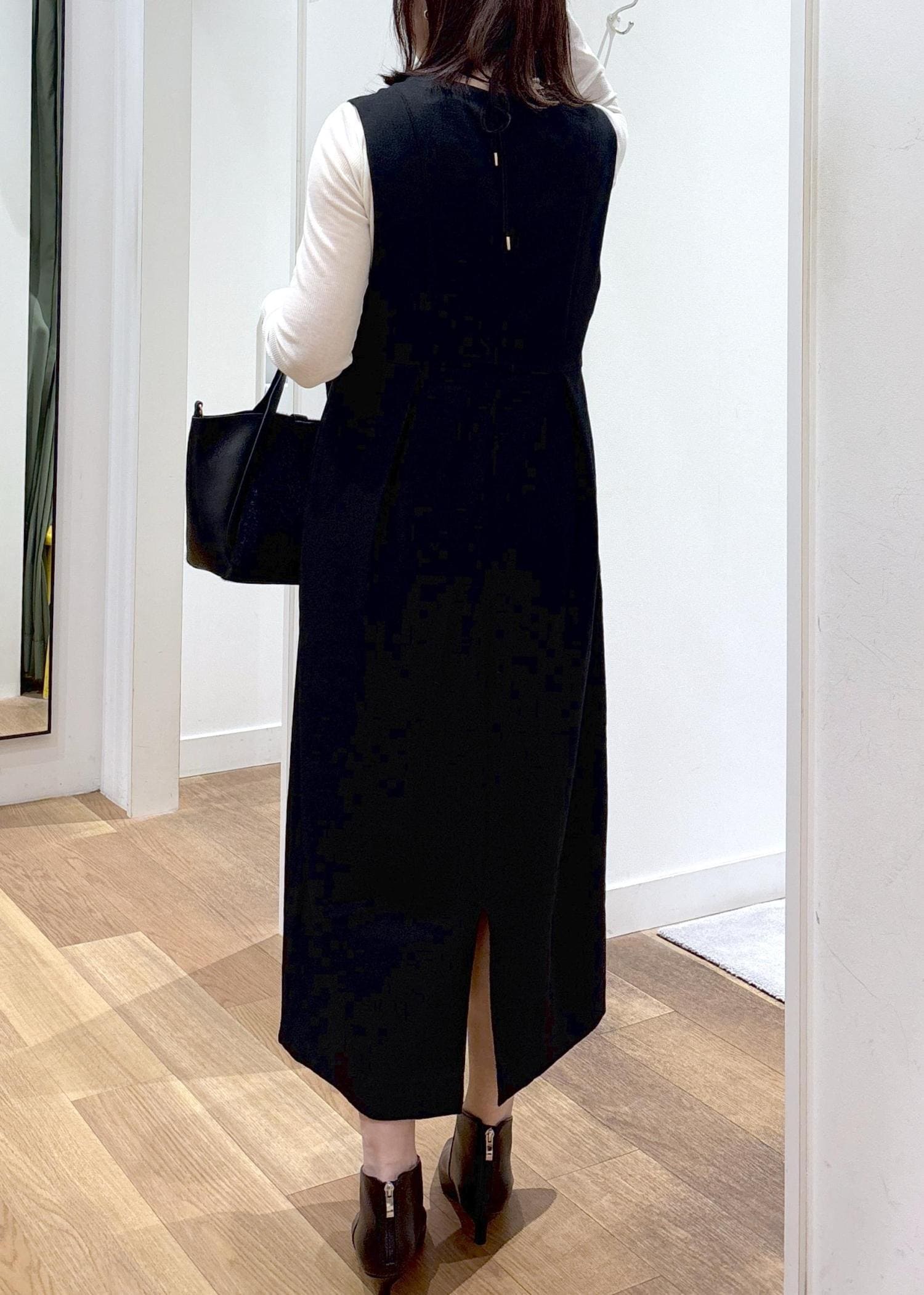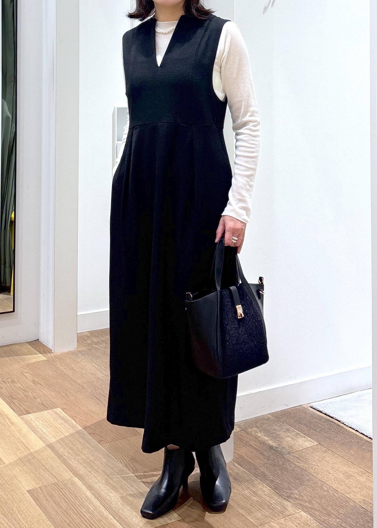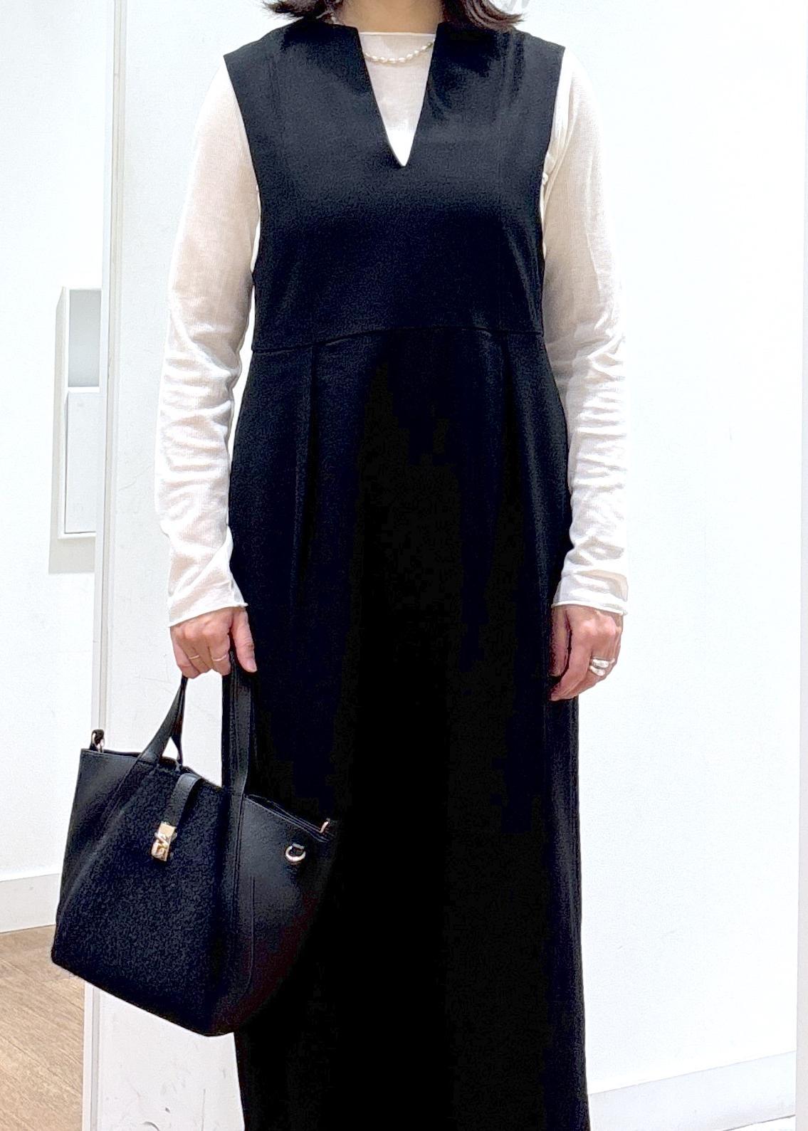 ROPÉ PICNICキーネックジャンパースカートブラック / M¥6,996レビュー腰回りのタックや、キーネックカラーのデザインなど体型をカバーしながらすっきり見せてくれるデザインのワンピースです。インナー次第で色々なテイストで着用していただけます。