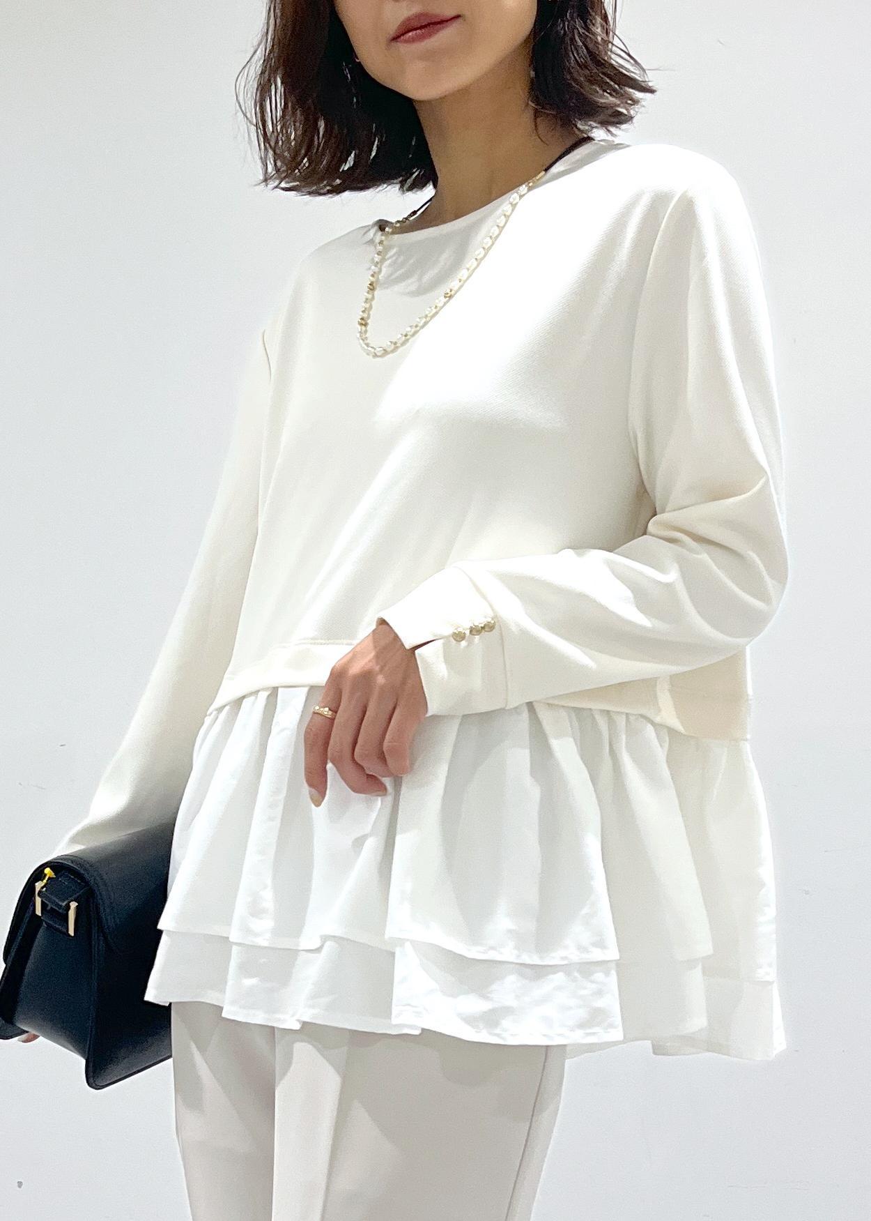 重ね着風なデザインで、テクニックなしで簡単にレイヤードスタイルを楽しめます。