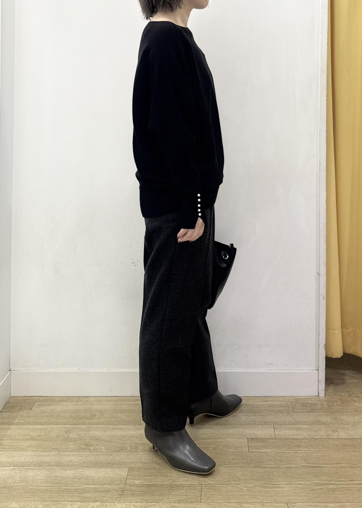 スッキリとしたキレイなシルエットですが、脚のラインを拾わずに着られました。 -