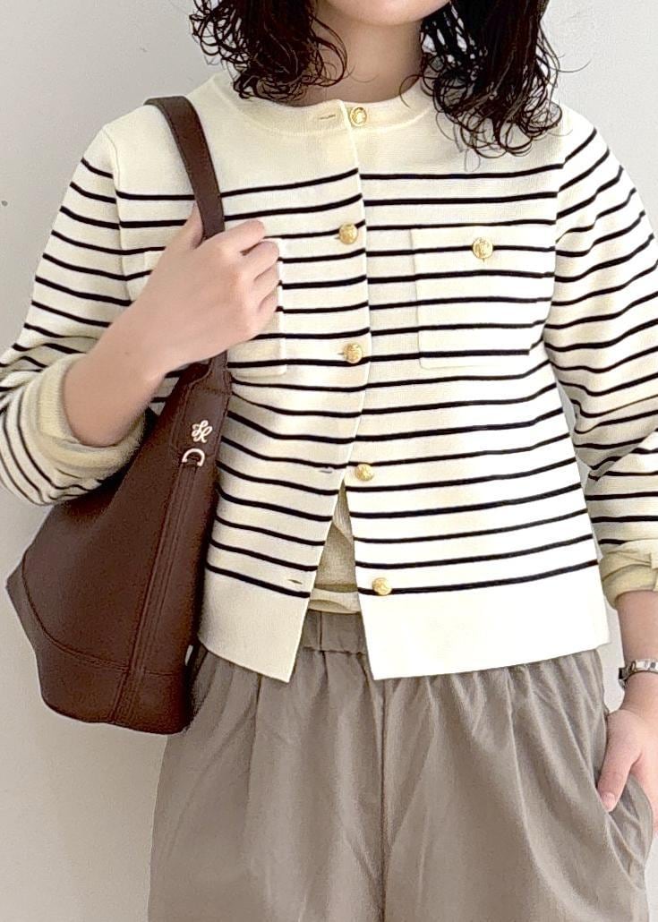ROPÉ PICNIC【洗濯機OK】ミラノリブニットカーディガンキナリ系 / M¥3,842レビュー・163cmでLサイズ骨盤丈