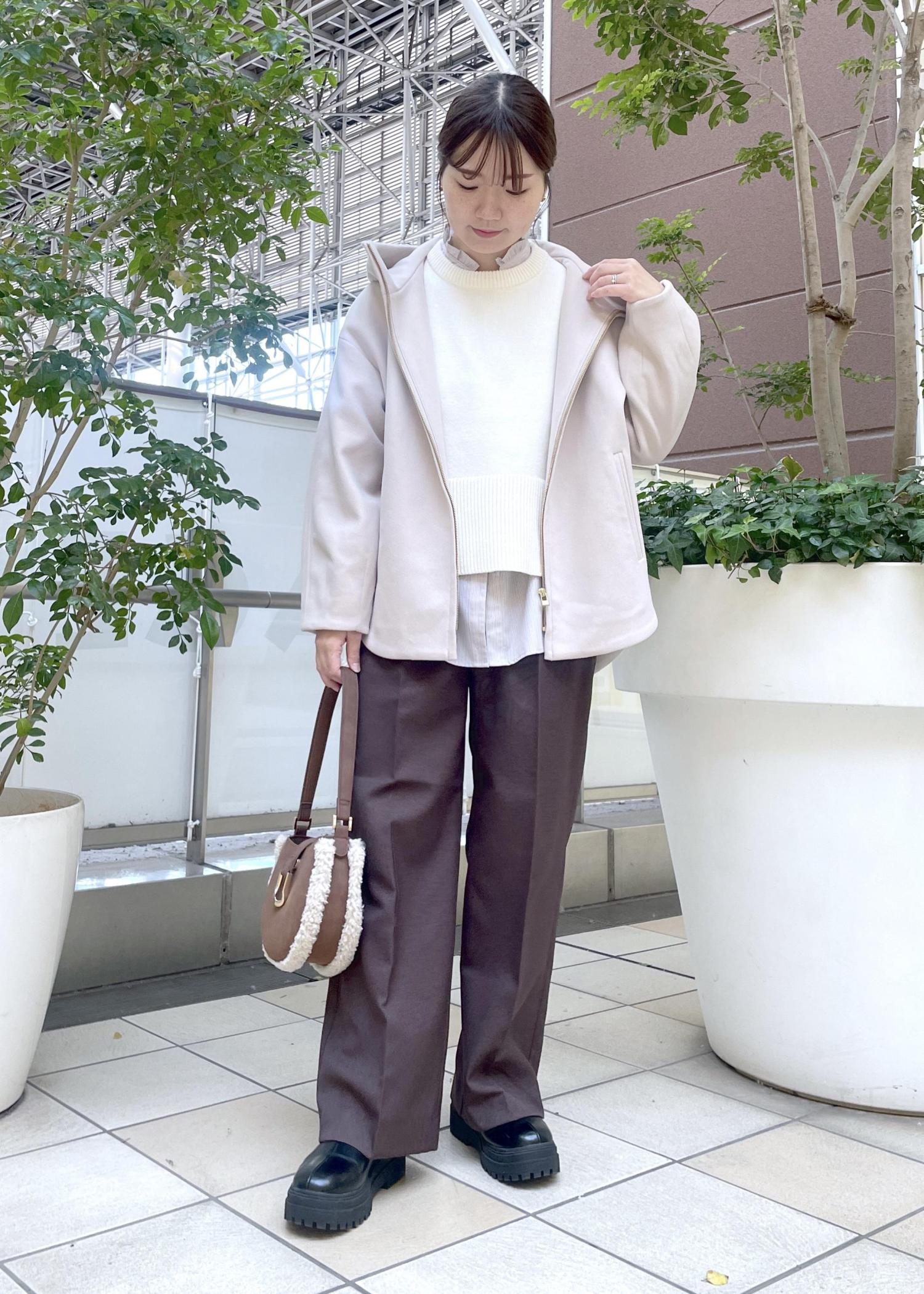 全体的にゆとりのあるサイズ感になっているので、インナーに厚手のニットも合わせやすいです。