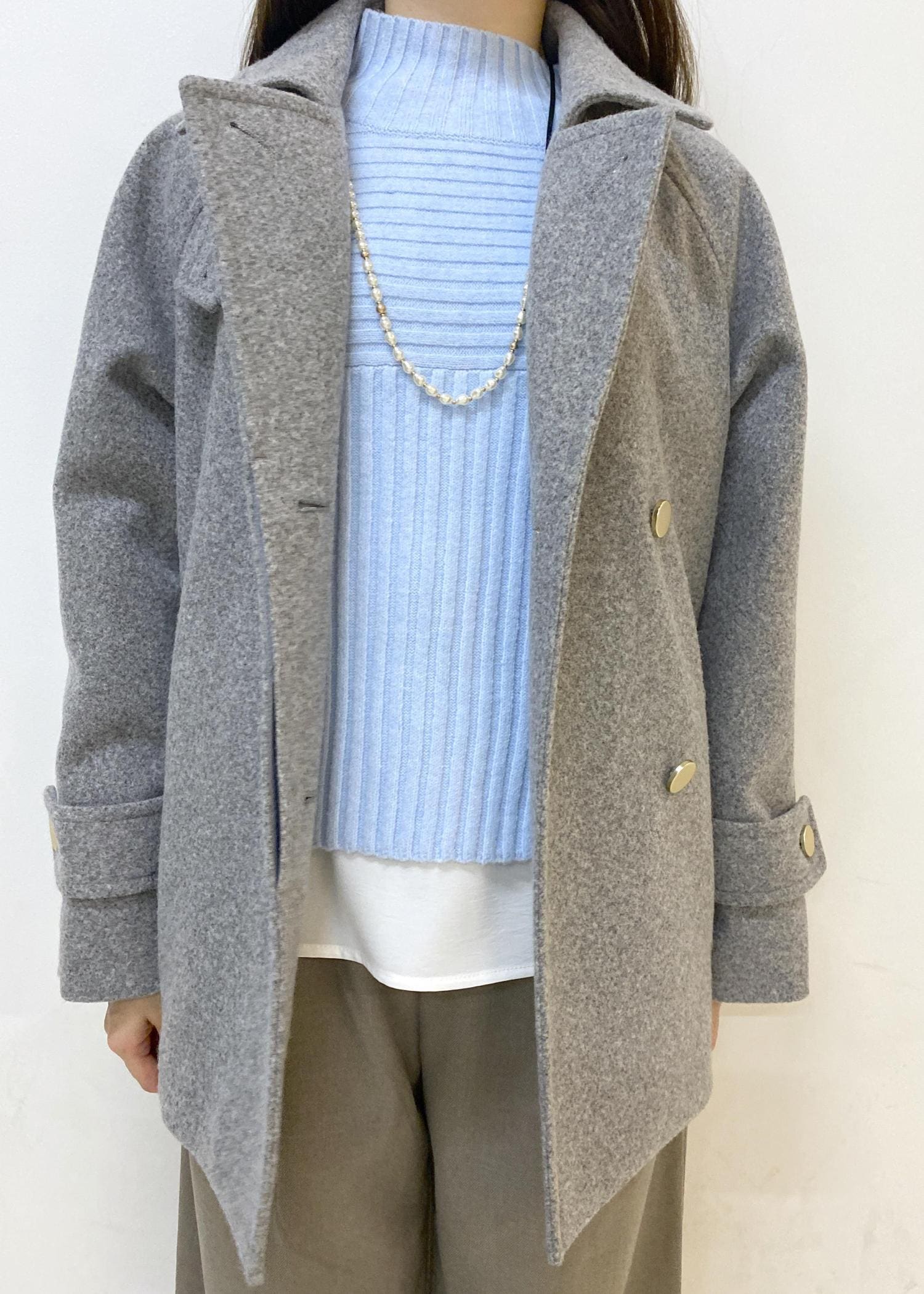 ROPÉ PICNICジャージーメルトンシリーズ 金ボタンミドル丈コート/リンクコーデライトグレー / F¥10,989レビューオンオフ兼用でお召しいただける“きちんと感”のあるアイテム。