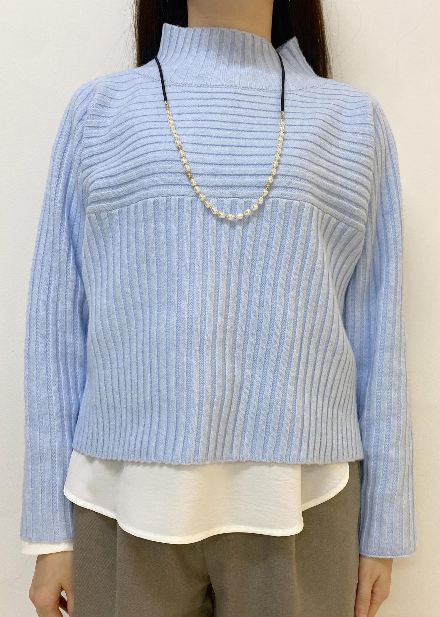 ROPÉ PICNICもちもちリブ切り替えニットプルオーバー/イージーケア・リンクコーデサックス / M¥4,499レビュー店頭でも毎年大人気のシリーズ!